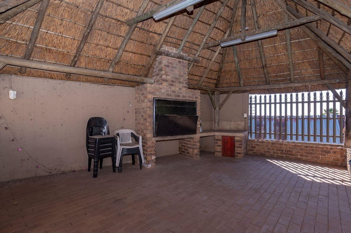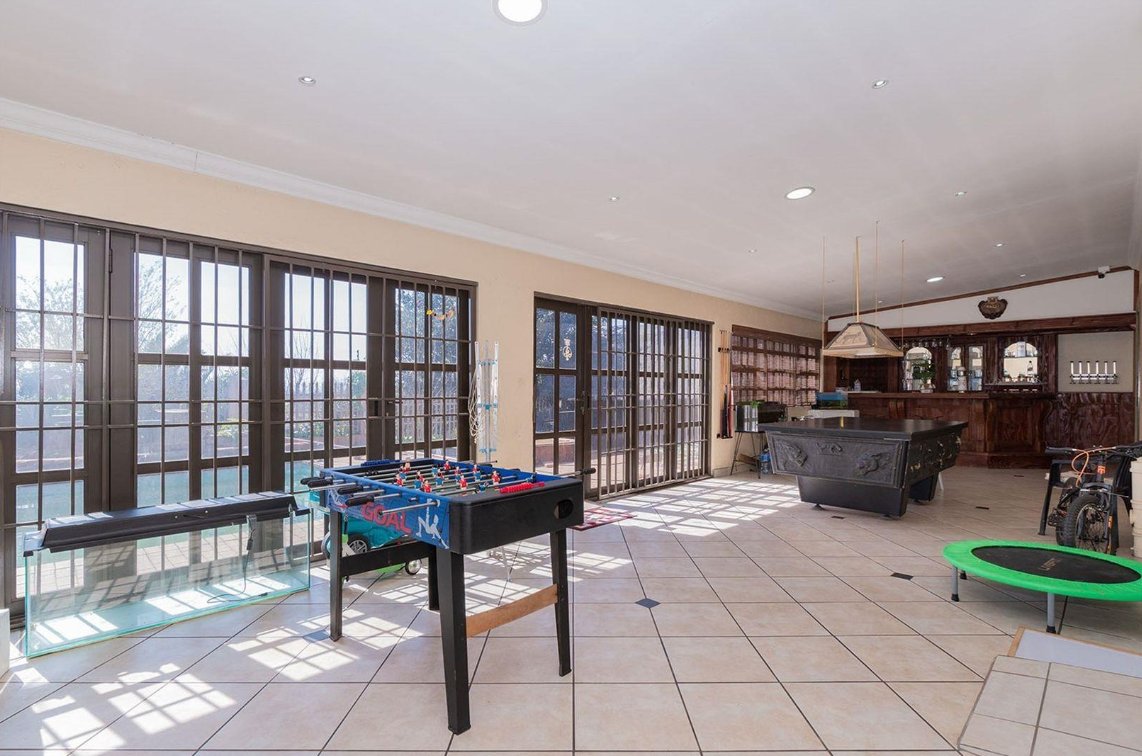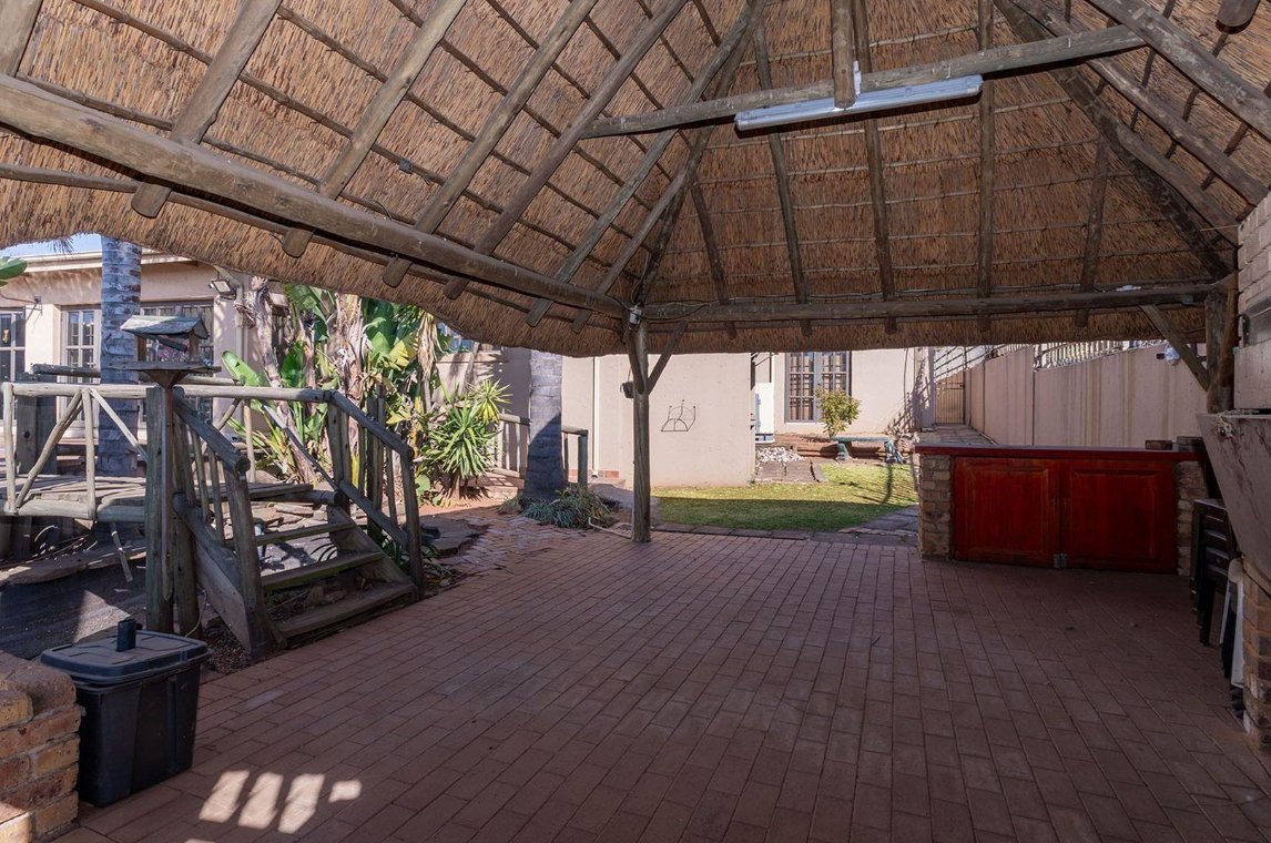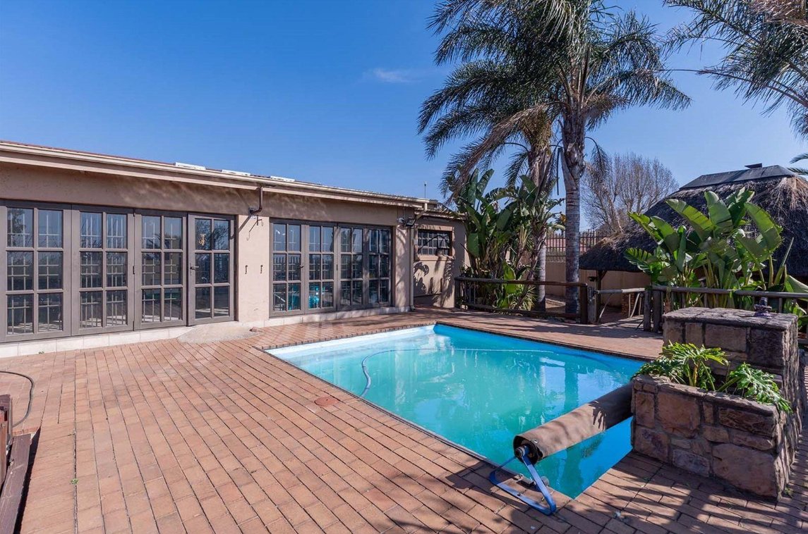 Outdoors consists of a heated swimming pool, a Jacuzzi, a thatched Lapa featuring a built-in braai and pizza oven. A tranquil fish pond adds a touch of serenity.