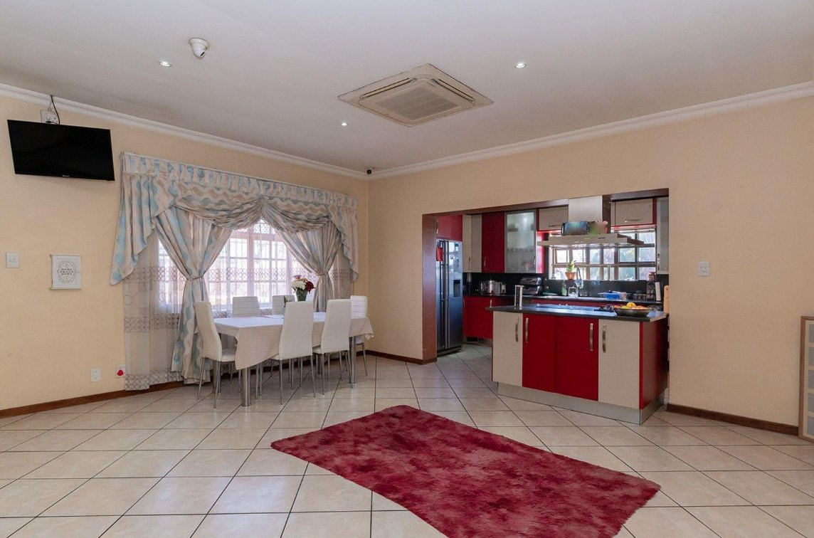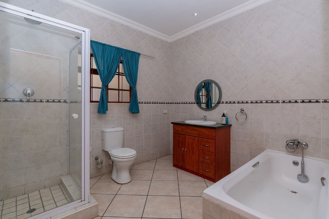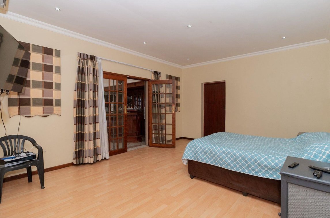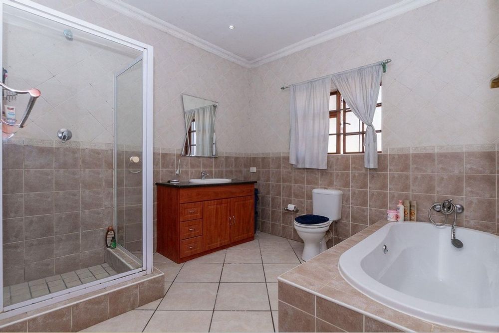 Outdoors consists of a heated swimming pool, a Jacuzzi, a thatched Lapa featuring a built-in braai and pizza oven. A tranquil fish pond adds a touch of serenity.