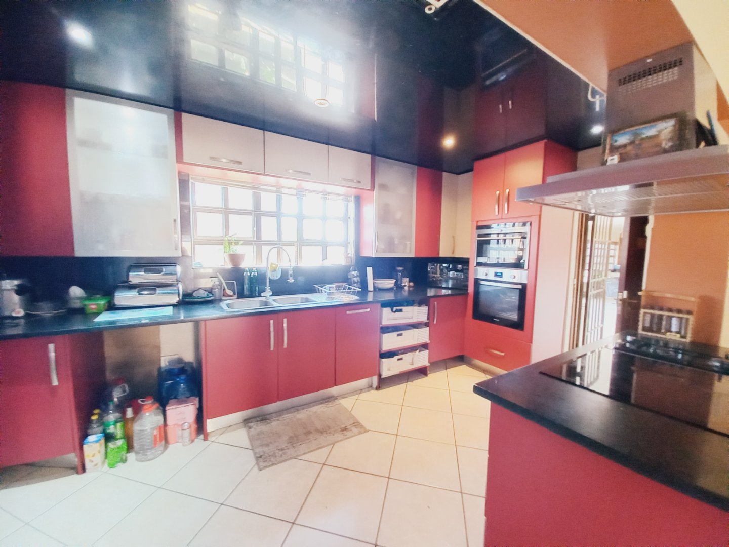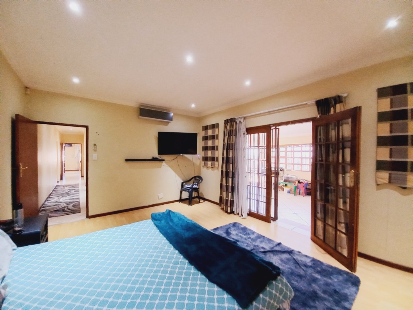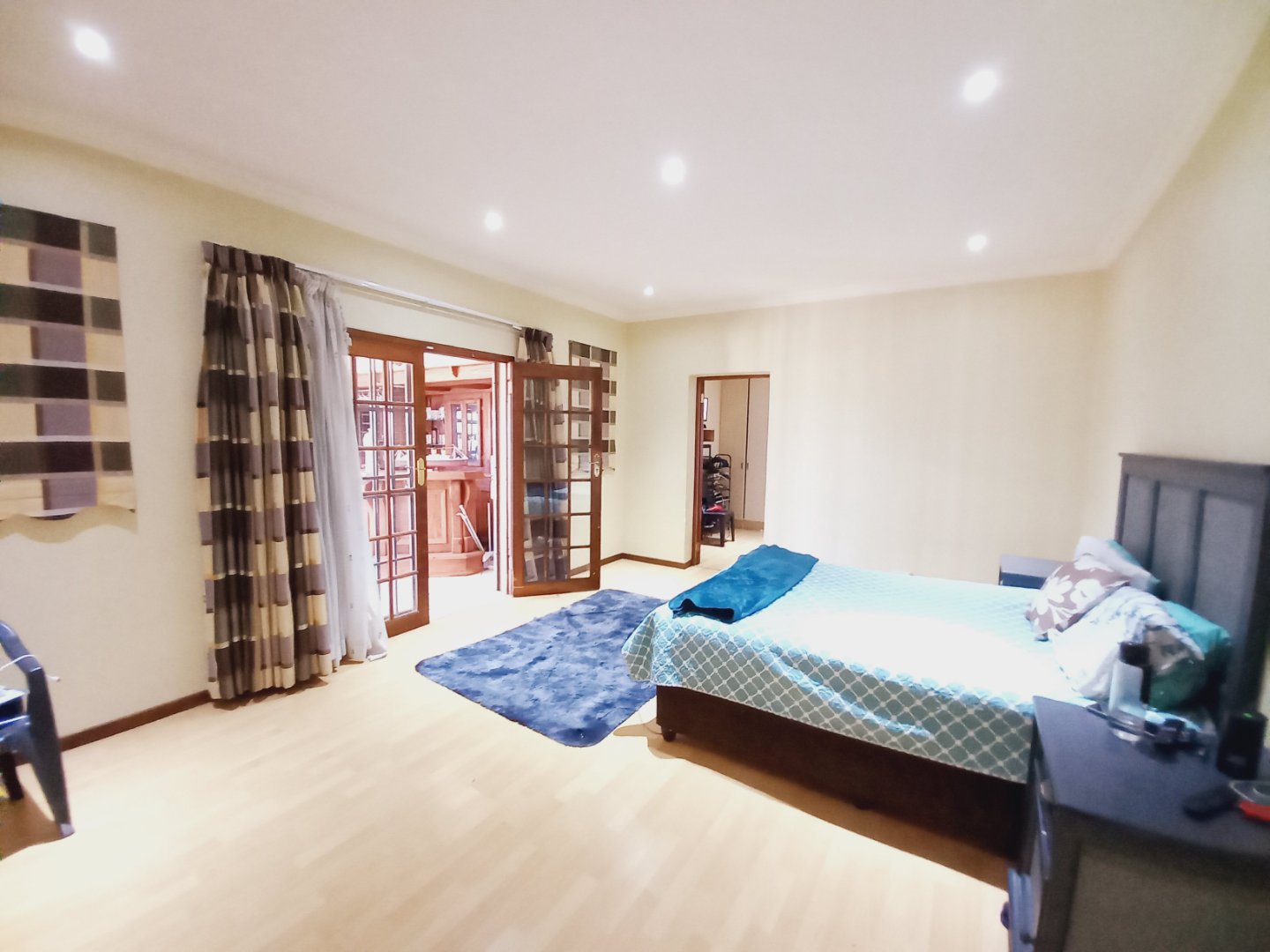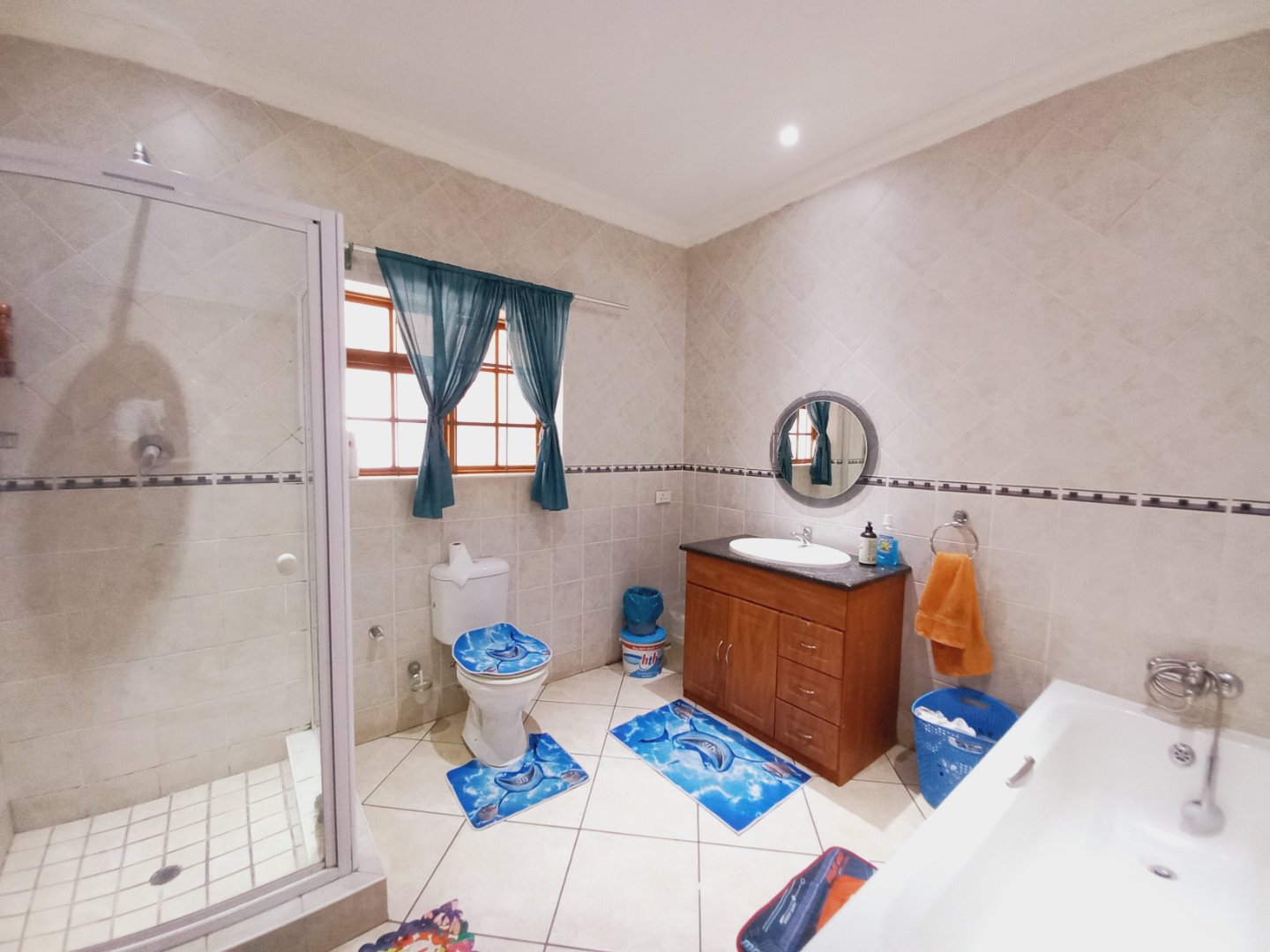 Outdoors, the property truly shines with a beautifully landscaped garden featuring a koi pond, jacuzzi, heated swimming pool, and a thatched lapa complete with built-in braai and counter space. With added practicalities such as a full generator, water backup system, double garage, and staff accommodation, this home provides both luxury and peace of mind. Perfectly located and thoughtfully designed, it offers the ultimate balance of style, security, and family living.