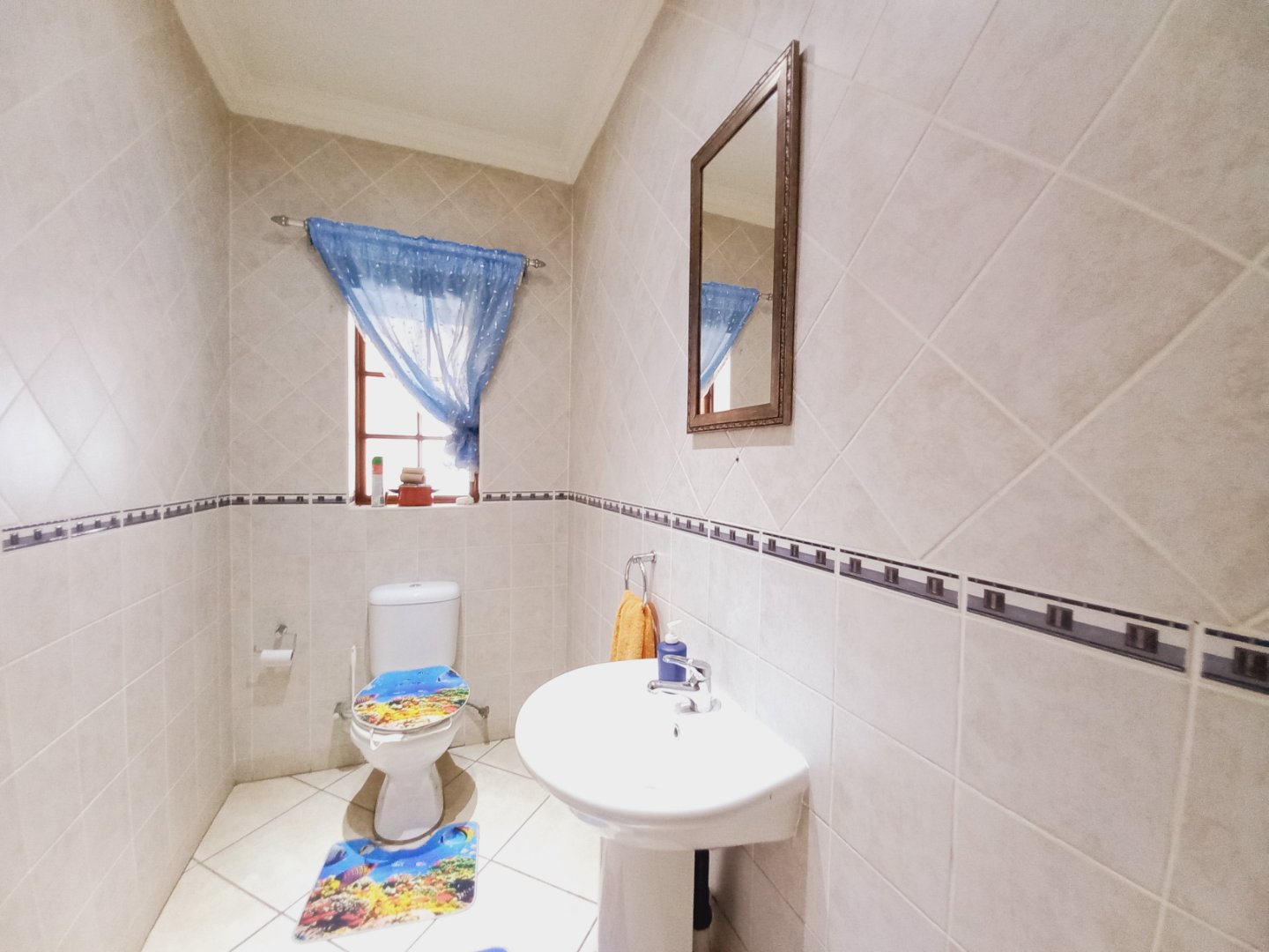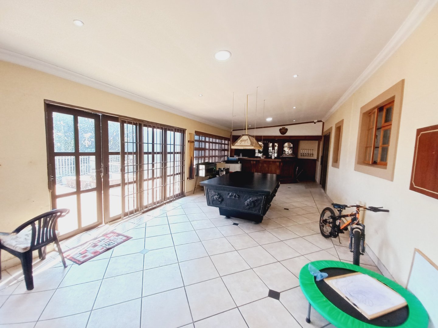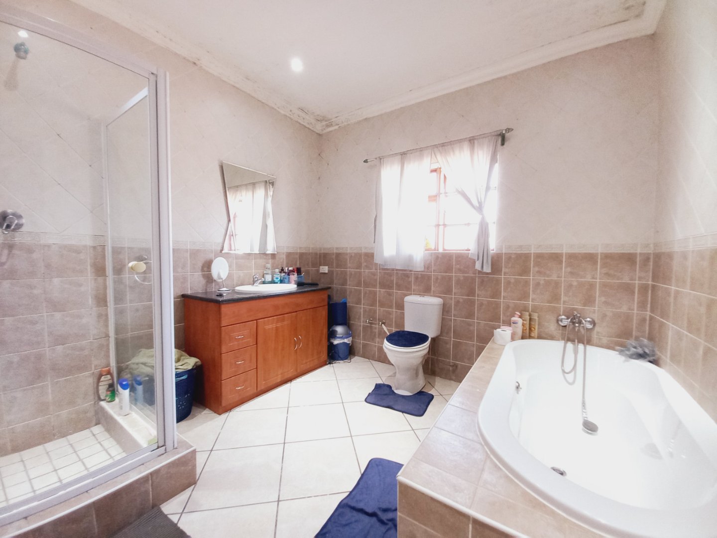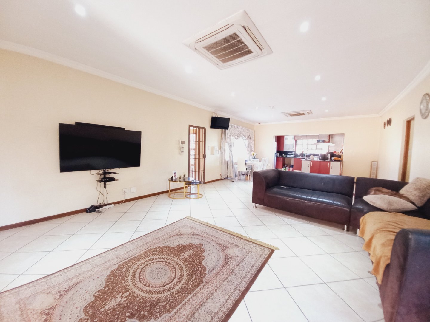 Outdoors, the property truly shines with a beautifully landscaped garden featuring a koi pond, jacuzzi, heated swimming pool, and a thatched lapa complete with built-in braai and counter space. With added practicalities such as a full generator, water backup system, double garage, and staff accommodation, this home provides both luxury and peace of mind. Perfectly located and thoughtfully designed, it offers the ultimate balance of style, security, and family living.