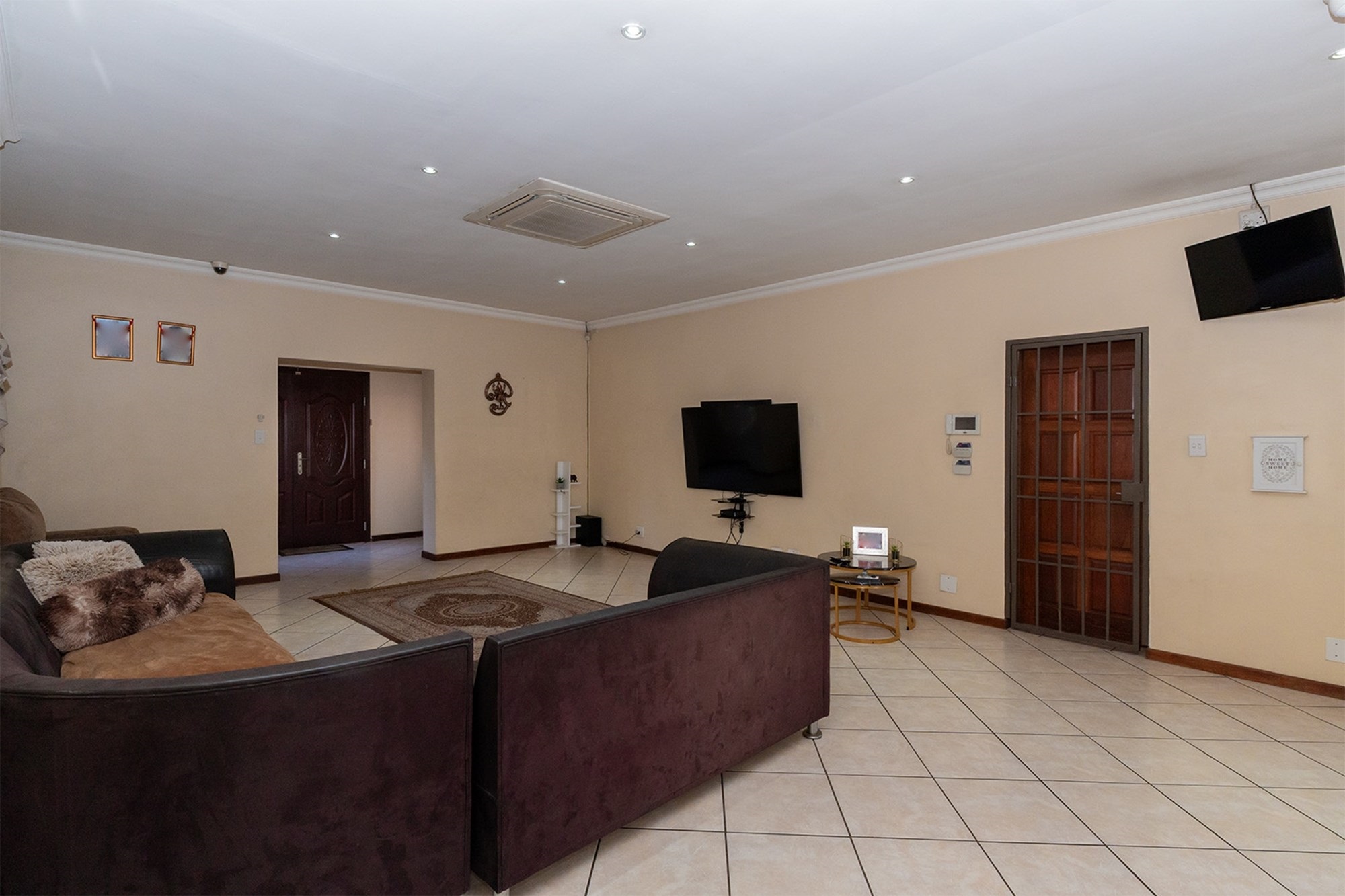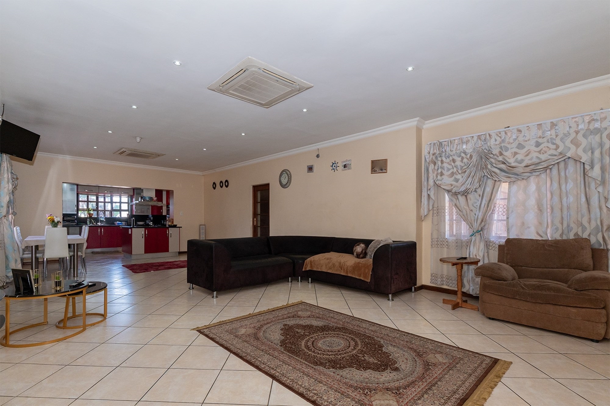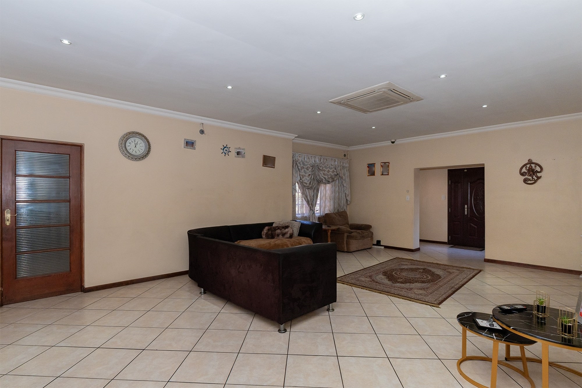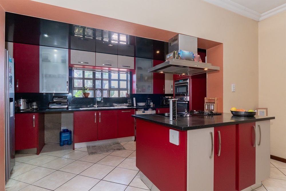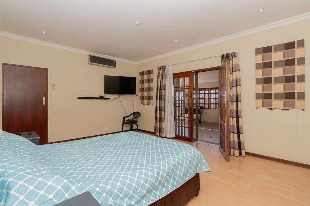 Practicality and comfort are ensured with a double automated garage (with home entrance and backyard doors leading to the lapa), additional parking, and staff accommodation complete with aircon, tiled floors, and private bathroom.