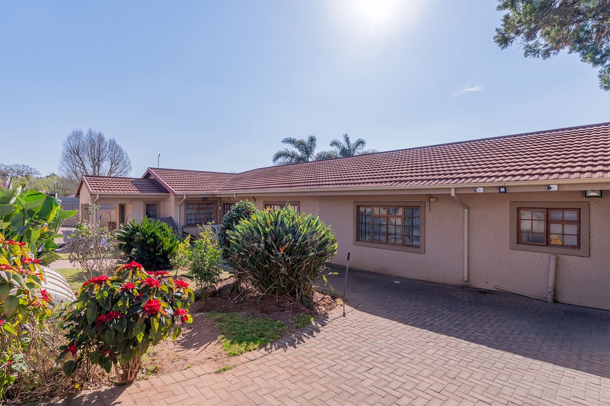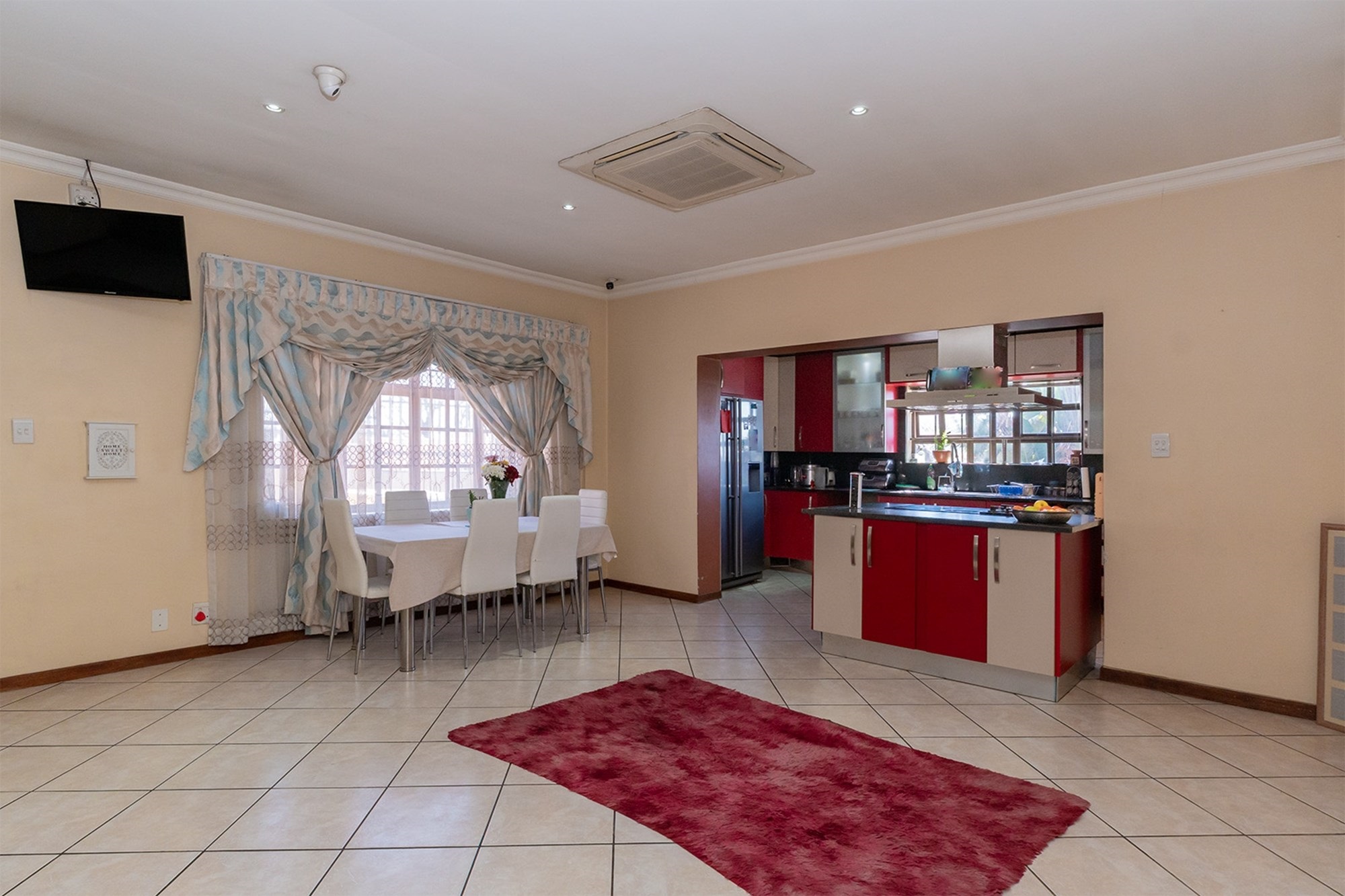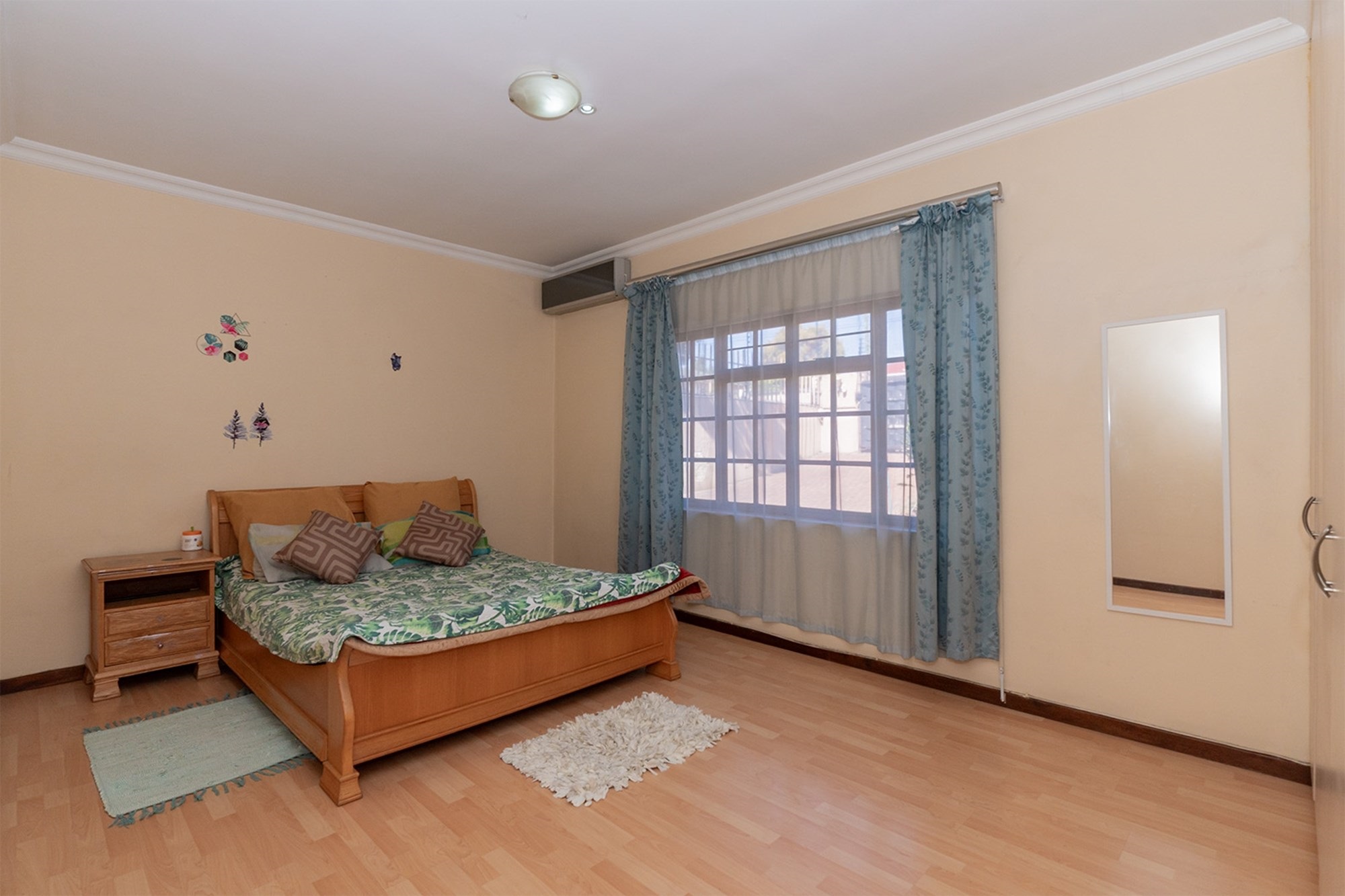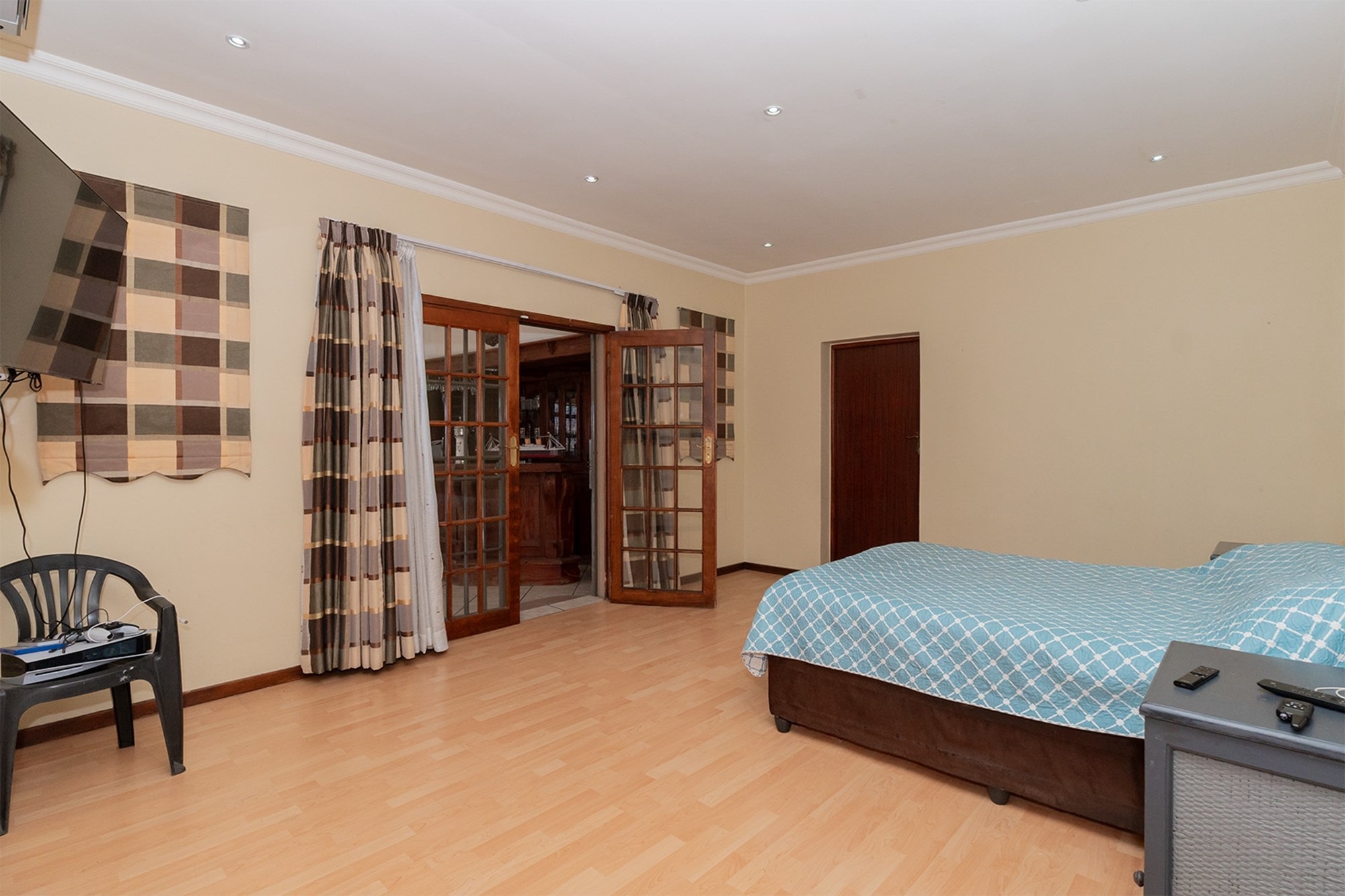 Practicality and comfort are ensured with a double automated garage (with home entrance and backyard doors leading to the lapa), additional parking, and staff accommodation complete with aircon, tiled floors, and private bathroom.