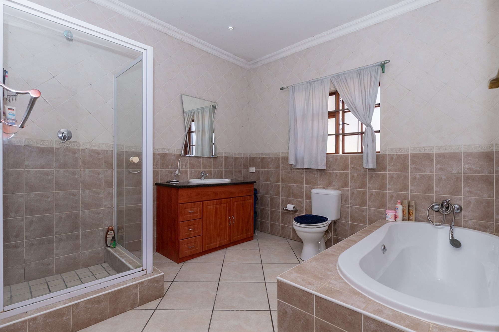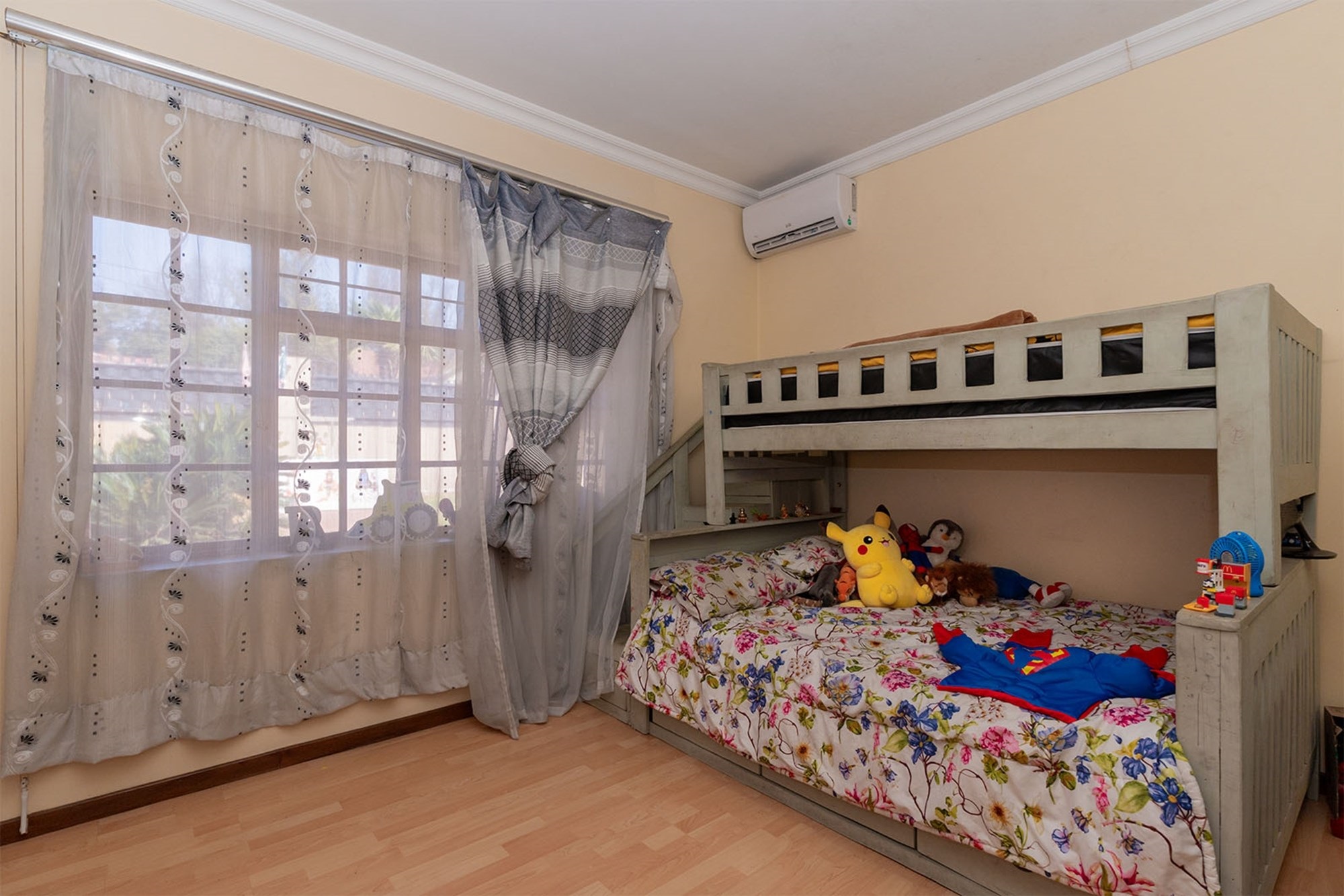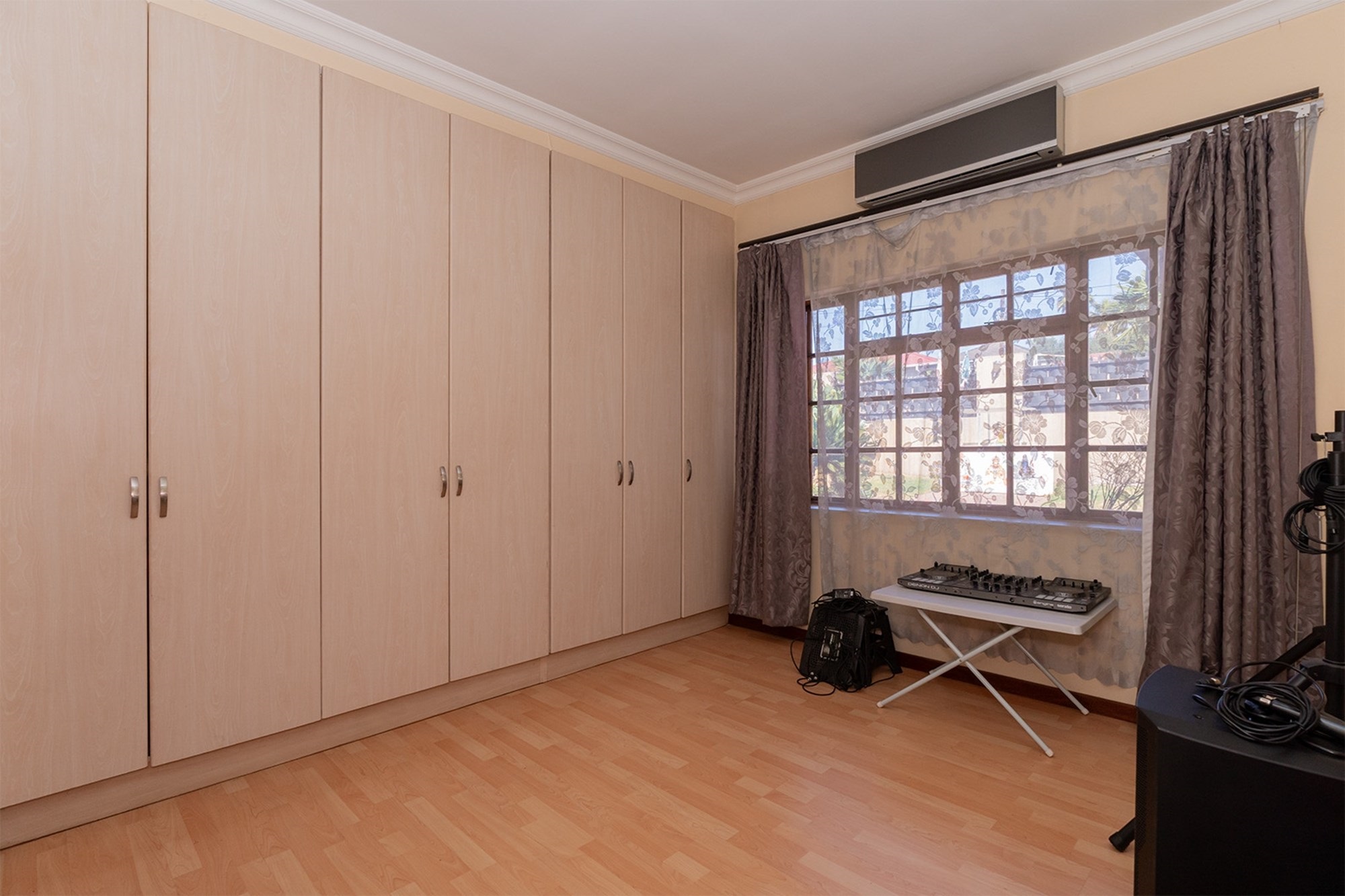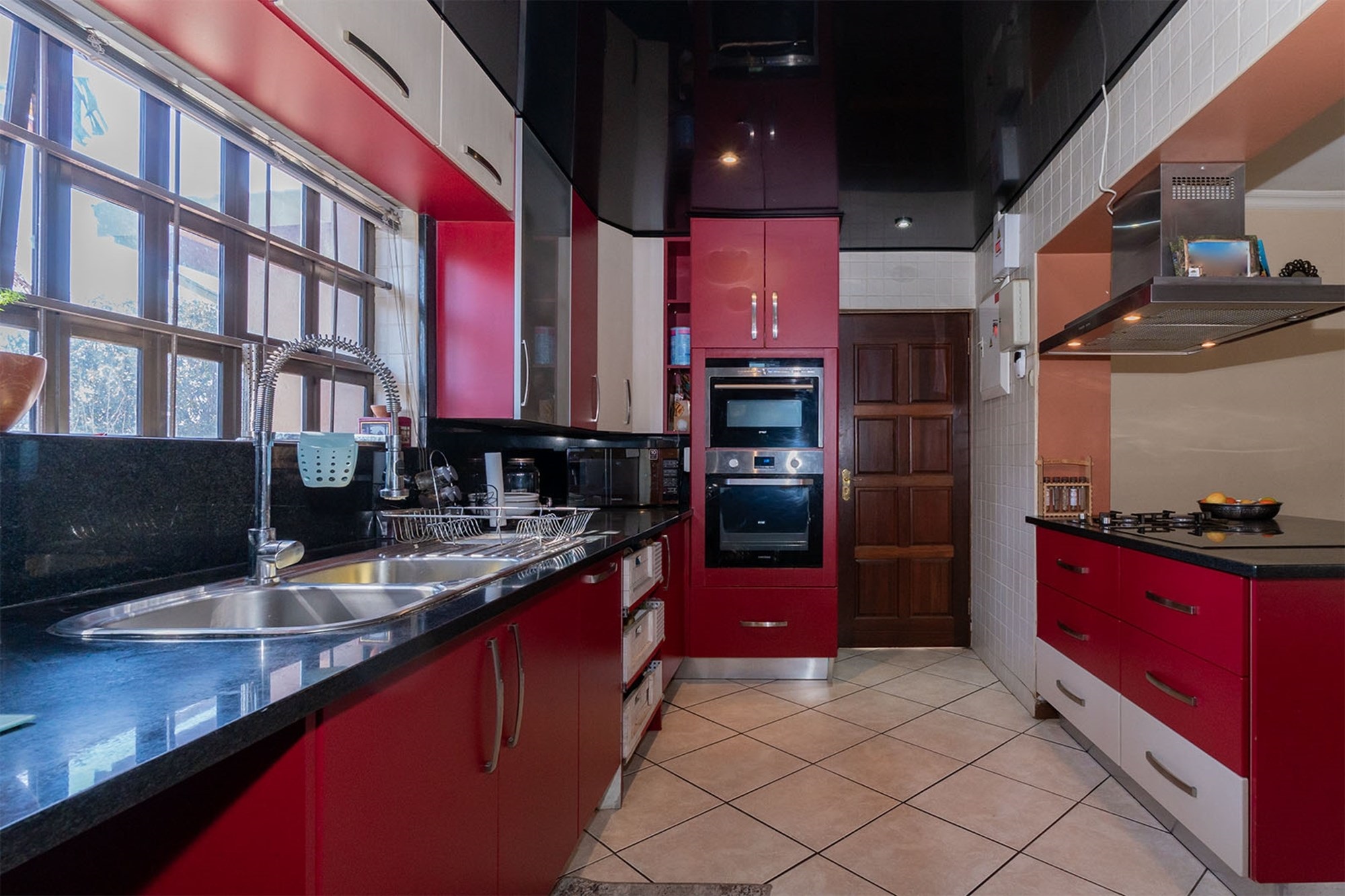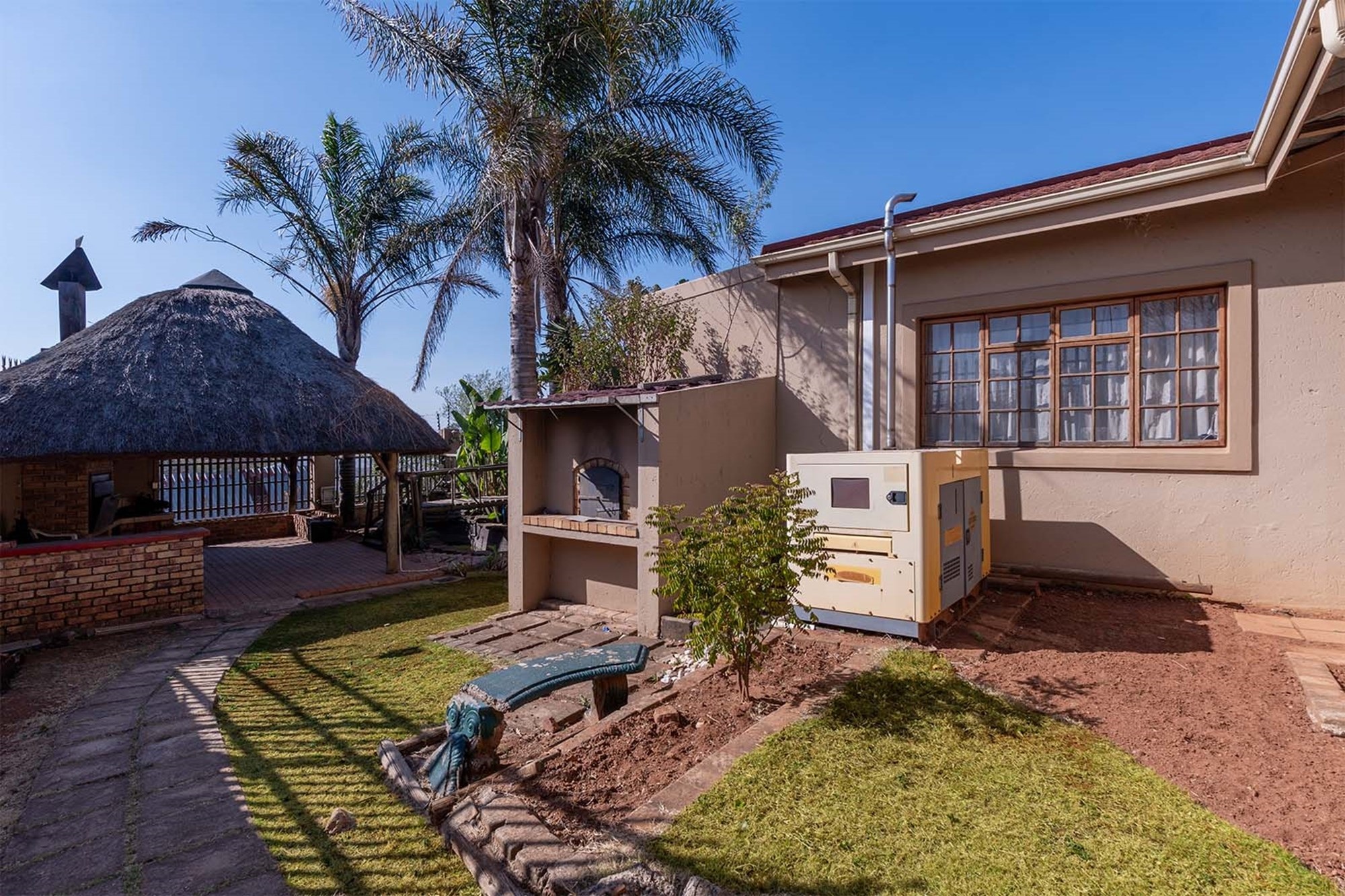 Practicality and comfort are ensured with a double automated garage (with home entrance and backyard doors leading to the lapa), additional parking, and staff accommodation complete with aircon, tiled floors, and private bathroom.