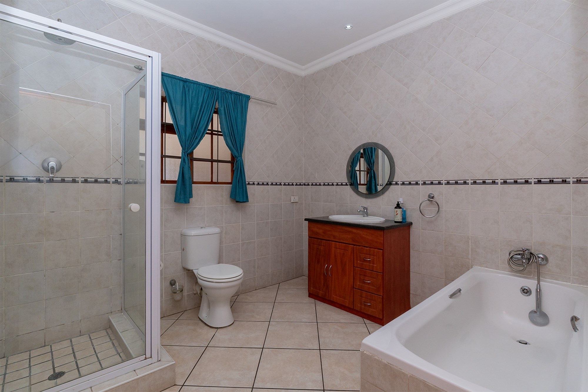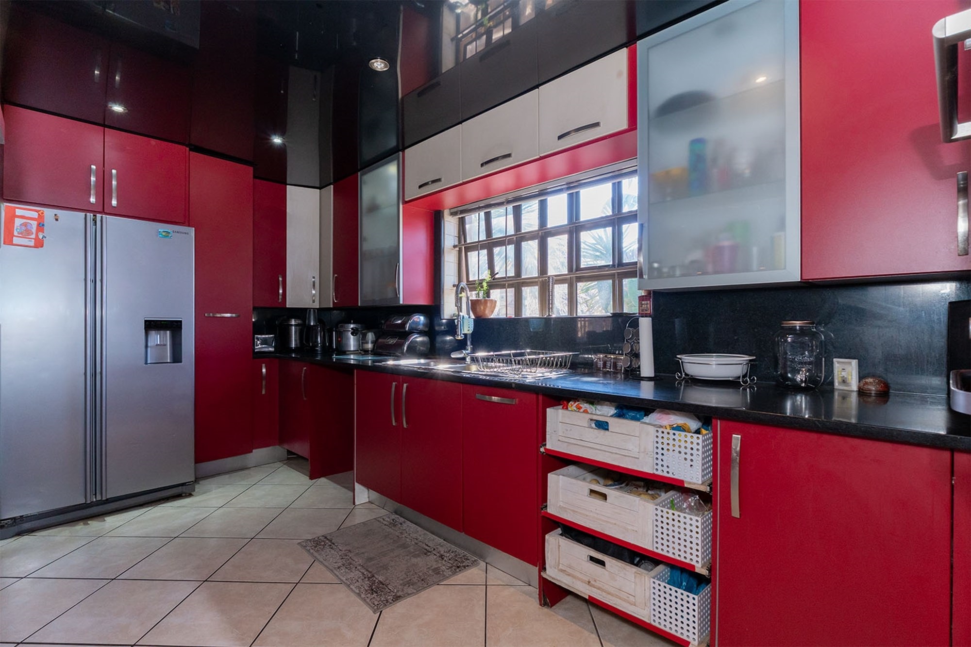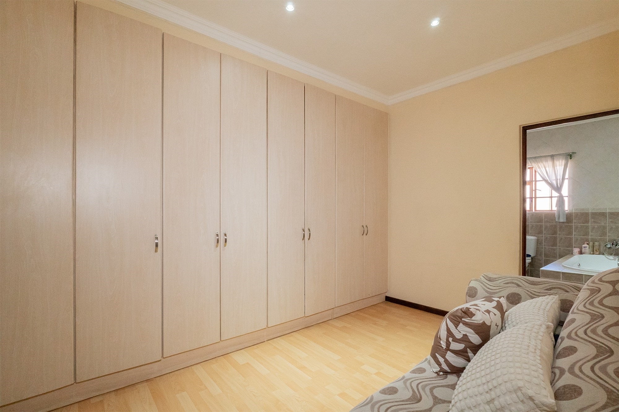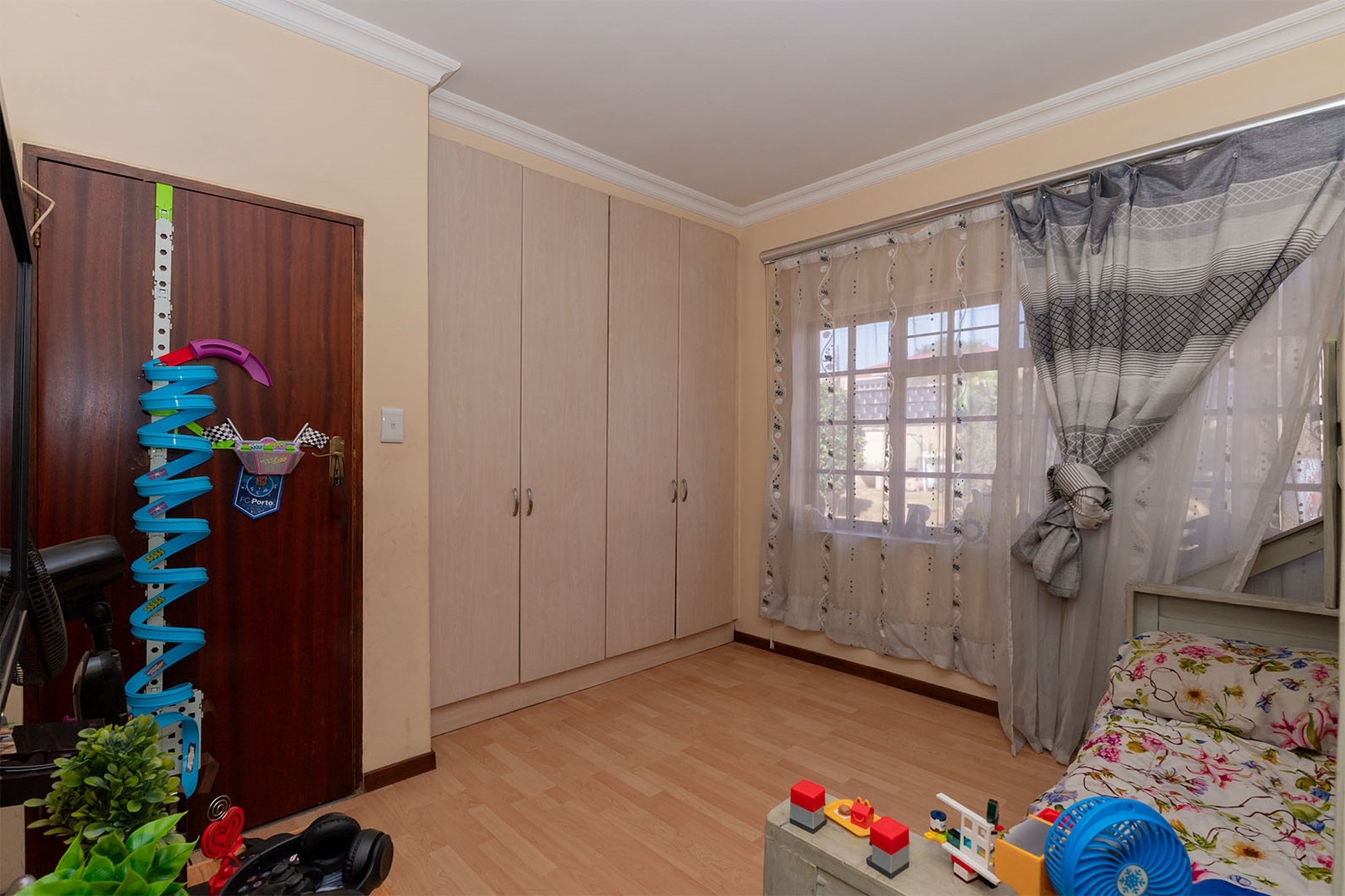 Practicality and comfort are ensured with a double automated garage (with home entrance and backyard doors leading to the lapa), additional parking, and staff accommodation complete with aircon, tiled floors, and private bathroom.