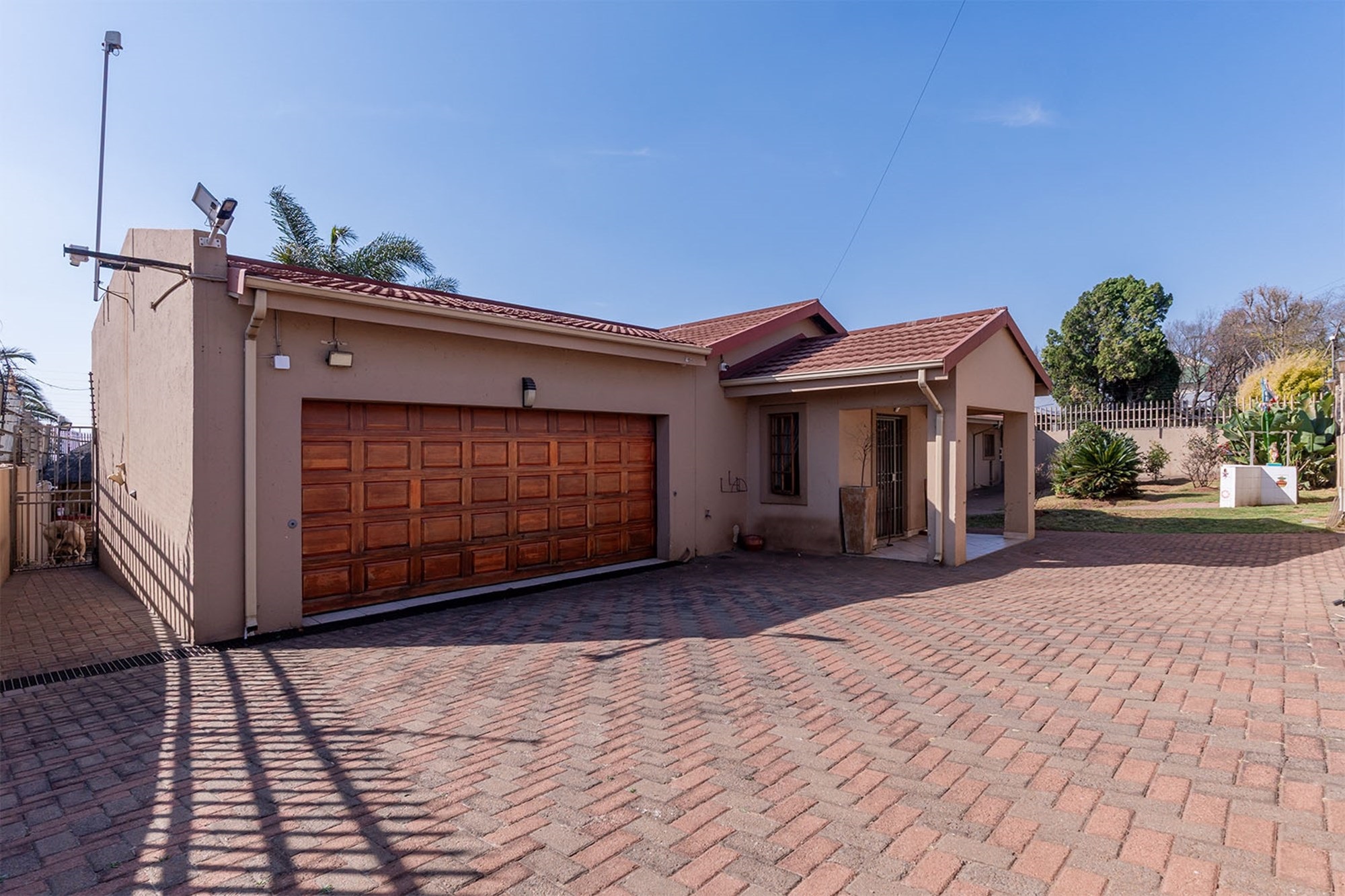 Security is top-notch with an electric fence, alarm system, and perimeter beams.