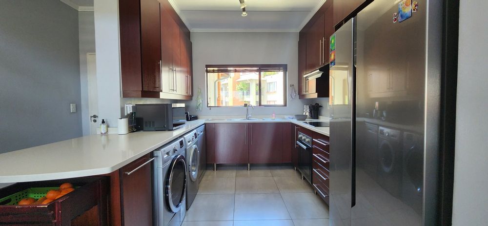 Enjoy two bedrooms conveniently located on the kitchen level, complete with generous cupboard space. The stylish kitchen is designed for both function and flair — boasting a wine rack, spice drawer, extended breakfast nook, and space for three appliances plus a double-door fridge.