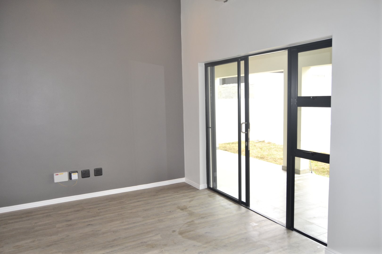 This spacious three-bedroom home has been thoughtfully designed for modern living. The main bedroom features a luxurious en-suite and walk-in closet, while the remaining bedrooms offer generous space for children, guests, or a home office. The open-plan living areas are filled with natural light and flow seamlessly from the designer kitchen—with its statement island—into the dining and lounge spaces. A built-in braai makes everyday family meals and year-round entertaining effortless.
