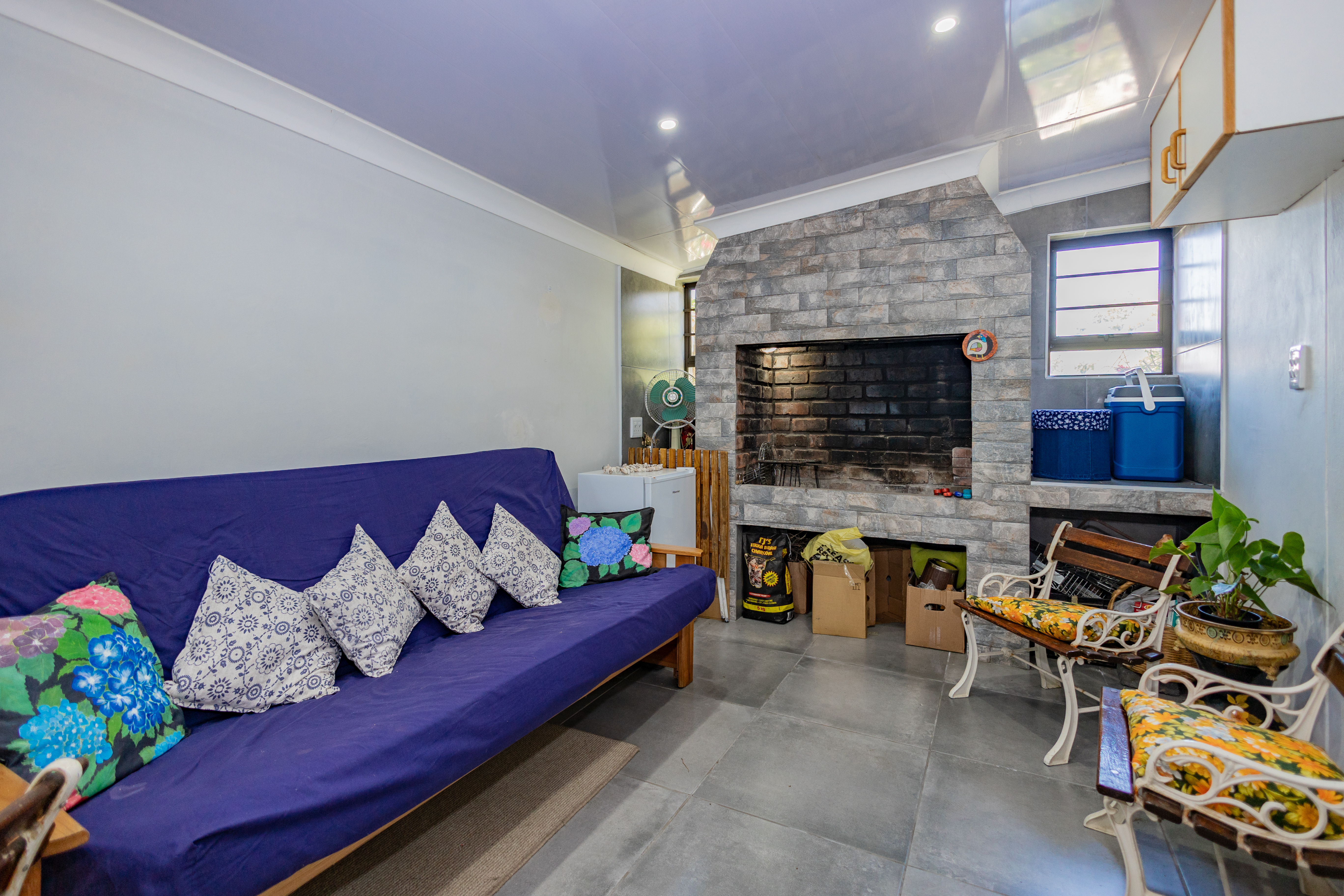 Inside, the layout flows effortlessly — from the light, tiled living space to the dedicated braai room, a cosy all-season spot ideal for hosting friends, enjoying Sunday lunches, or unwinding after a long day. It’s a private, warm entertainment corner that adds real value to the home.