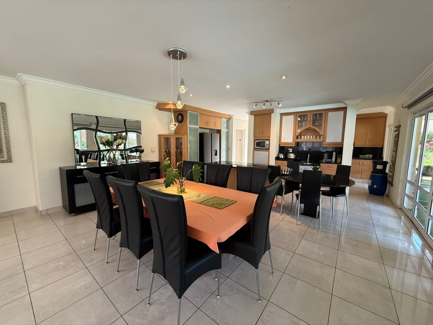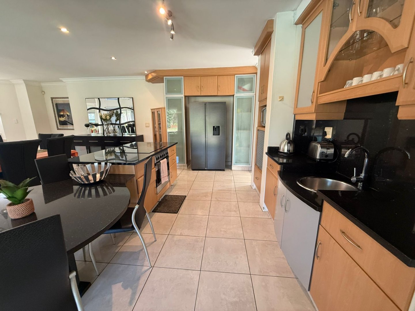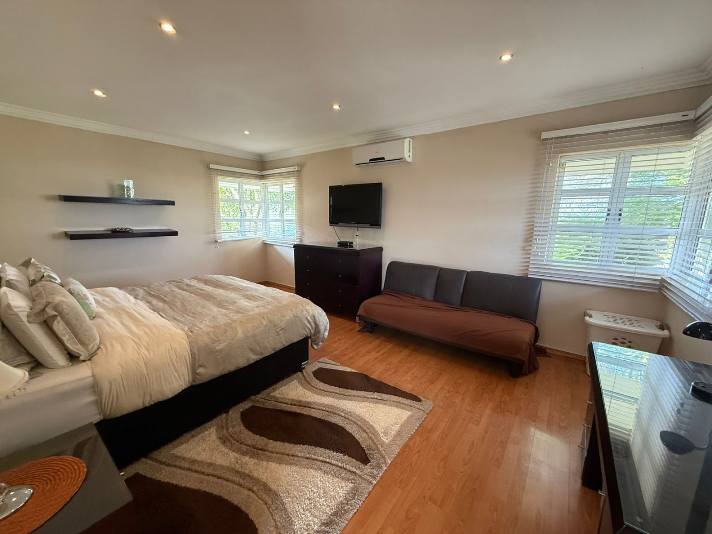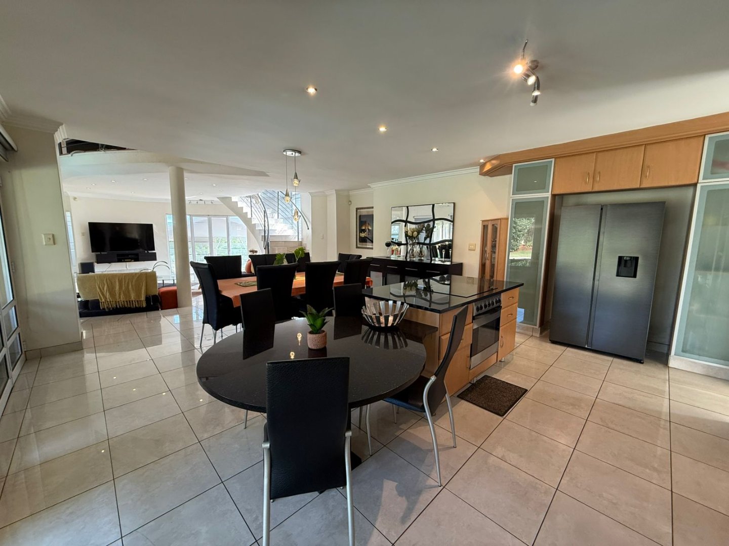 Start the year off on a high note in this stunning 4 bedroom home in Somerset Park. Fully furnished with high end furnishings, the multiple living and dining areas are open plan and full of natural light, leading to the large covered veranda. The well fitted and fully equipped kitchen has a centre island and separate scullery with access to the back yard. A private office and guest toilet is on the lower level. Ascend the elegant staircase to a serene PJ lounge off which there are 4 spacious bedrooms, all en suite with air conditioning and balconies.