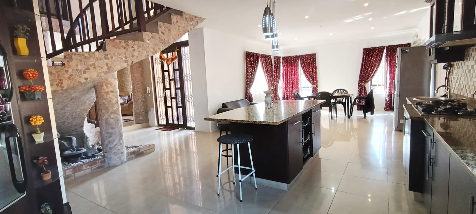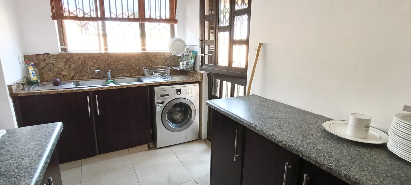 This is a shared property with a cottage at the bottom of the property, tenanted, with an independent driveway and parking. There is an alarm system, electric fence and the road is boomed with a guard on site. This is a very exclusive area with visible patrols. Close to Umhlanga, Umhlanga Ridge, La Lucia and Durban, the location is superb. The rental includes all utilities. An option of partially furnished is available.
