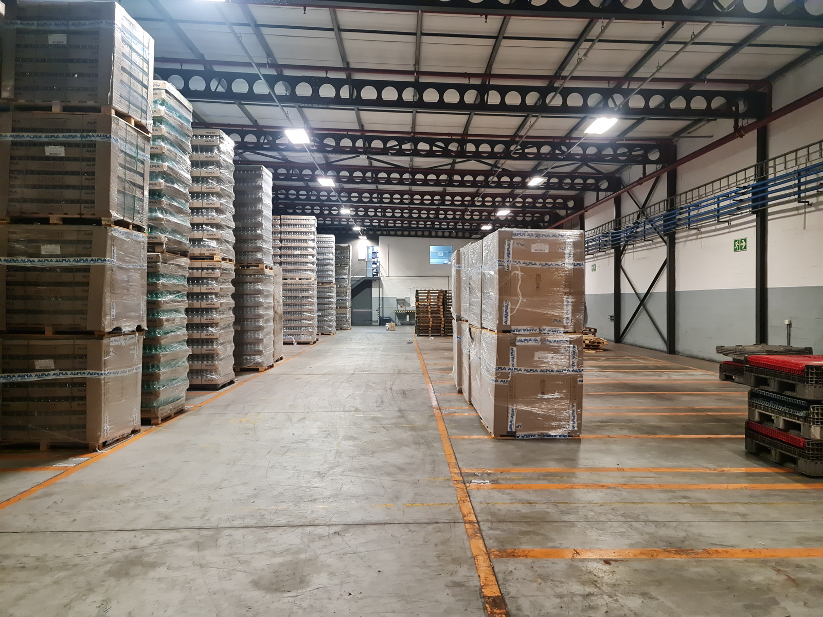 Designed for interlink truck access, the warehouse also includes a canopy for loading and unloading, protecting goods from the elements. The insulated steel roof, coupled with LED lighting and a fire sprinkler system, ensures a safe and energy-efficient environment.