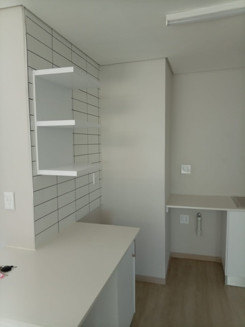 Kitchen comes with 2 plumbing points and glass top stove.