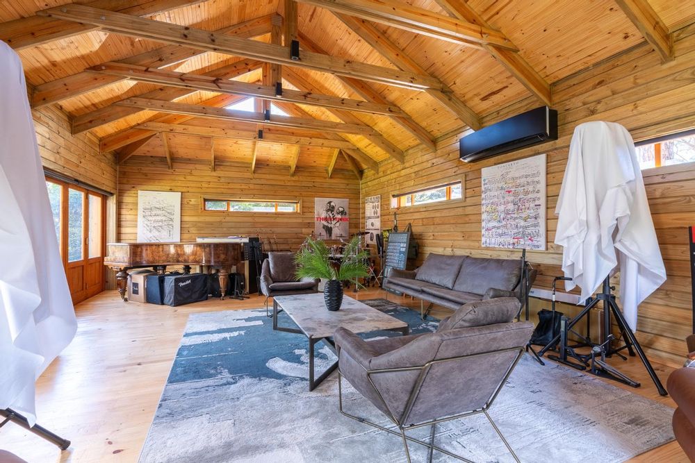 Creative minds will appreciate the home cinema, fully equipped music rehearsal and performance space, and a strong connection to local arts and eco-education centers. Horseback trails, hiking paths, and mountain biking routes surround the estate, further enhancing the lifestyle offering.