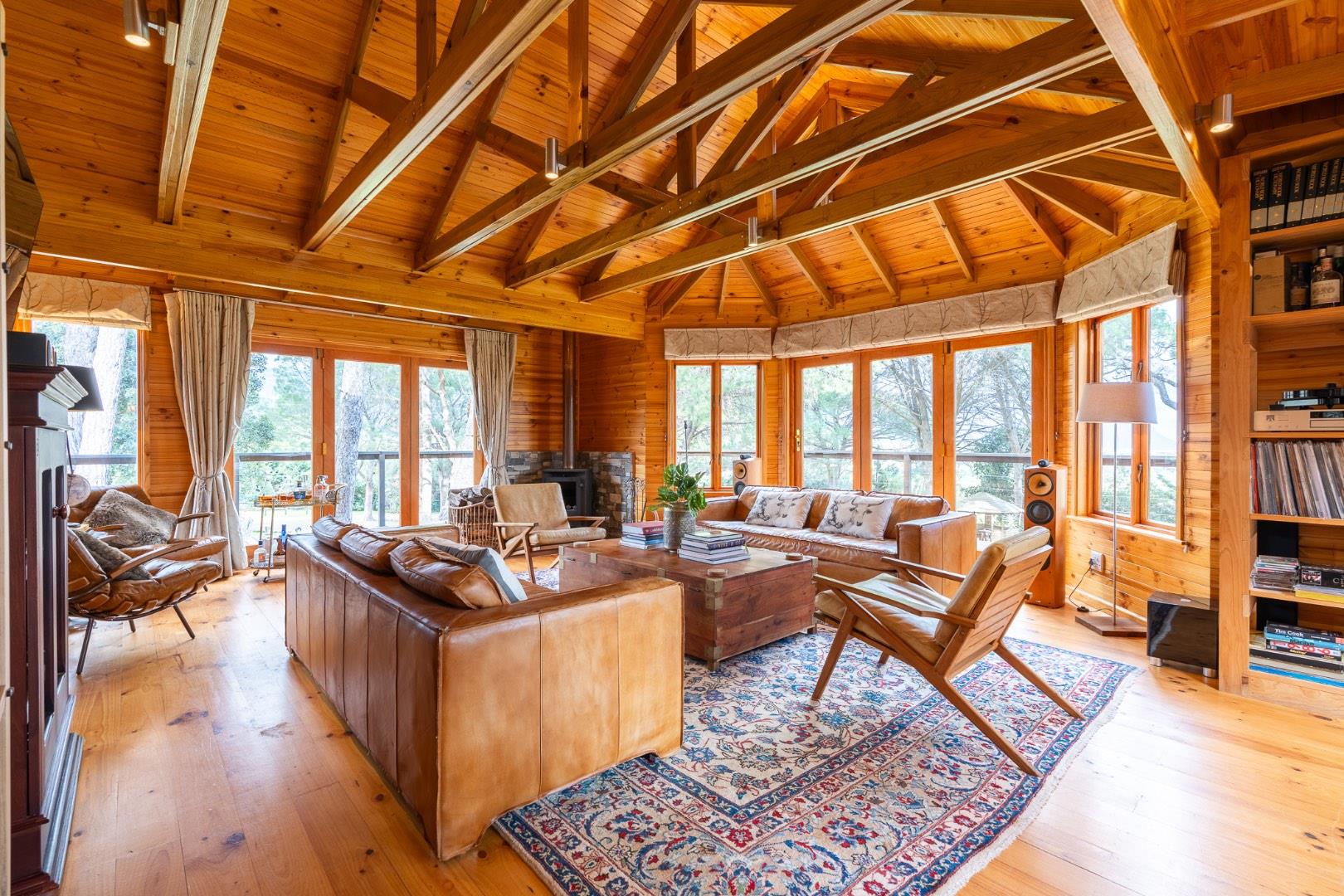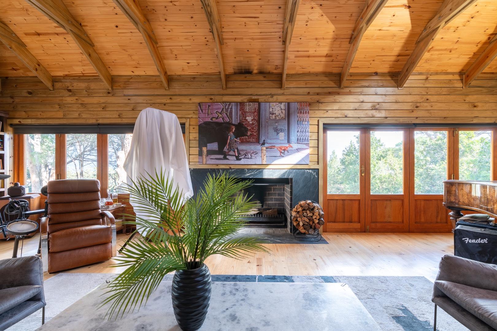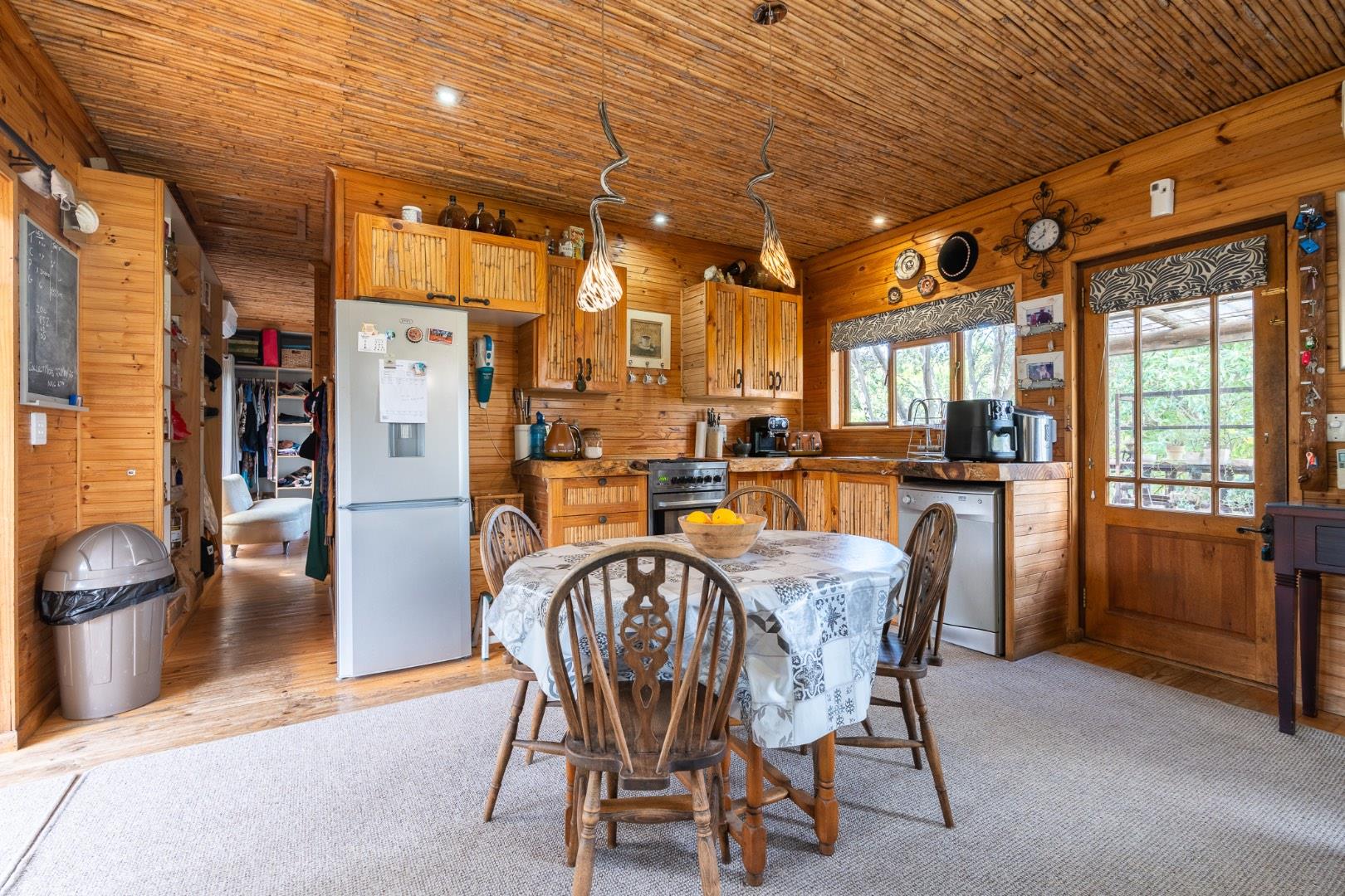 Tucked within a serene pine forest and spread across gently sloping hills with panoramic views of the distant ocean at Strand, the estate blends rustic luxury with functional design. The property features several hand-crafted, Swiss-inspired eco timber frame buildings that evoke warmth, comfort, and natural elegance—perfect as a family homestead, boutique guest lodge, or income-generating retreat.