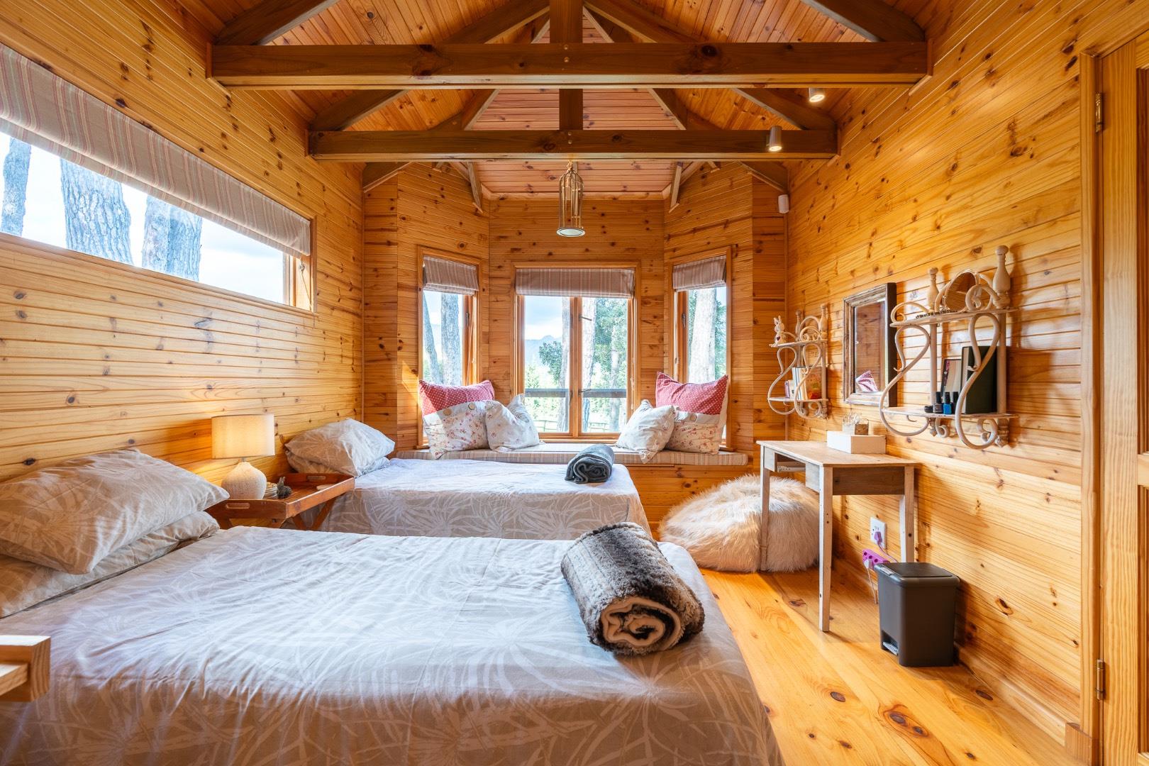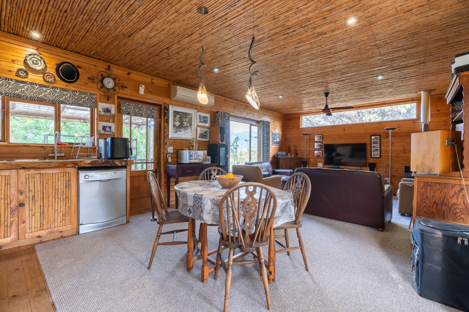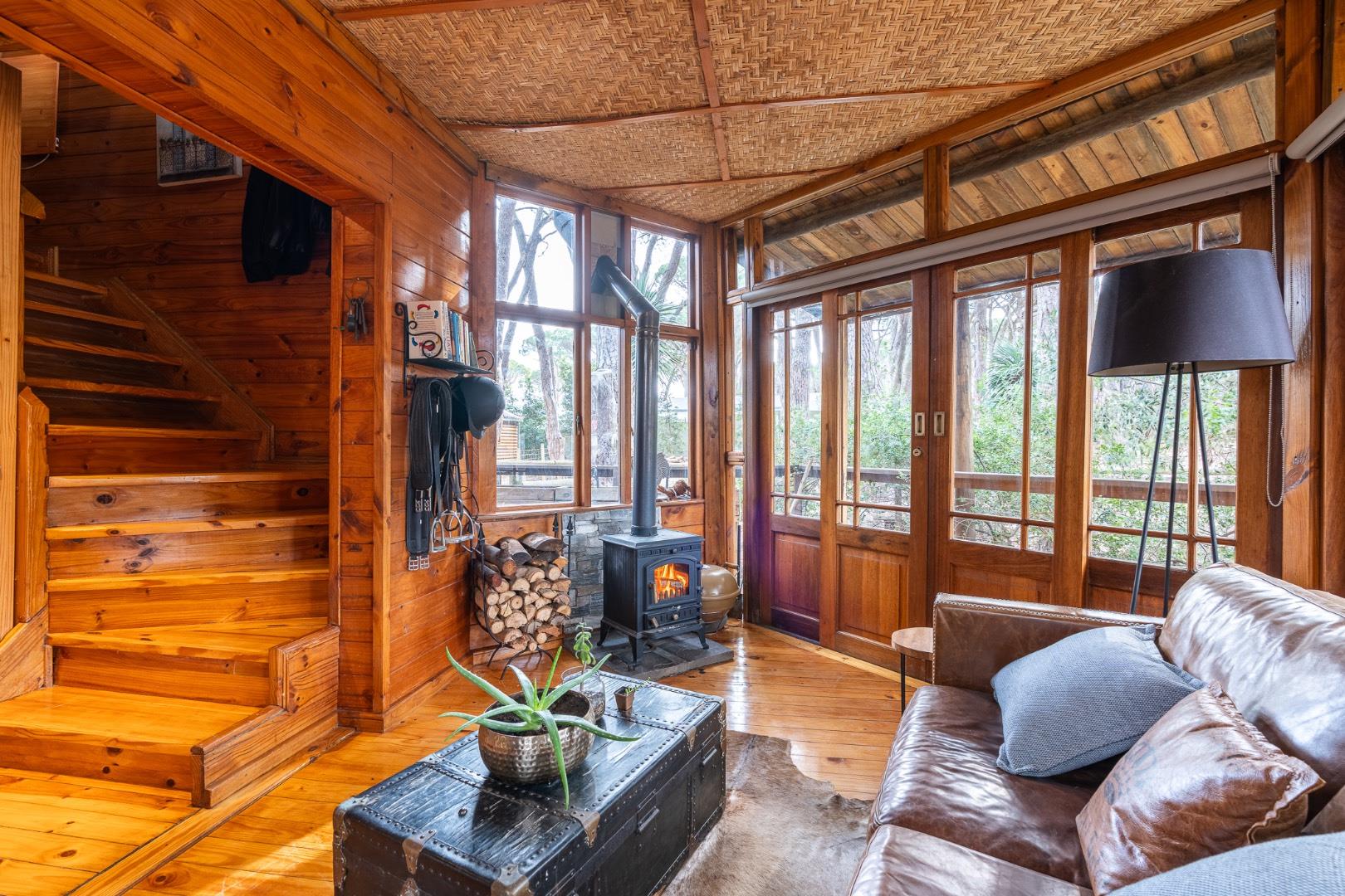 Tucked within a serene pine forest and spread across gently sloping hills with panoramic views of the distant ocean at Strand, the estate blends rustic luxury with functional design. The property features several hand-crafted, Swiss-inspired eco timber frame buildings that evoke warmth, comfort, and natural elegance—perfect as a family homestead, boutique guest lodge, or income-generating retreat.