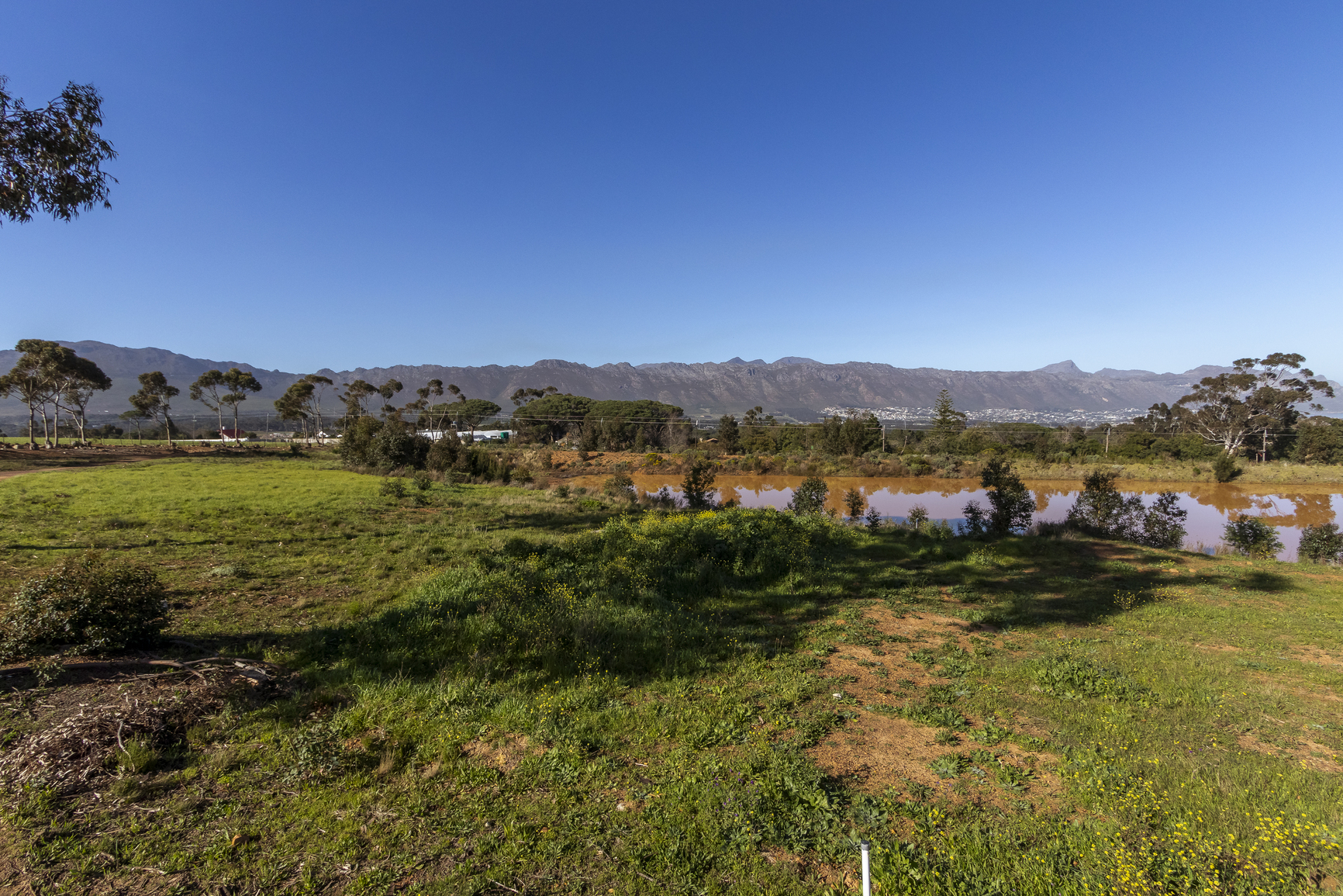 This plot is situated in the lower section of Mount Rhodes Estate, offering peaceful surroundings and privacy. It is fully serviced, ready to build your dream home. This plot offers a tranquil Setting. Located next to a peaceful dam, bringing rich bird life and plant life. living here you will have access to the trails through the private vineyards for walking, jogging or cycling in this gated estate.
