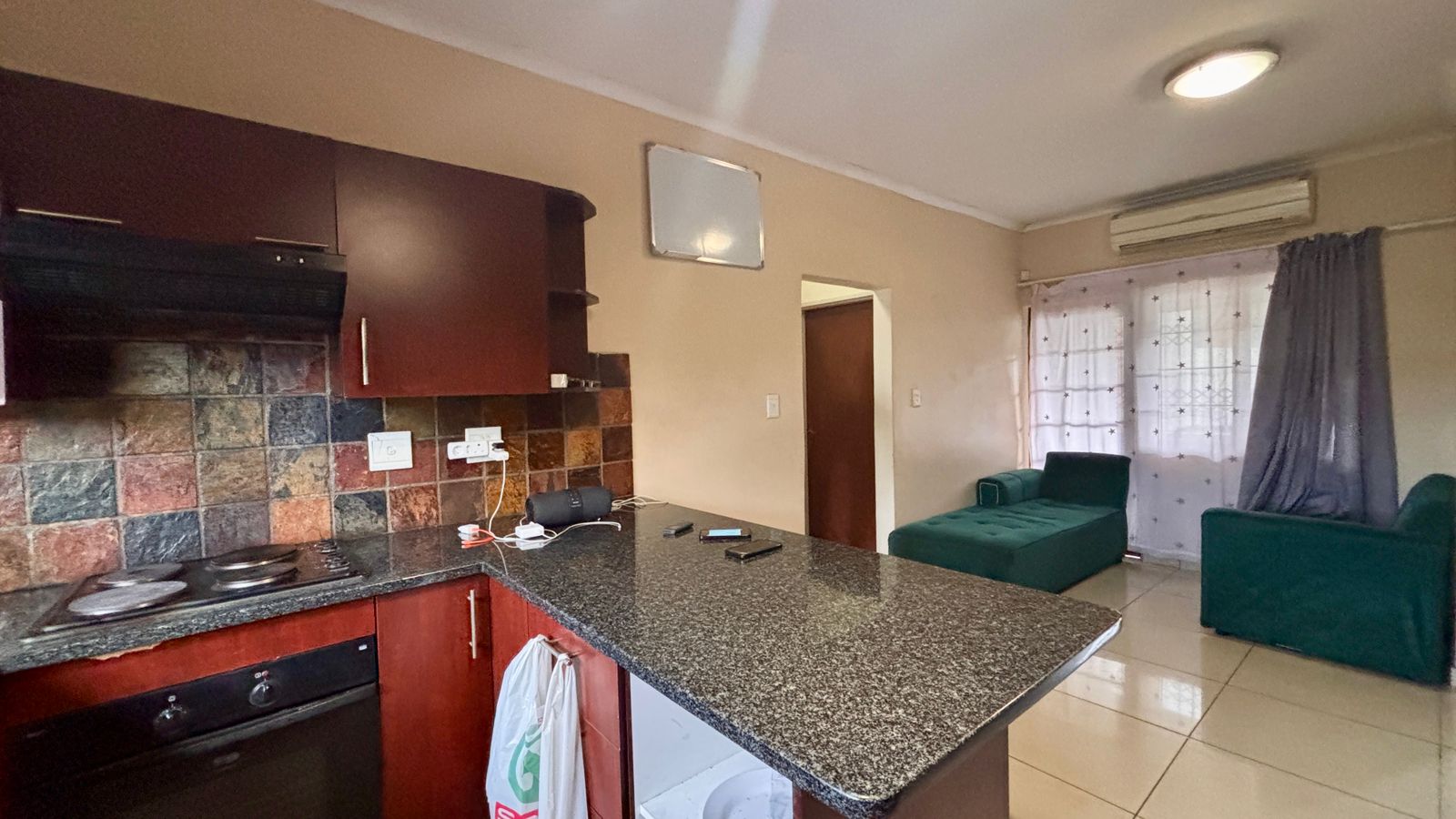 - Open plan living room and kitchen