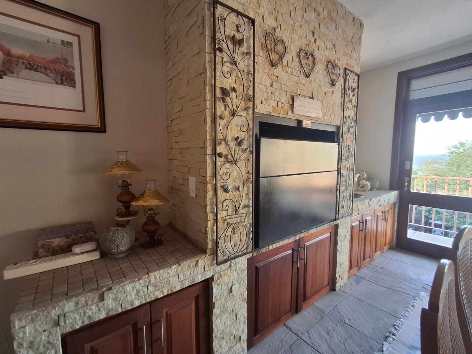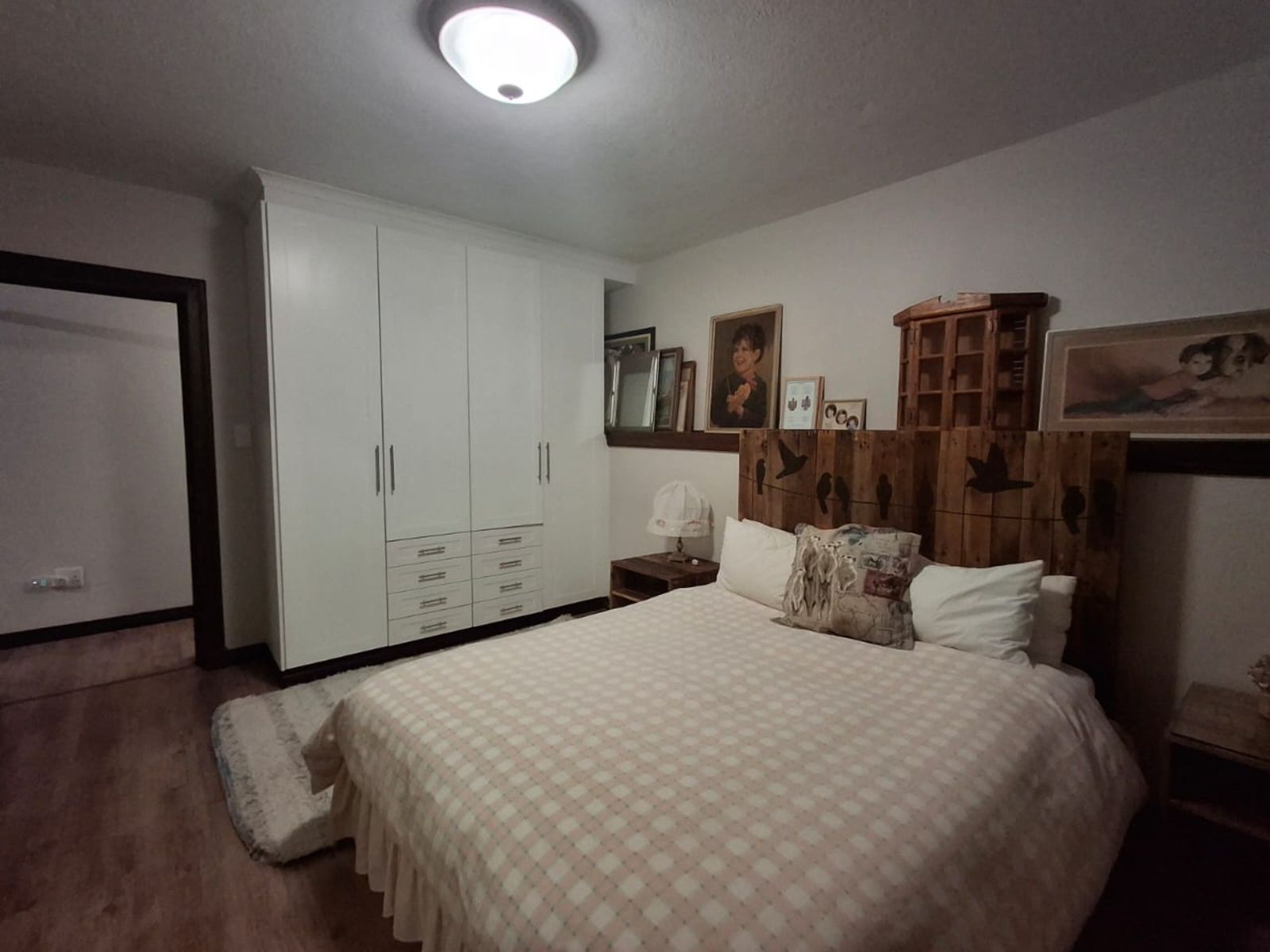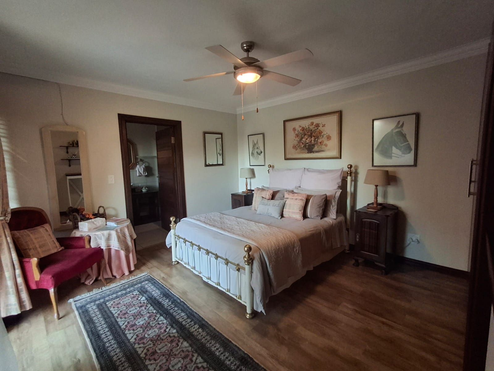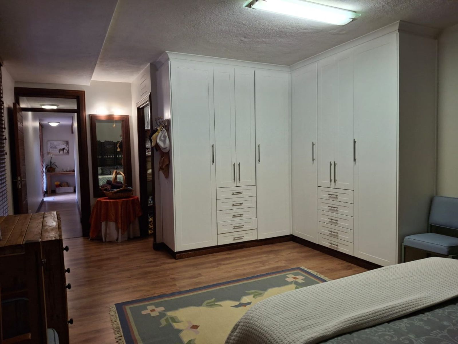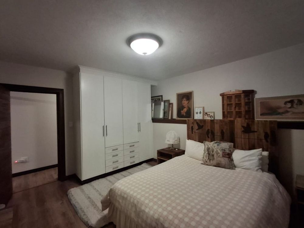 The main house is positioned above a full flat and a private guest suite, offering elevated views over the beautiful Nelspruit landscape. Each bedroom in the main house opens onto a balcony, creating a seamless connection with the outdoors and allowing for fresh air and natural light throughout. Inside, rich dark wood finishes and wood-laminated flooring add warmth and sophistication. The open-plan kitchen and dining area is both practical and stylish, complete with a pantry and scullery for extra convenience. A fireplace in the living room is strategically placed to warm the entire space during cooler months.