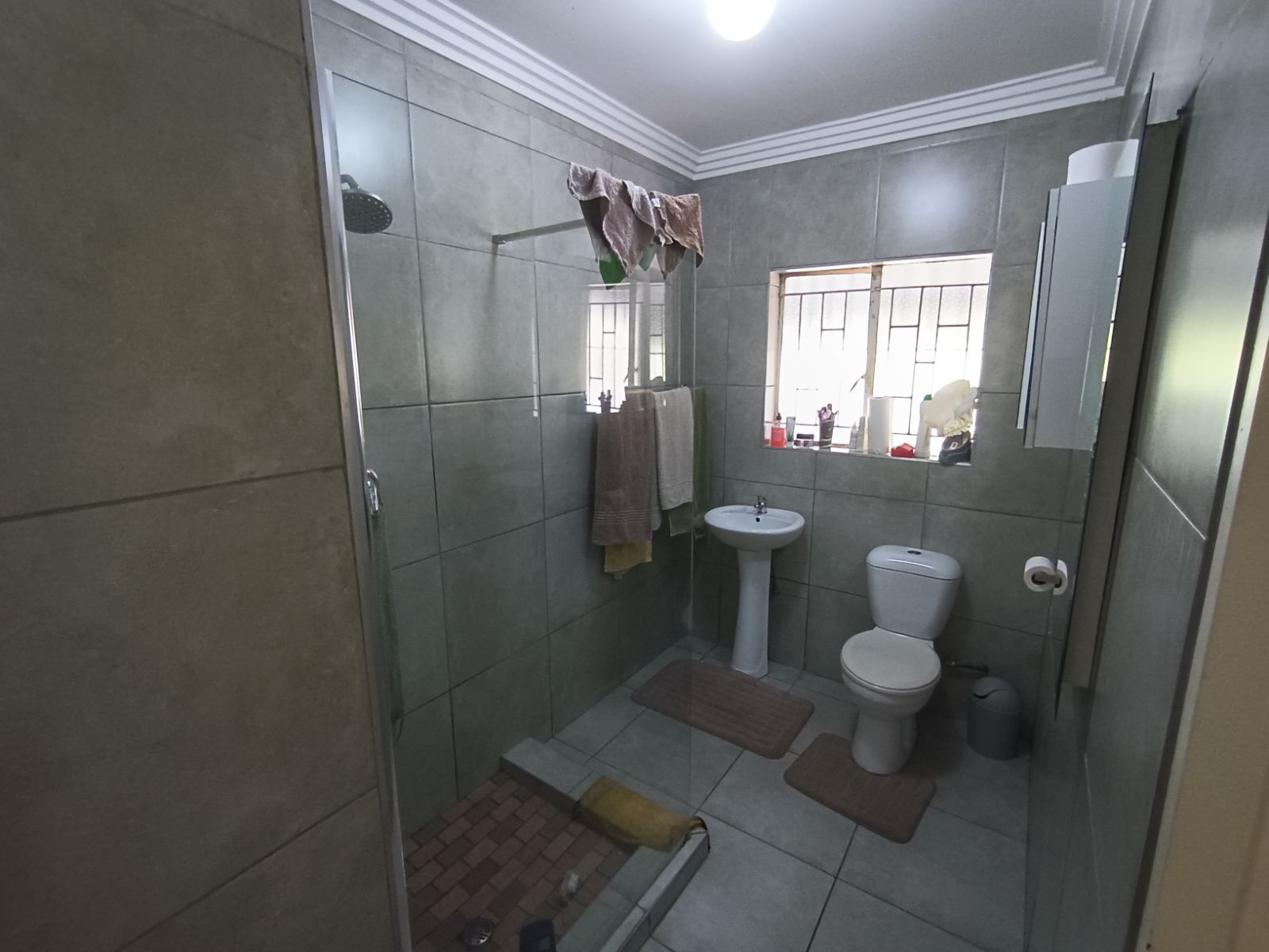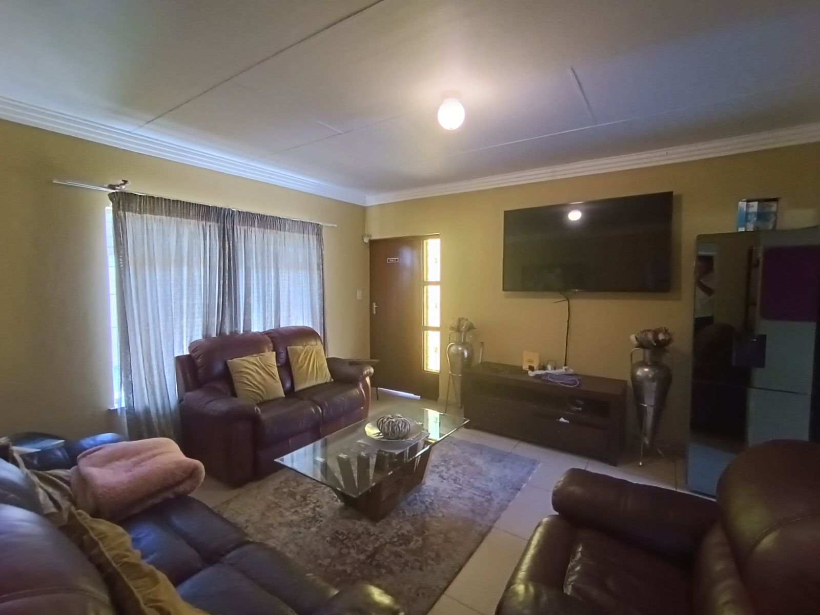 The main house features three comfortable bedrooms, each fitted with built-in cupboards. A full bathroom with bath and shower is shared, with a separate toilet adding everyday convenience. The living area is spacious and airy, ideal for relaxed family time, and connects to a modern, functional kitchen with ample cupboard space and room for appliances.
