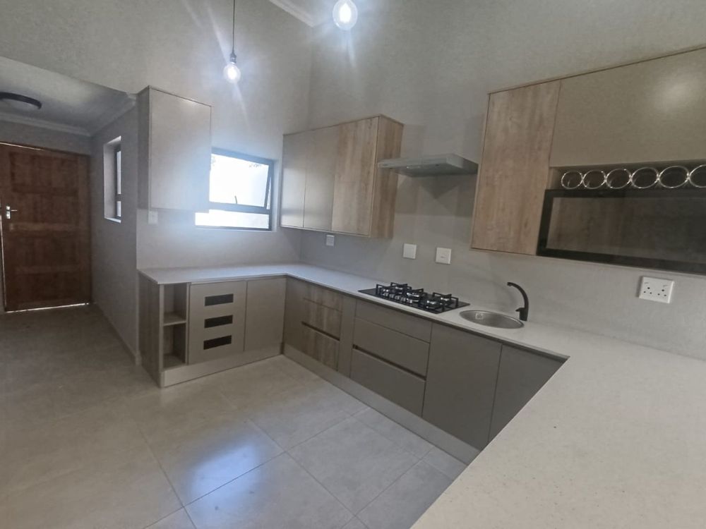 The heart of the home is the open-plan kitchen, seamlessly flowing into the TV room and featuring a convenient scullery. The kitchen is equipped with a modern gas stove, perfect for culinary enthusiasts.