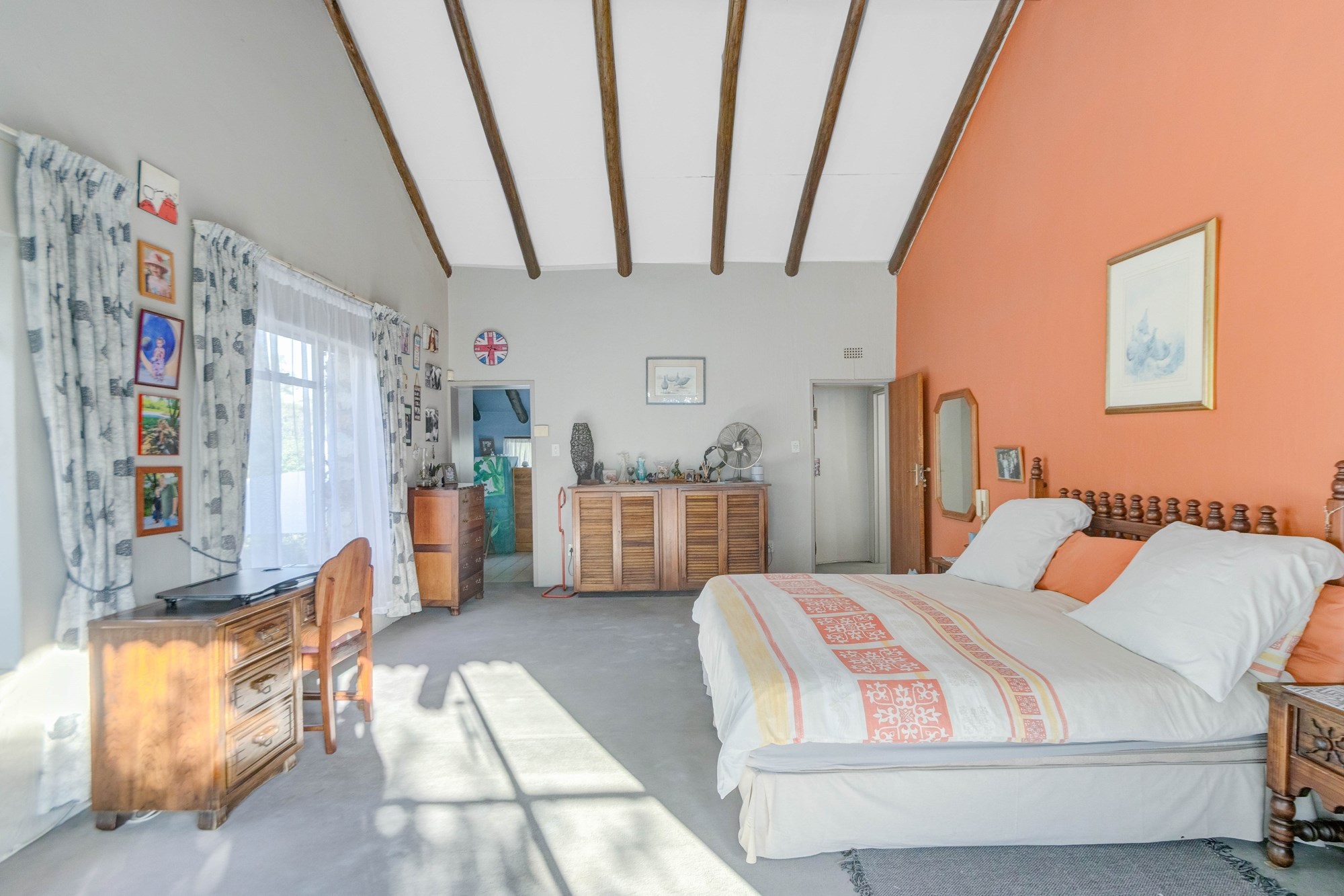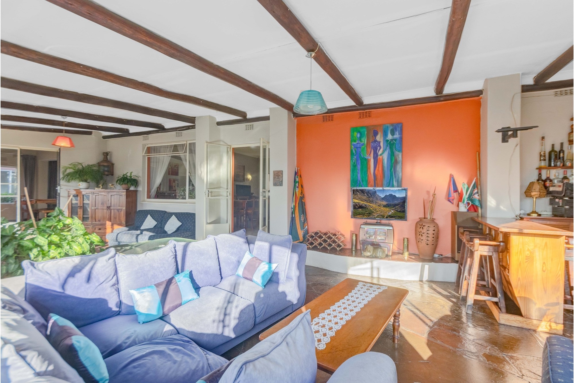 The light-filled main residence is thoughtfully designed for both family living and entertaining. At its heart is a spacious kitchen featuring a gas stove, generous cupboard space, a walk-in pantry, and a separate scullery. The open-plan dining and living areas flow effortlessly into a sun-drenched additional lounge with a built-in bar, leading out to a lush garden and sparkling pool—perfect for relaxed outdoor living.
