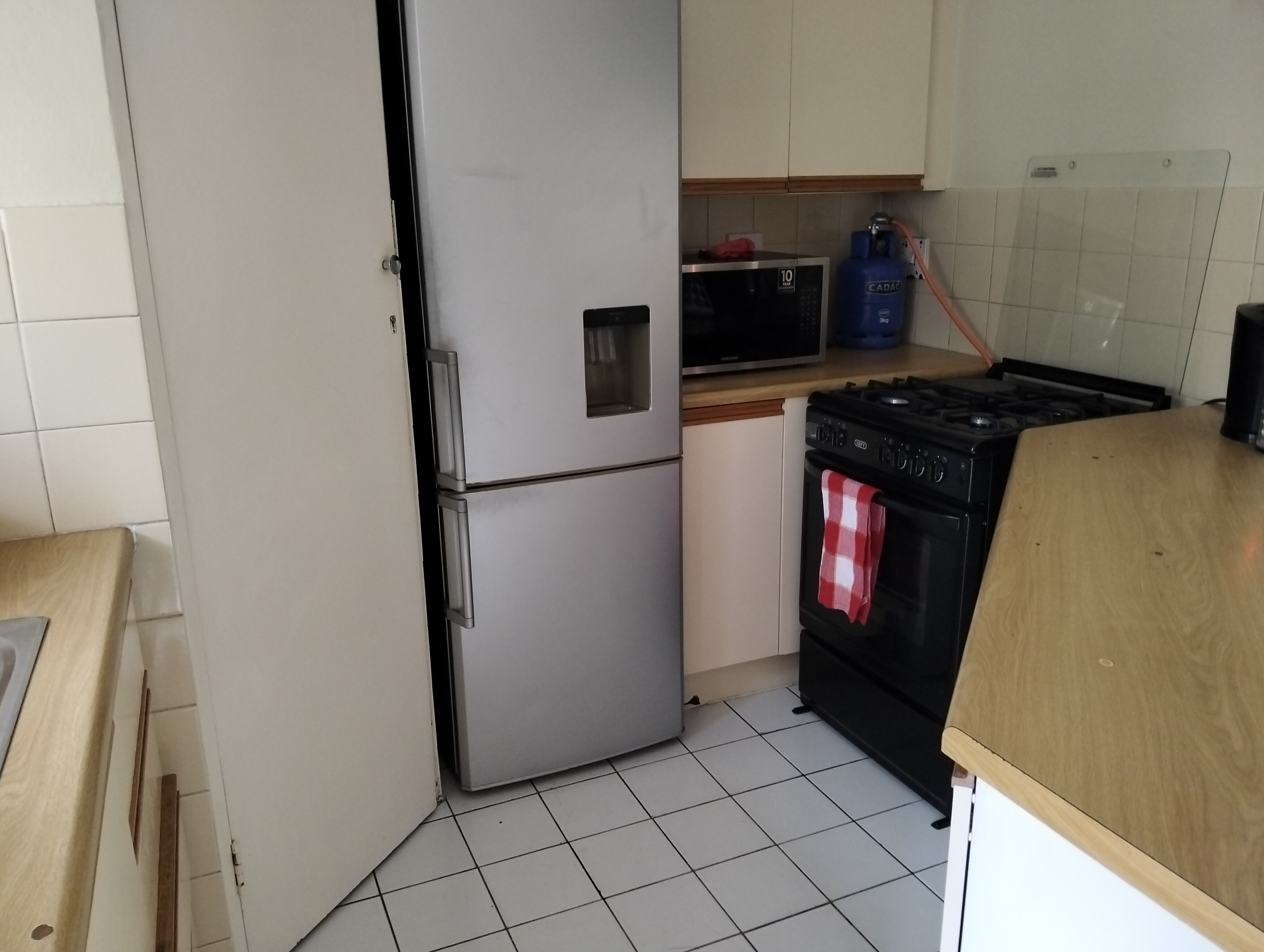 This spacious 76 m2 first-floor apartment features two bedrooms, an open-plan kitchen,