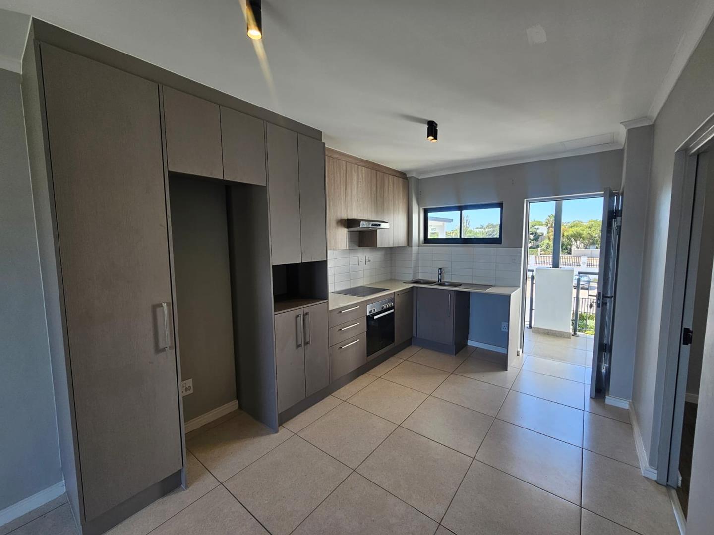 The kitchen includes a built-in stove and oven.