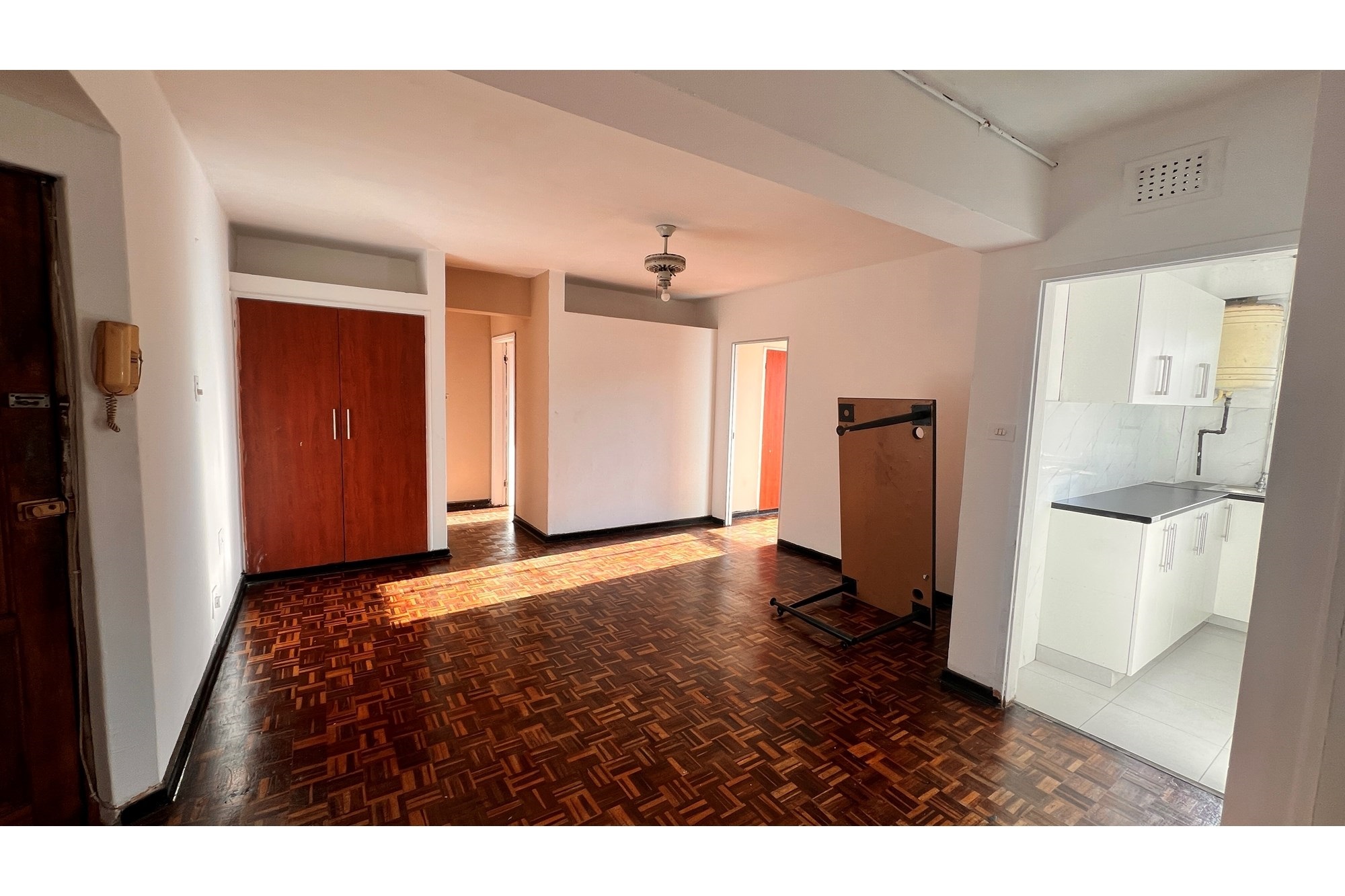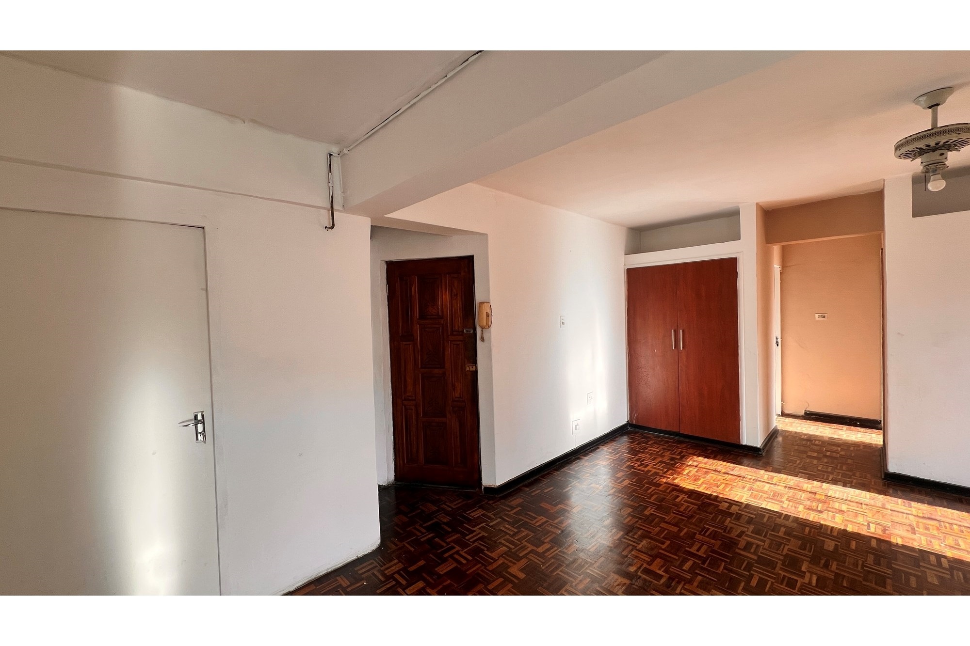 Spanning 68 square meters, this apartment has been newly renovated. Step inside to discover an open layout adorned with beautiful hardwood floors and plenty of natural light streaming through aluminum windows, creating an inviting ambiance. The apartment boasts a well-appointed kitchen featuring a hob and built-in closets, catering perfectly to your culinary needs.