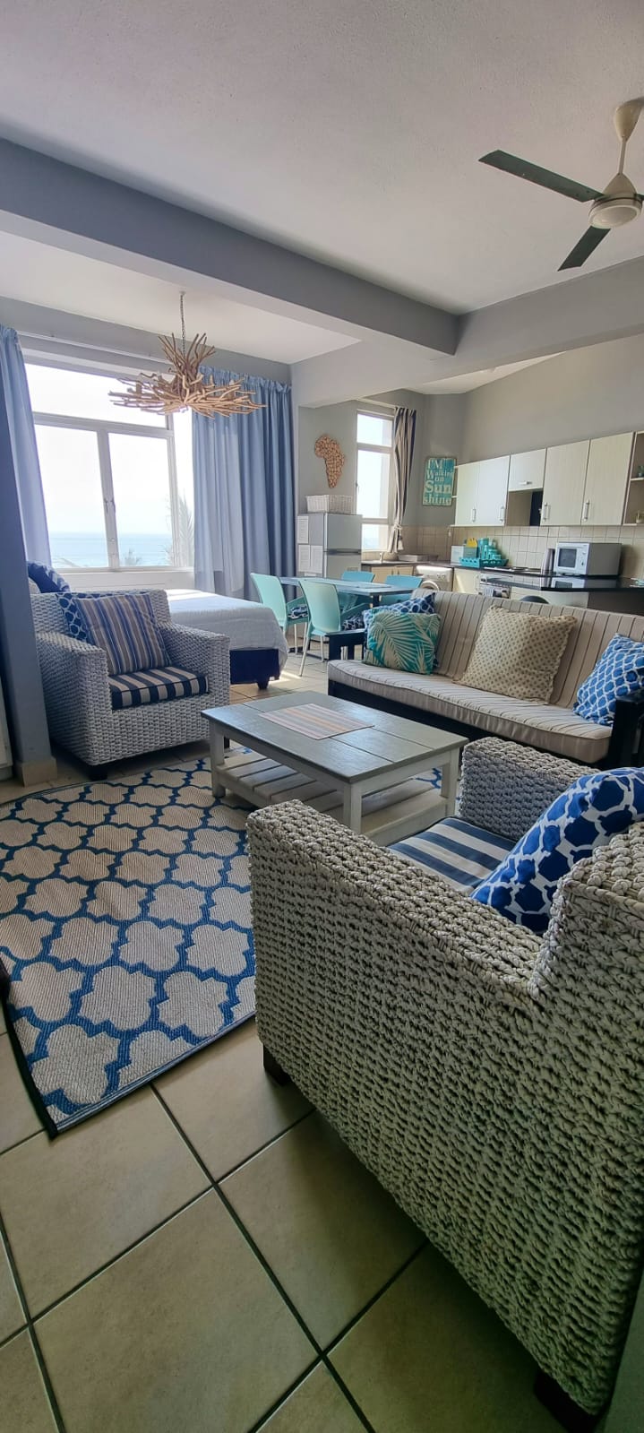 This charming one-bedroom, one-bathroom flat offers a cozy lifestyle with an open-plan kitchen and lounge area. Fully furnished with two queen beds, it's perfect for those seeking convenience. The bathroom features a shower and bath combo. Ideally suited for short-term leases, this unit is a great option for beach lovers, located near the beach with stunning ocean and surrounding views from the fourth floor. Enjoy peace of mind in this secure complex with 24/7 security, and wheelchair-friendly access. Water and electricity are included in the rent. Move in ready!