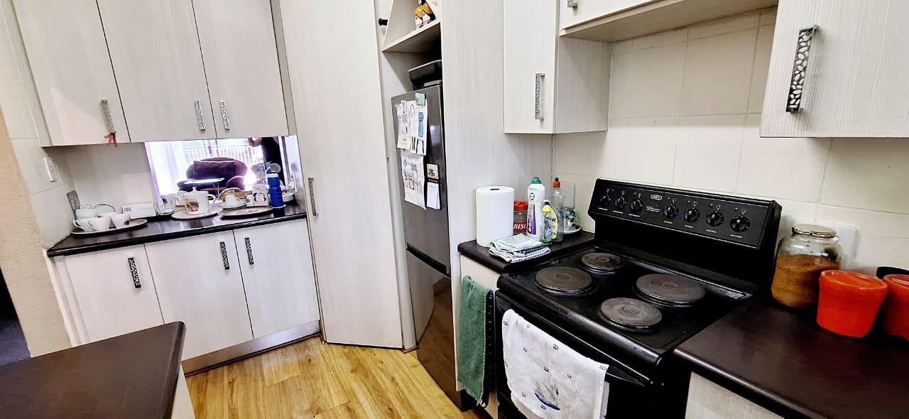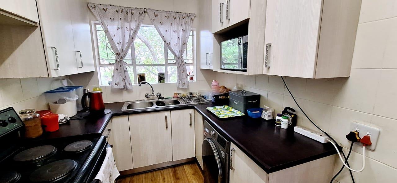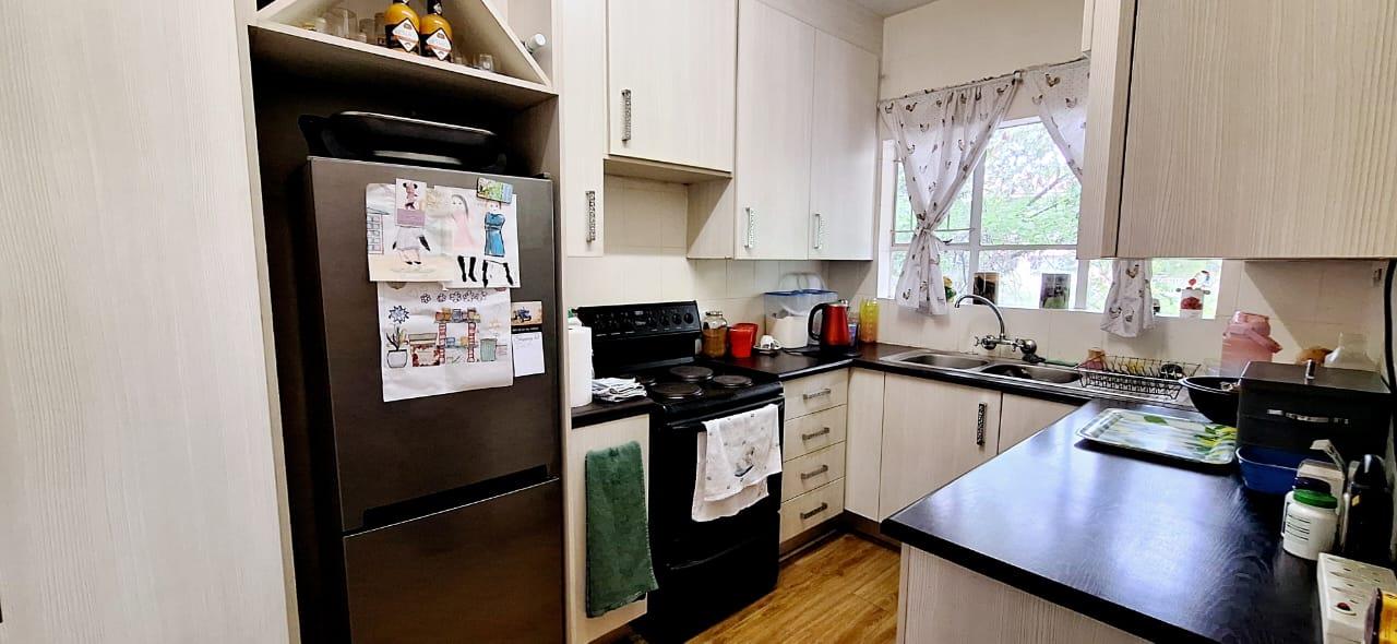 The kitchen is a chef's delight, impeccably maintained with neat tiling and abundant space for your culinary creations. It opens into an open-plan dining and lounge area, designed to facilitate both relaxation and entertaining. The seamless flow of this space makes it ideal for intimate dinners or larger social gatherings.