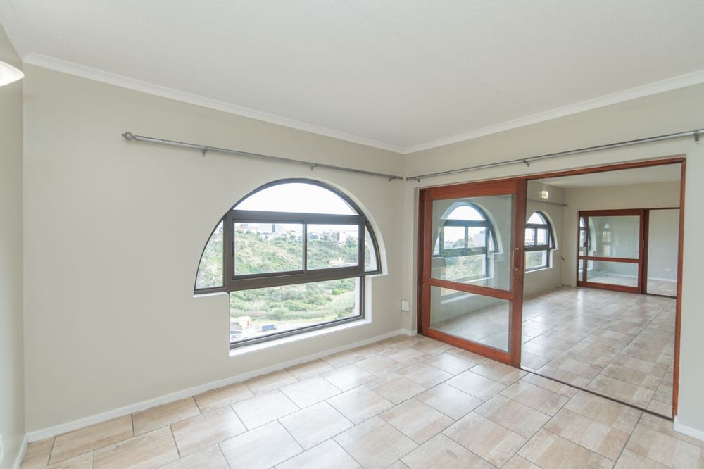 The apartment features three generously sized bedrooms, each offering ample storage space with built-in cupboards. Two of the bedrooms boast spectacular elevated views over the Baakens Valley, creating a serene backdrop for restful nights. The third bedroom includes its own private en-suite bathroom, providing the ultimate in convenience and privacy. The second bathroom is a spacious family-friendly full bathroom, designed to cater to all your needs.