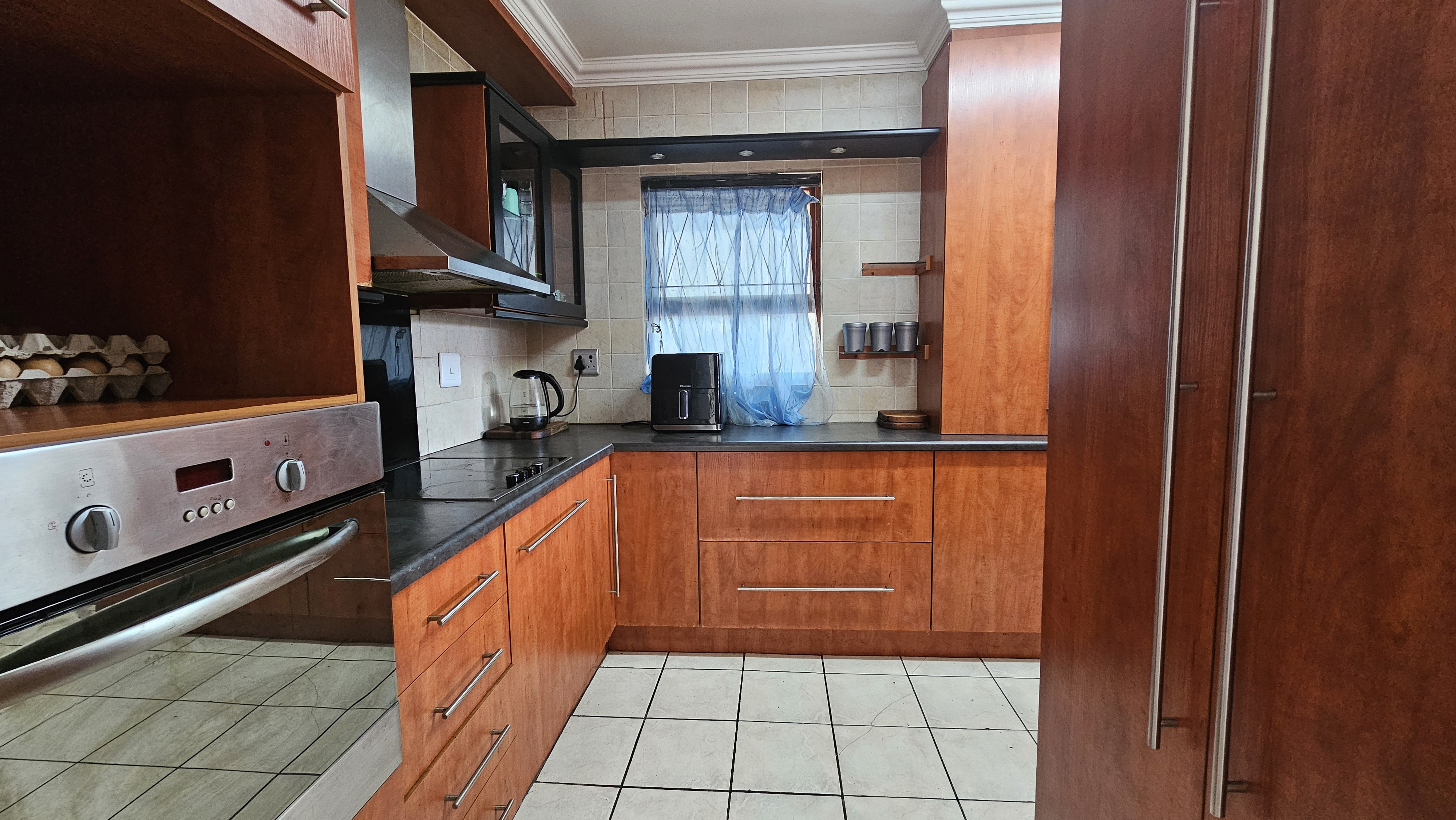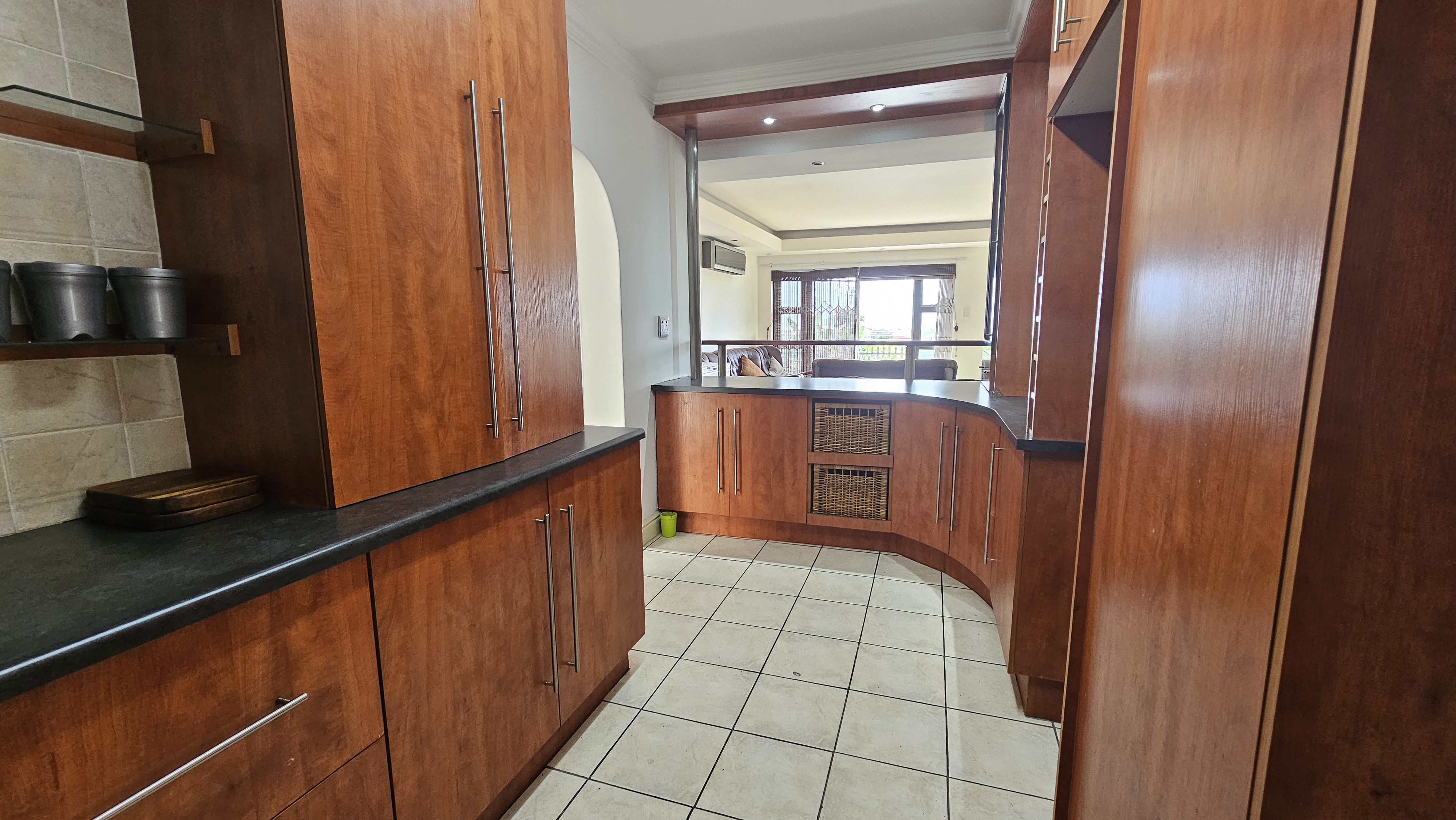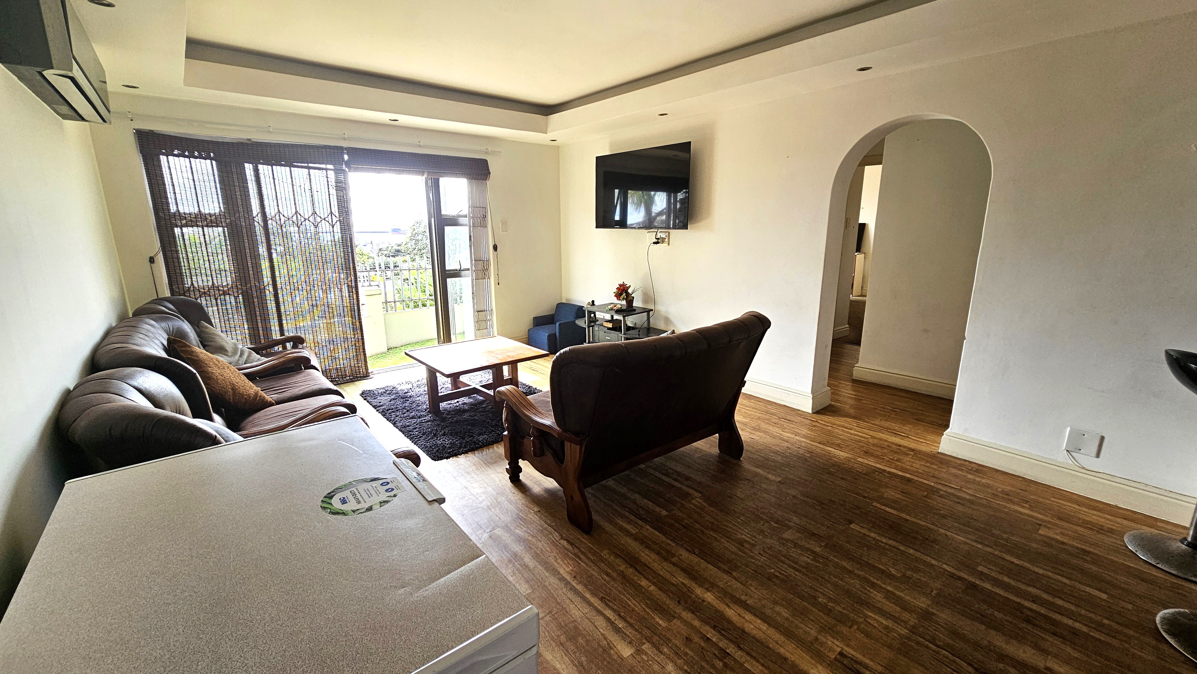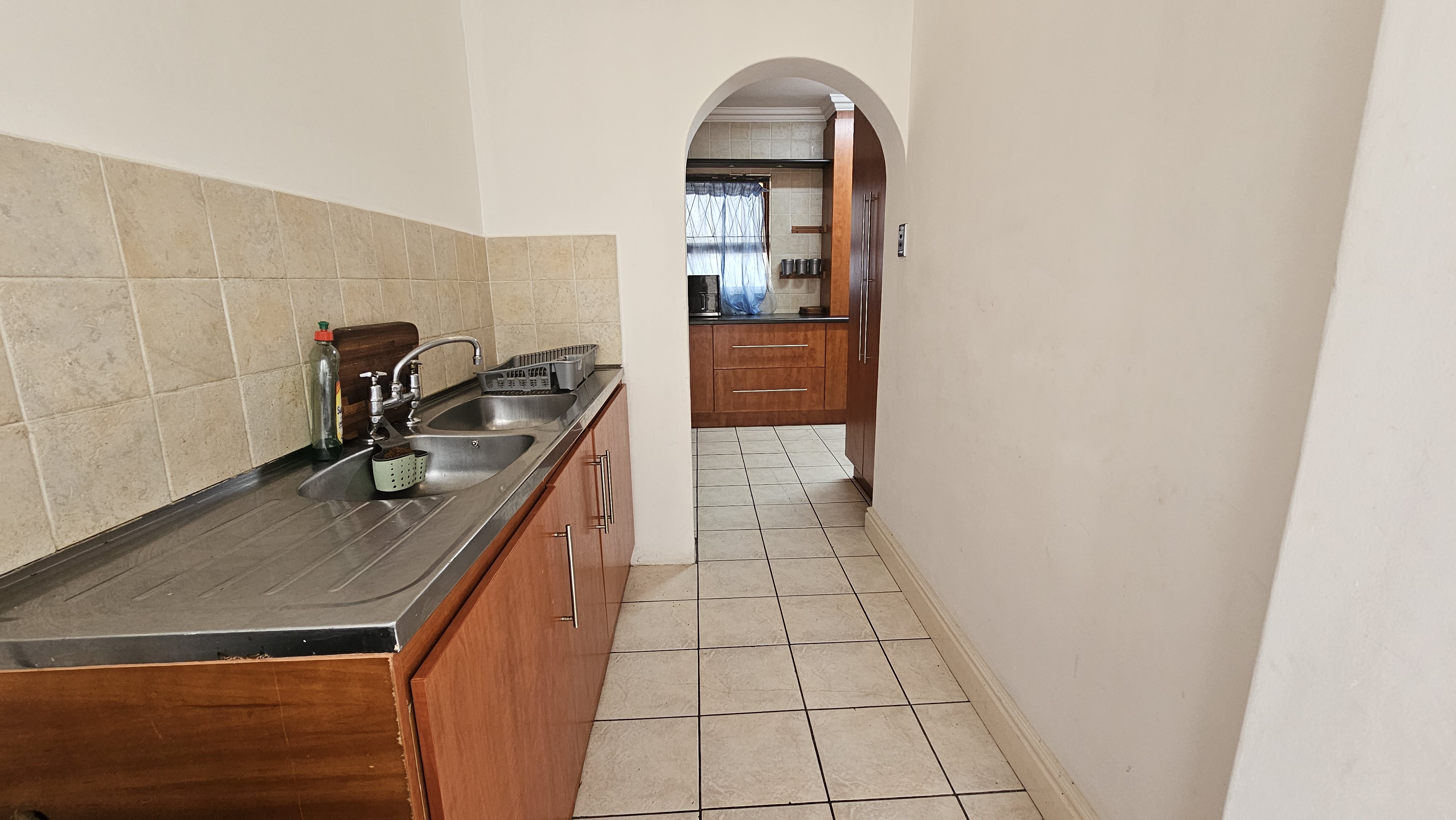 Step inside to a bright and spacious open-plan living area that flows seamlessly onto a small, manicured lawn – perfect for relaxing or enjoying a morning coffee. The generous kitchen offers ample cupboard space and leads into a separate scullery, which opens to a private courtyard with a washing line.