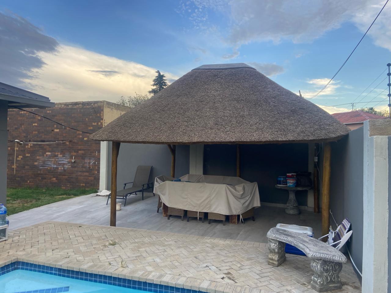 Welcome to your ideal family retreat, a delightful home designed for both comfort and memorable entertaining. Nestled under a picturesque thatch roof lapa, this property boasts a lush garden and an inviting, sparkling pool, creating the perfect backdrop for gatherings with family and friends.