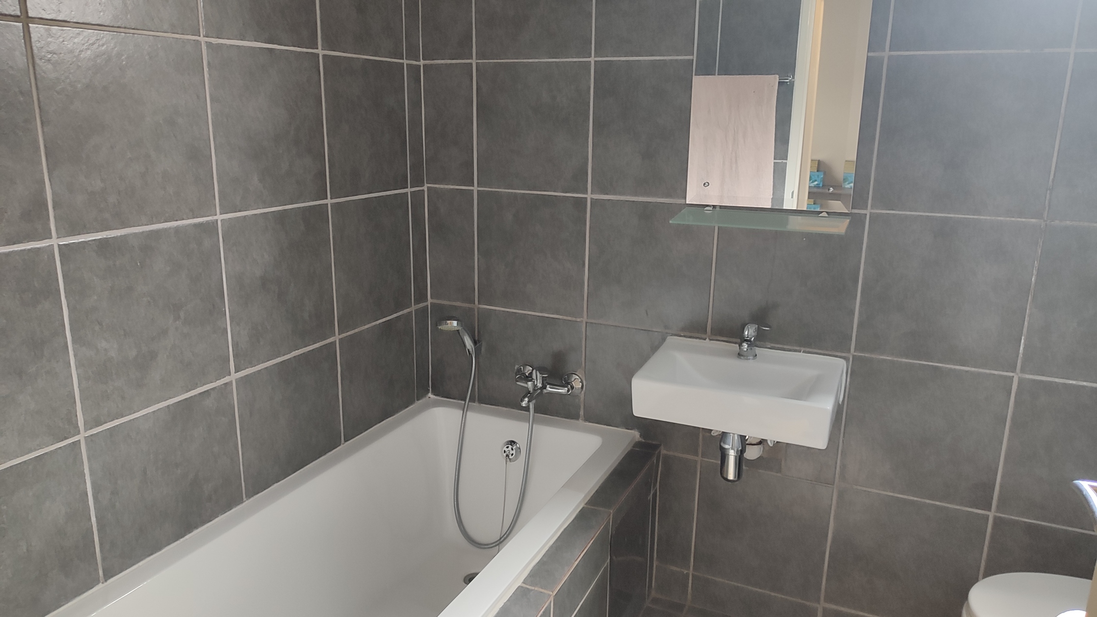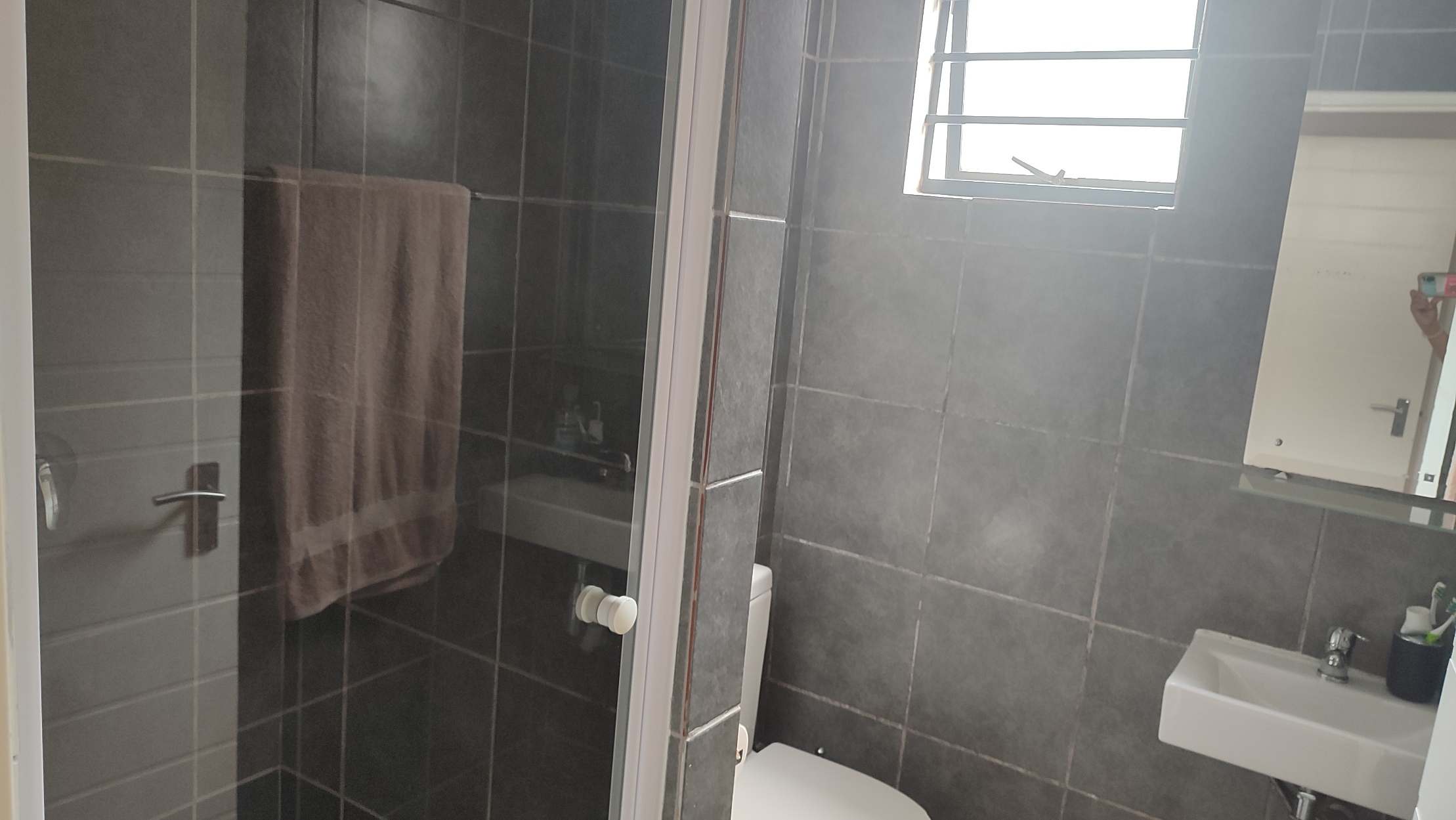 Refreshing bathroom with a convenient separate toilet, enhancing privacy and functionality.