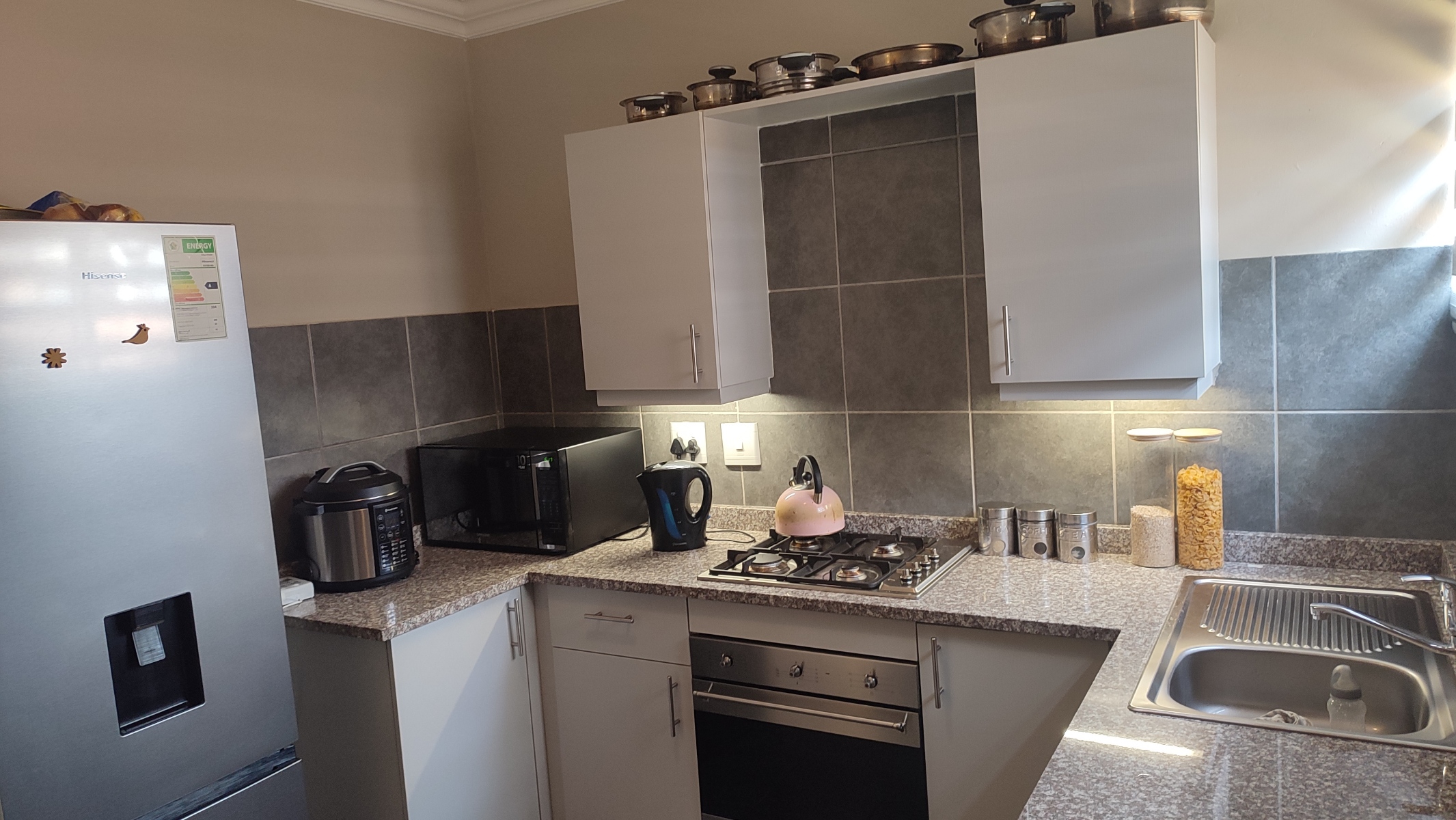 A well-appointed kitchen awaits, complete with modern fittings including a fitted gas top and undercounter stove, catering to your culinary adventures with ease.