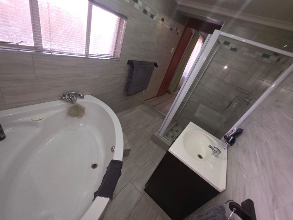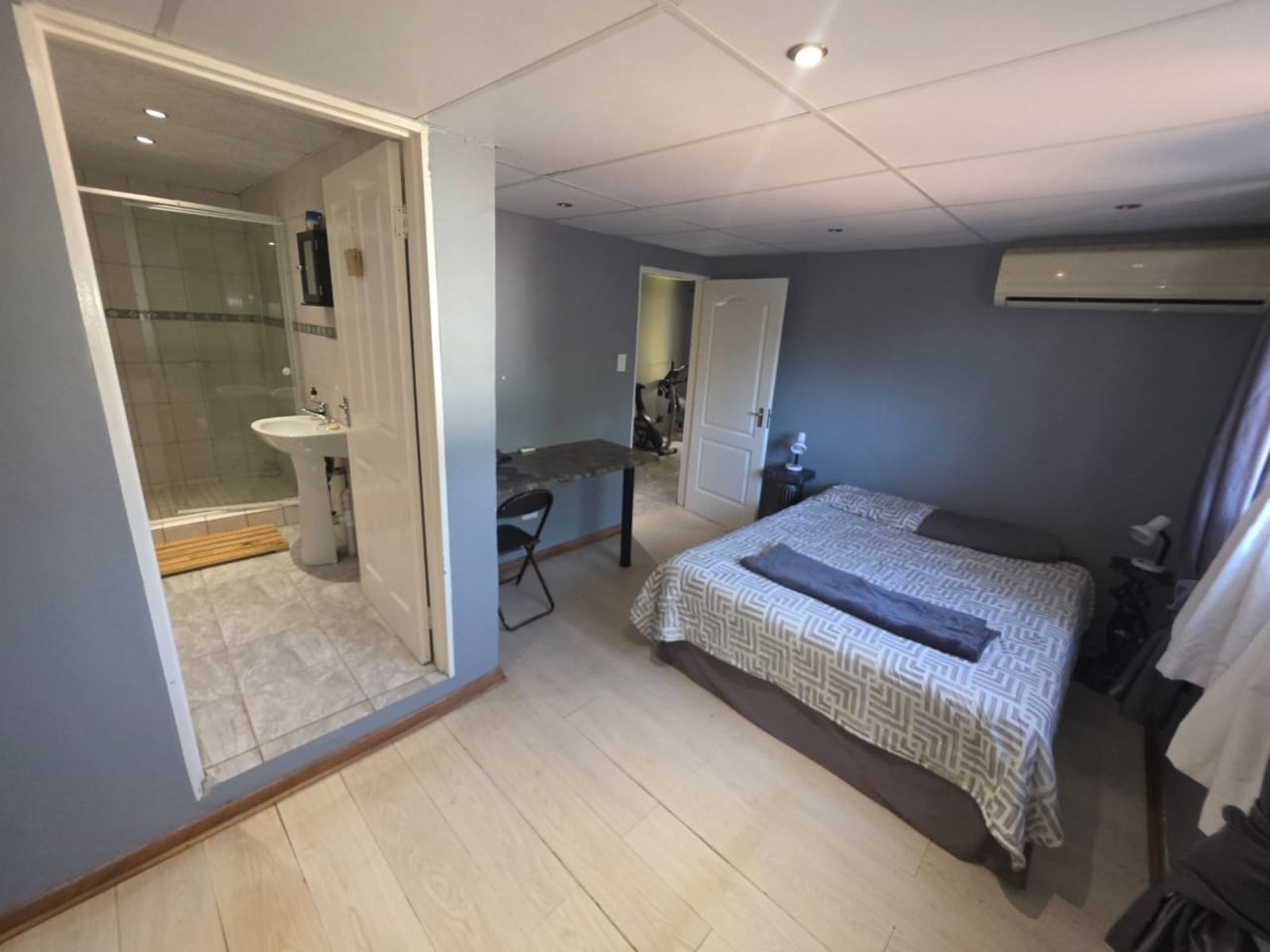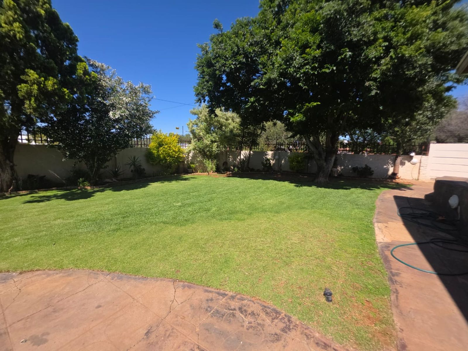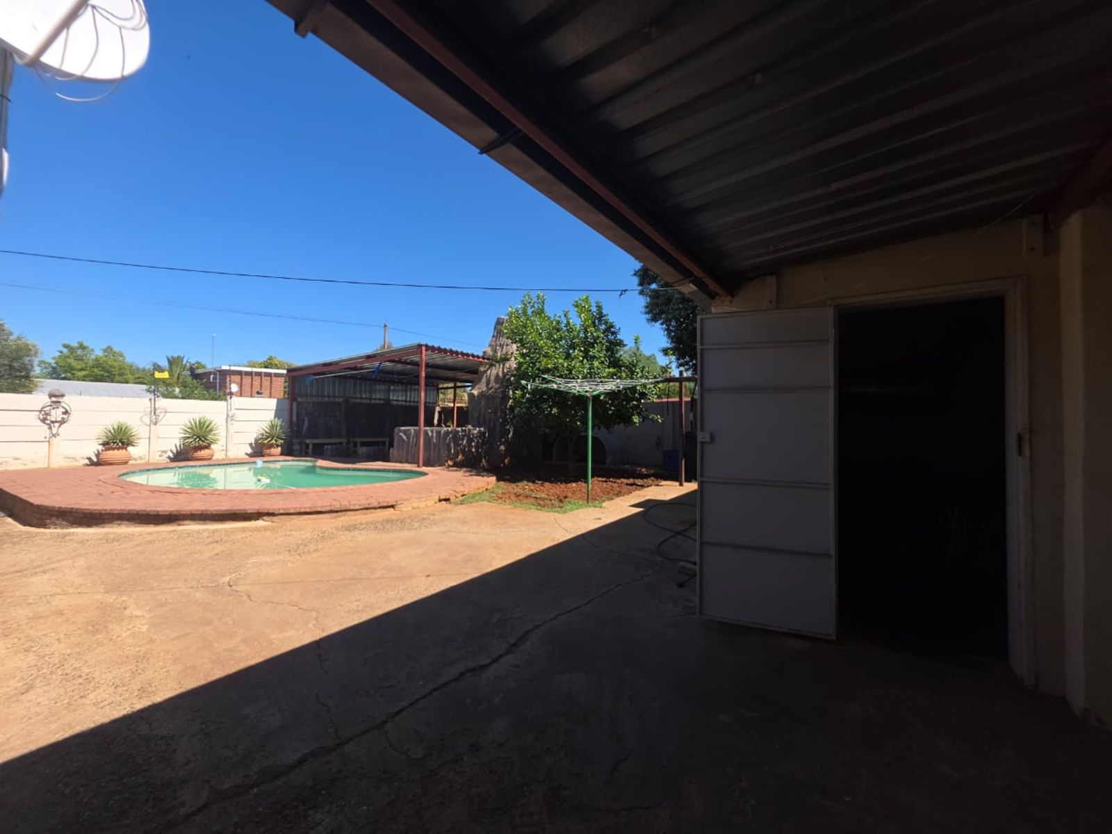The garden is neatly maintained with an irrigation system and a sparkling swimming pool — perfect for outdoor relaxation. Additional features include a bachelor flat, double secure carport, and full perimeter security with fencing, burglar bars, an electric fence, and an electric gate.
