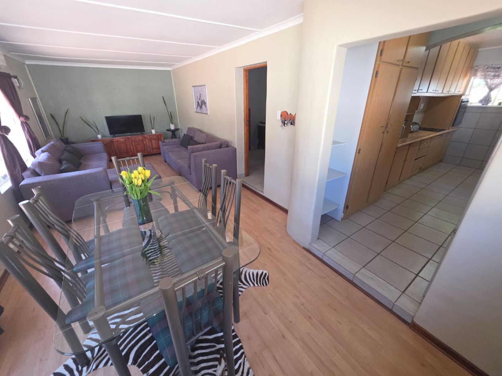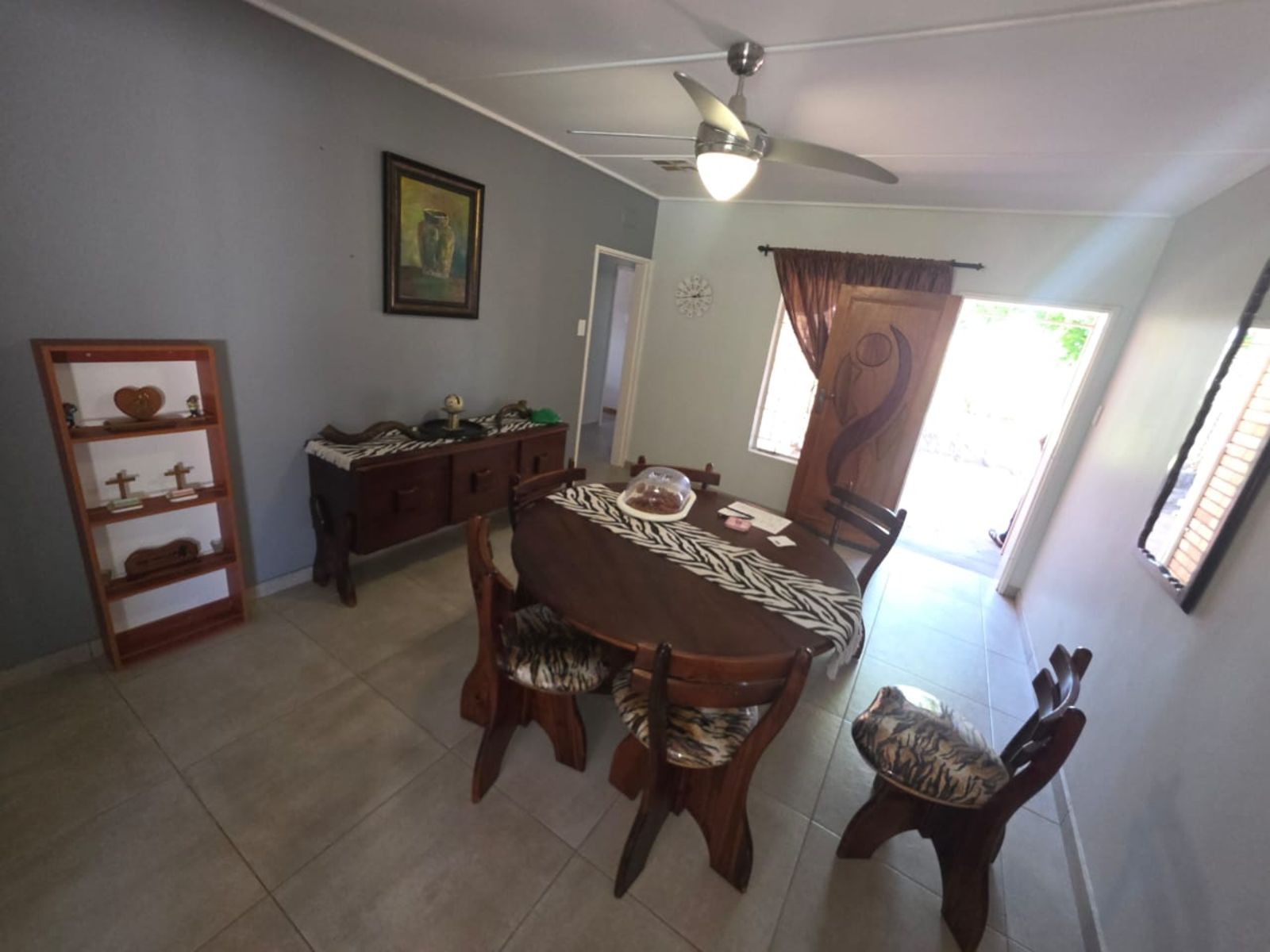Well-located close to a shopping mall, this charming three-bedroom, two-bathroom family home offers comfortable living and convenience. The home features a spacious lounge, dining room, and a modern kitchen fitted with built-in cupboards, an eye-level oven, hob, and extractor fan.