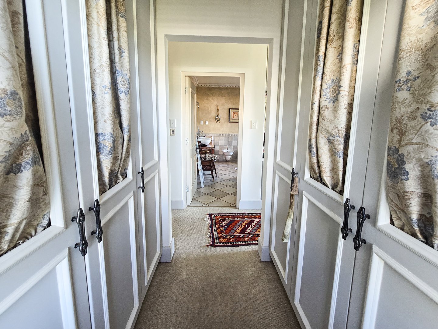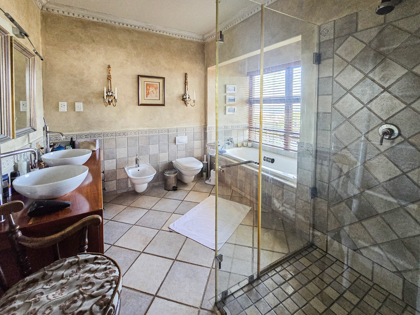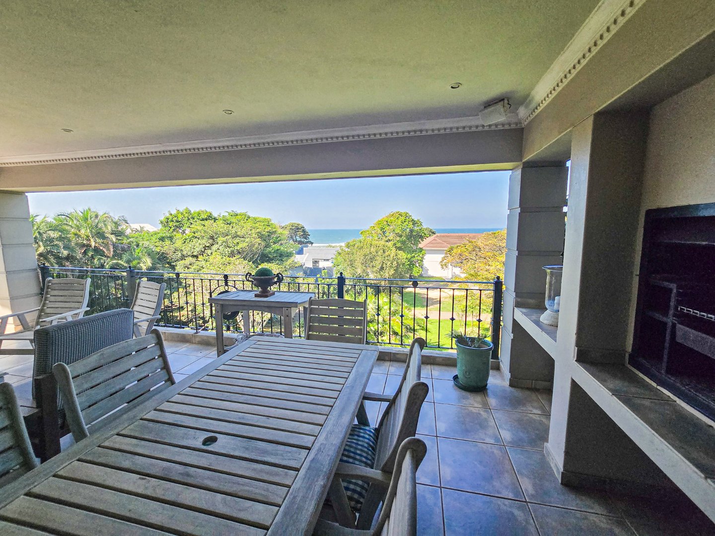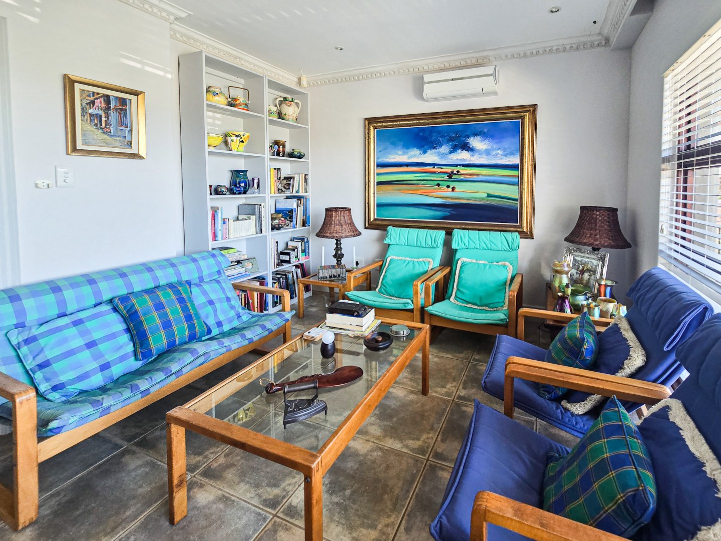 As you enter the home, you'll find an open-plan living area that leads to a large balcony through stack doors. This expansive outdoor space, complete with a built-in braai, provides the perfect setting to relish in the stunning sea views.