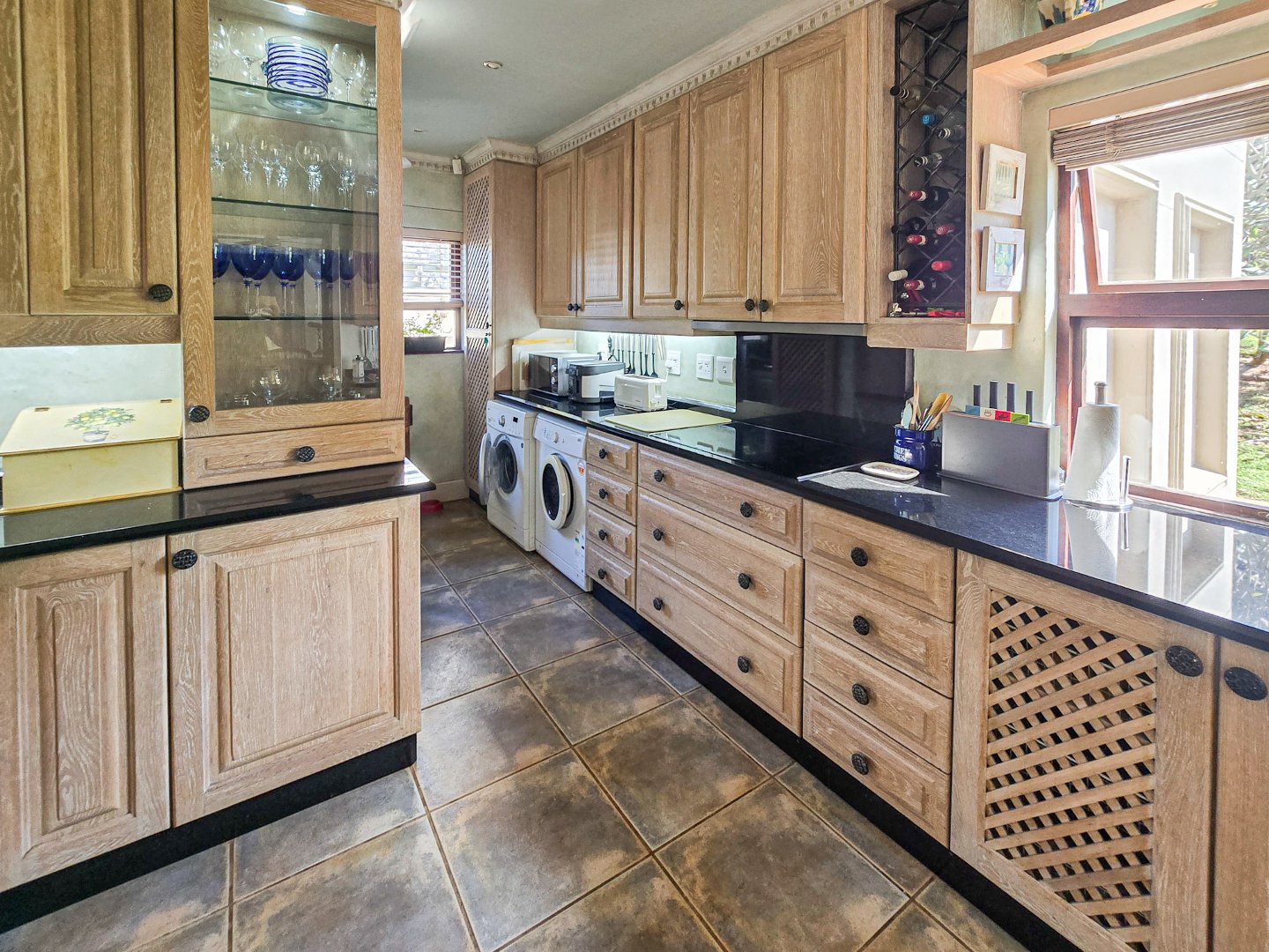 The kitchen, boasting granite countertops, a hob, and an eye-level oven, is a well designed. The adjoining scullery provides ample storage and additional preparation space.