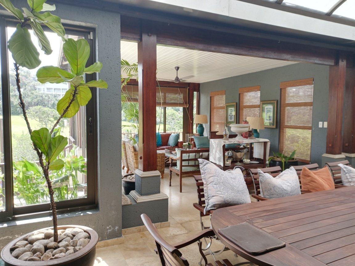 This beautiful Bali style home is situated on a large elevated stand offering beautiful ocean vistas on one side and the beautifully manicured fairways of the elite Southbroom golf course on the other. This is a family home with timeless elegance, situated at an exclusive address in the beautiful village of Southbroom.