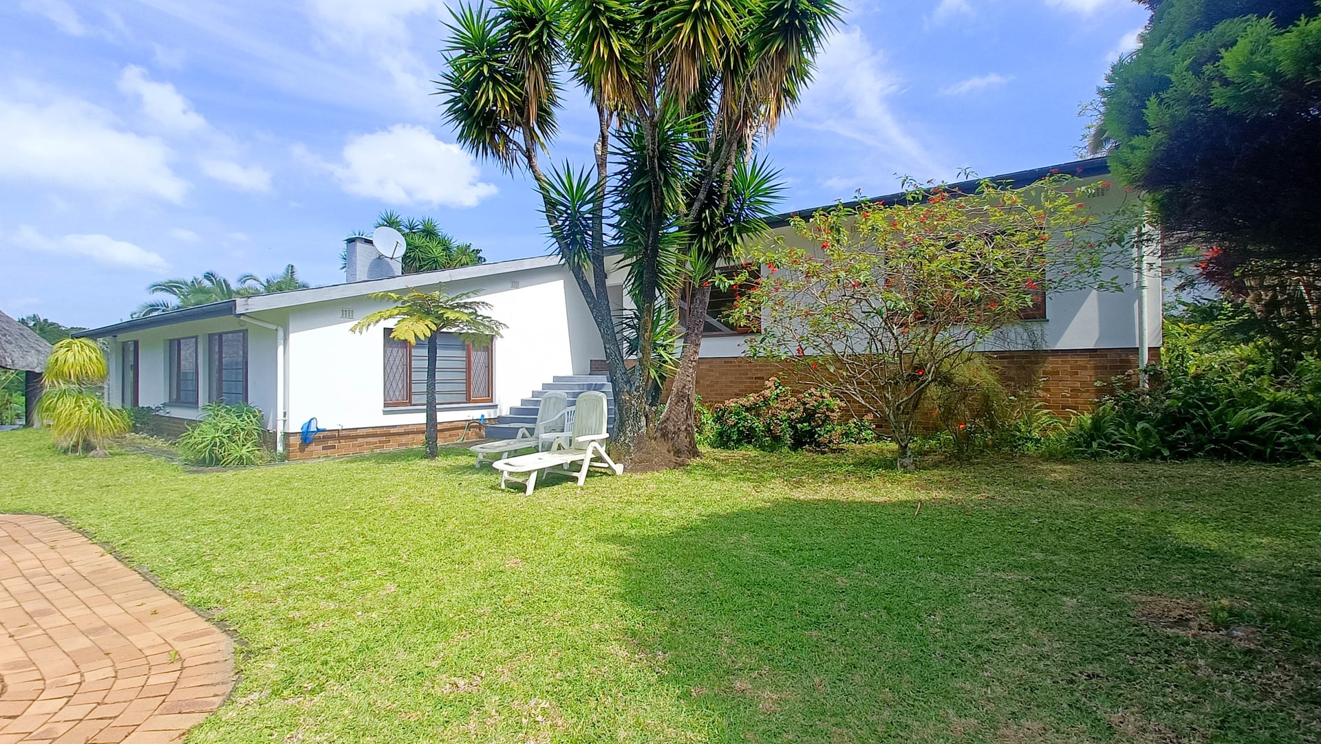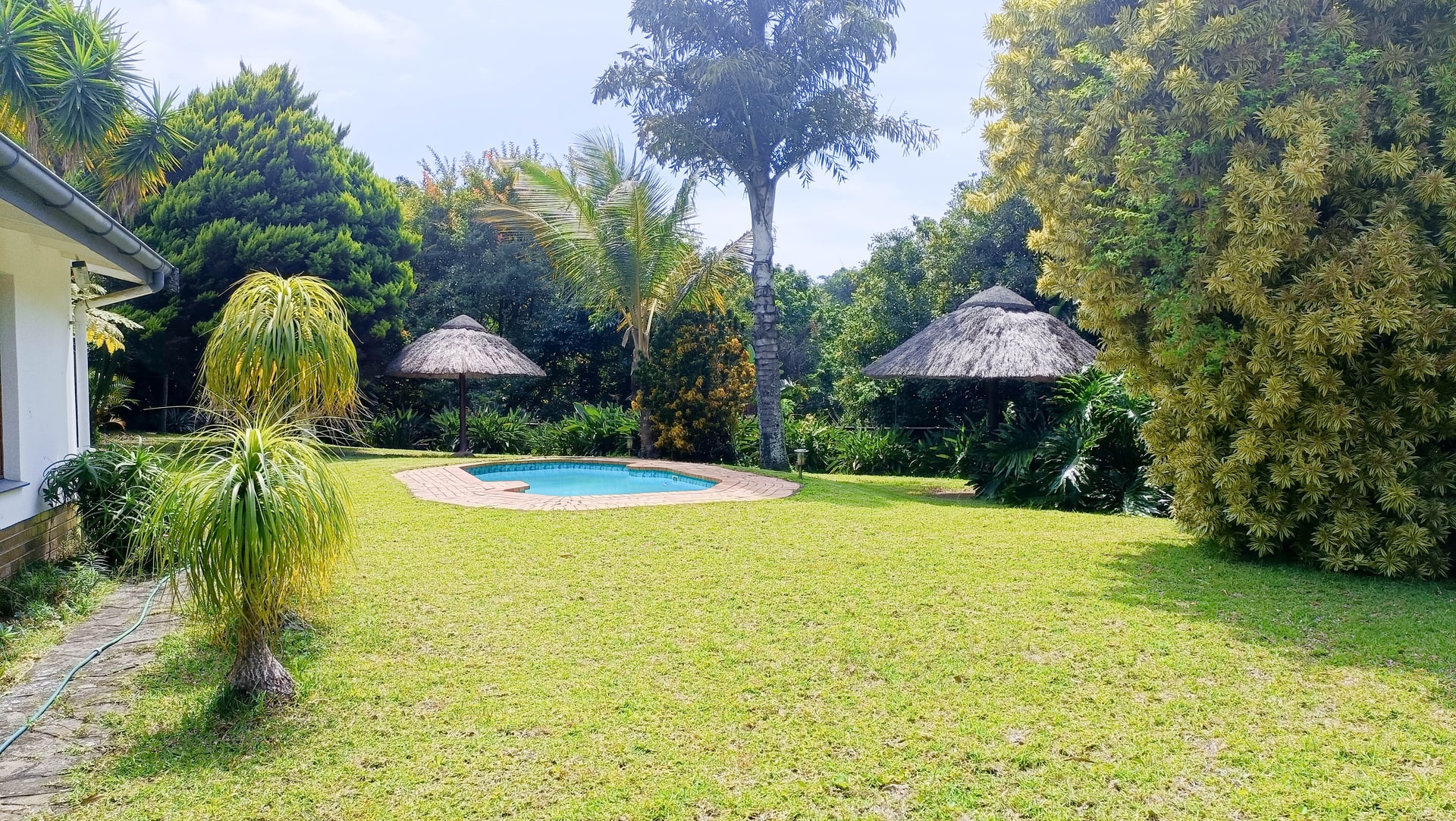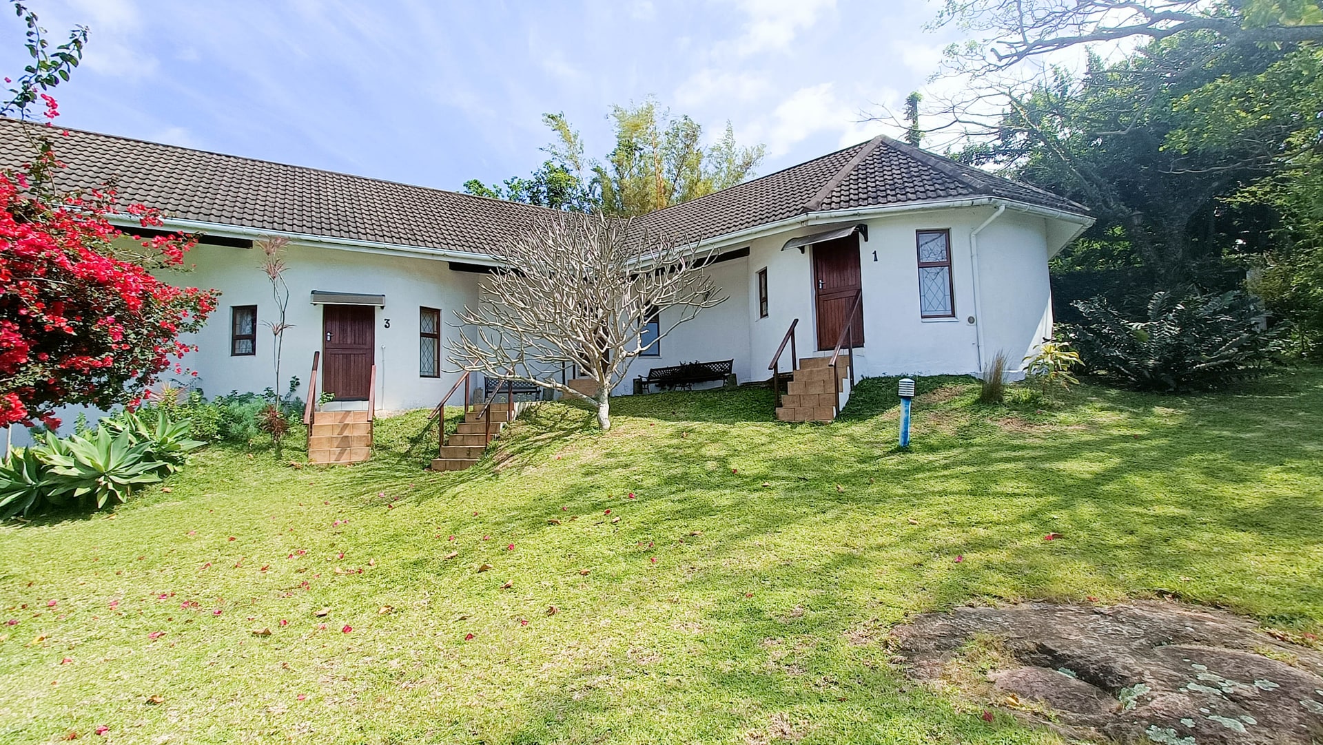 An income generating, farm style house is for sale in the upmarket suburb of Southbroom on the KZN South Coast. The property consists of 1, three-bedroom, 2-bathroom main house and 5, income generating cottages that can house between 4 to 7 people per room. The MAIN HOUSE: has 3 bedrooms with the main-en-suite and the second bathroom shared by the other 2 bedrooms. The house has a wonderful entrance hall that leads into the large main lounge with built in fireplace. Off the lounge is a small room currently used for storage. The kitchen is spacious enough and has a separate scullery and laundry facility. The Cottages: All five of the cottages are fully equipped for self catering and each have their own bathrooms. Four of the five cottages have 2 rooms that can accommodate small families or groups. Furniture in the cottages come with the sale. The property is large with most of it in natural bush and it is where the Bushbuck trail runs through. There is a deck that has a wonderful view overlooking the lush bush and trees with the distant ocean in view. The main house has a sparkling swimming pool with a built-in braai and Lapa for those beautiful African evening Set in amongst the tree is a Gazebo that one can have small functions or parties. Contact us for a viewing of this beautiful homestead.