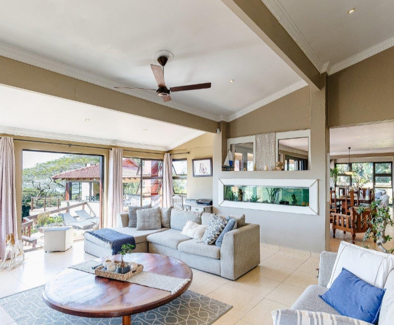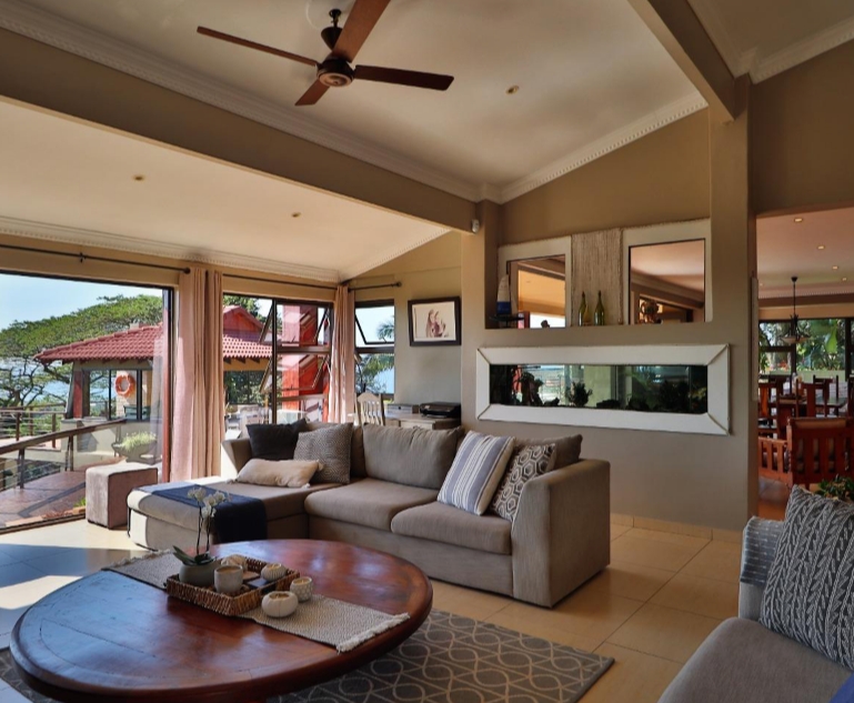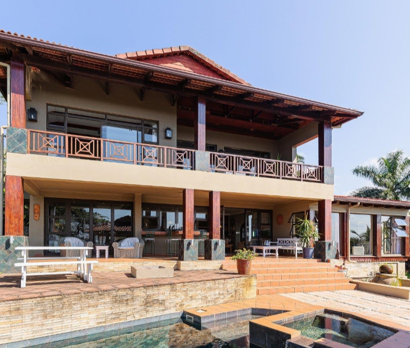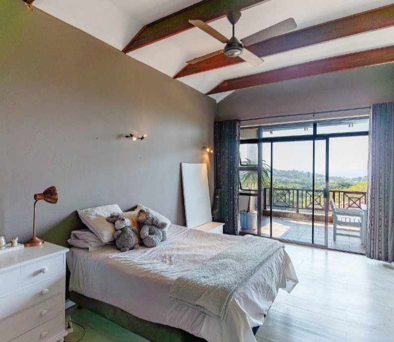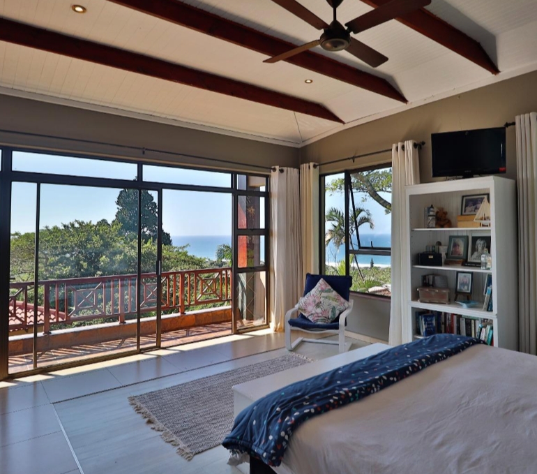 Upstairs, two beautiful bedrooms open onto a shared balcony where ocean breezes and sunrise views await. The master suite is a true sanctuary — complete with a spa-style bathroom, dressing room, and sweeping views from every angle. A spacious family lounge with exposed trusses adds a touch of architectural flair and warmth.