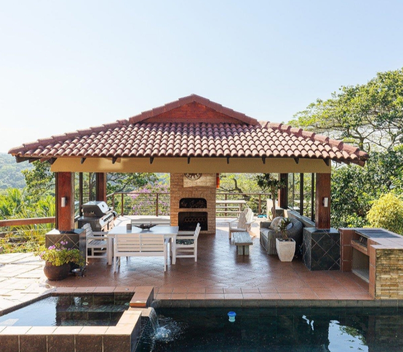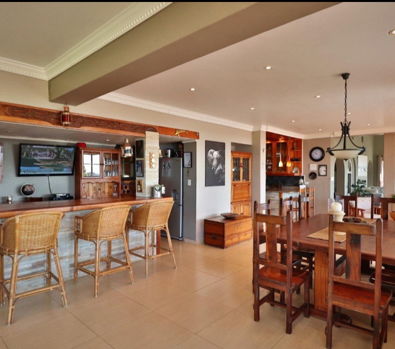 The expansive open-plan living and dining areas flow seamlessly together, complemented by a chic built-in bar — perfect for both intimate gatherings and lavish entertaining. Stacking doors lead out to a spectacular entertainment haven featuring a partially covered patio, a charming gazebo, a built-in pizza oven, and a stunning rim-flow pool with jacuzzi — all framed by endless coastal vistas.