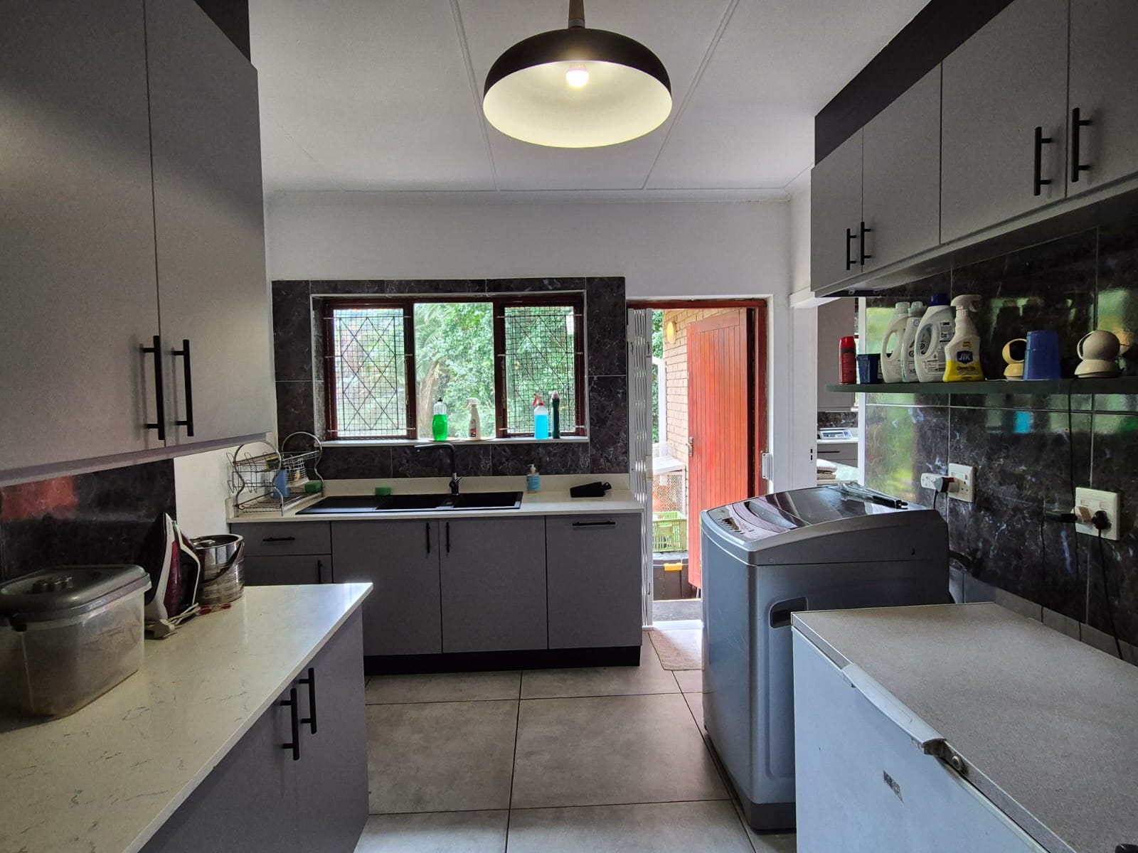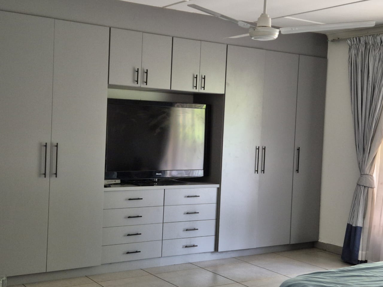 5 generously sized bedrooms with modern, floor-to-ceiling cupboards and ceiling fans.