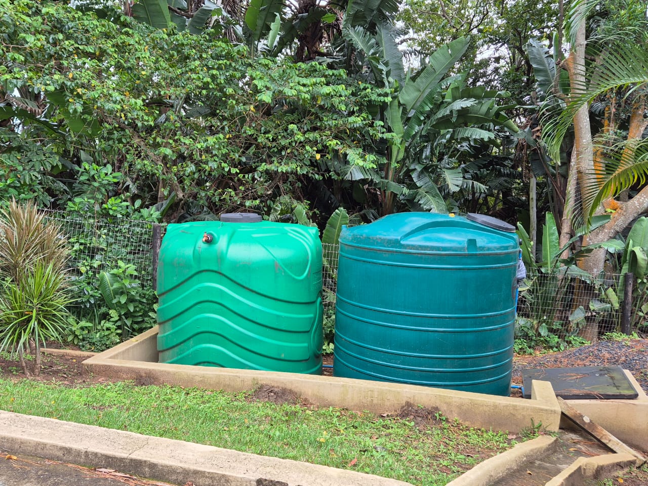 Two 5000L water storage tanks with pump.