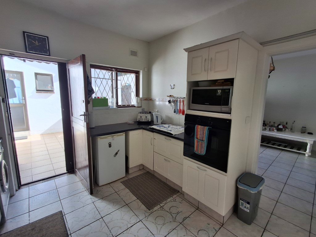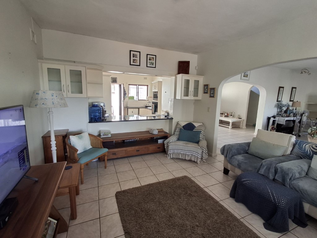 The entrance to the main dwelling is very welcoming, spacious and bright, leading to the large open living areas made up of a cosy dining room, with a fireplace for that extra ambiance, perfect for formal entertaining, a great size lounge, and sliding doors from both areas will lead you out to an under-cover patio where you will enjoy more informal evenings, surrounded by the beautifully manicured gardens and the imposing view and sound of the ocean. The kitchen area is easily accessed from the living areas, with a convenient breakfast bar, ample cupboard space and sleek granite work surfaces, there is also access to a private rear courtyard and laundry room.