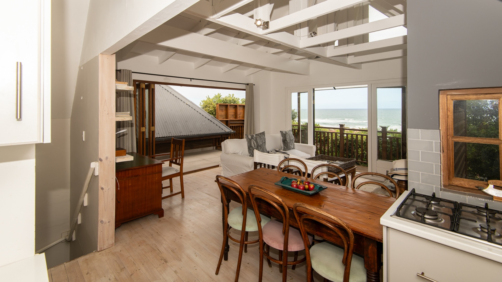 If you want uninterrupted views of the ocean, walking distance from the beach, this is for you! This unique open plan home offers expansive living and dining areas, a fully equipped kitchen, indoor fireplace/braai, and a private courtyard with outdoor braai. Two spacious ocean view bedrooms, a loft bedroom and spacious open living & dining and fully equipped kitchen that begs you to entertain family and friends. The apartment is separate from the main house and features two en-suite bedrooms, a separate kitchen, open plan siting/dining area and amazing views of the Bay!