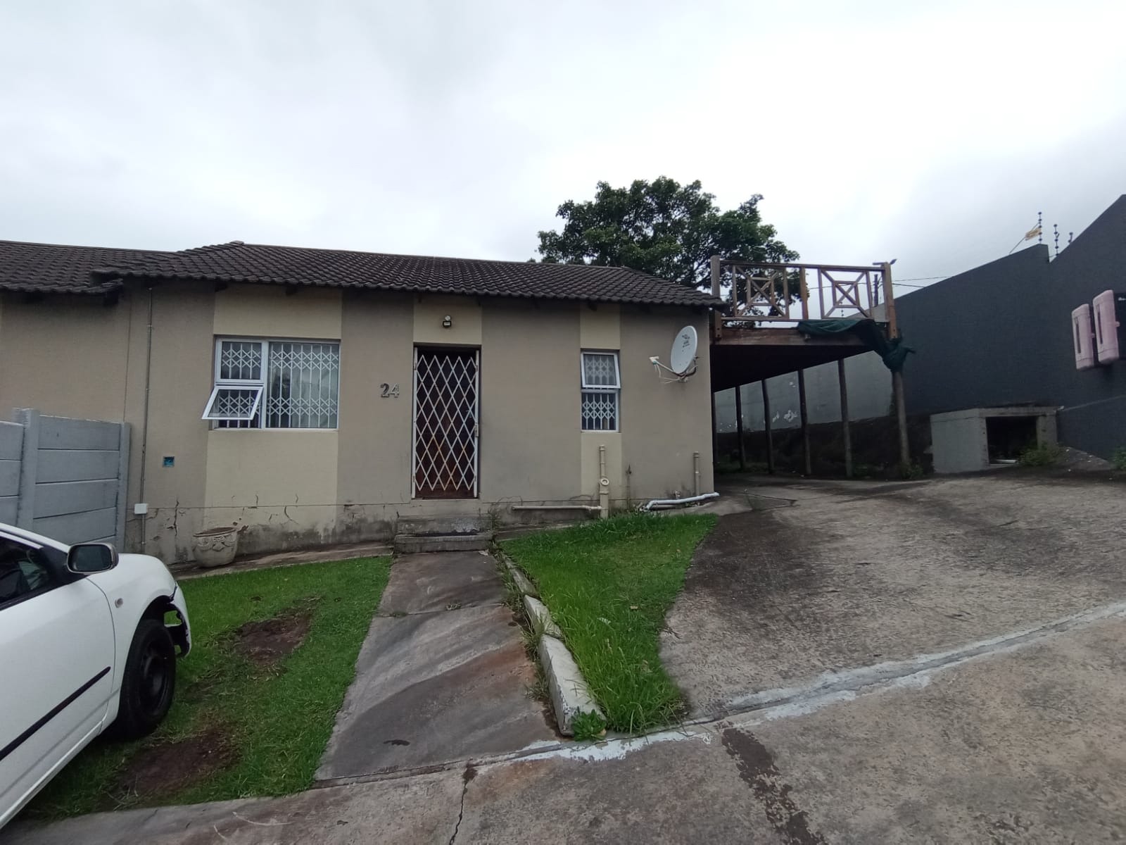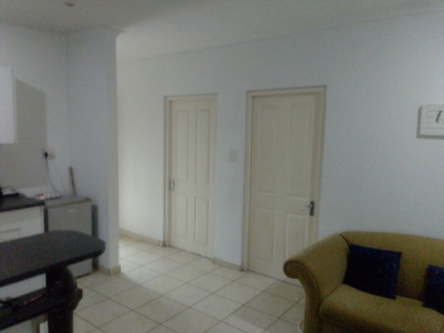 The lounge opens through a glass sliding door to a reasonable sized courtyard. All doors and windows are kitted with trellidors, aluminium windows and the floors are tiled.