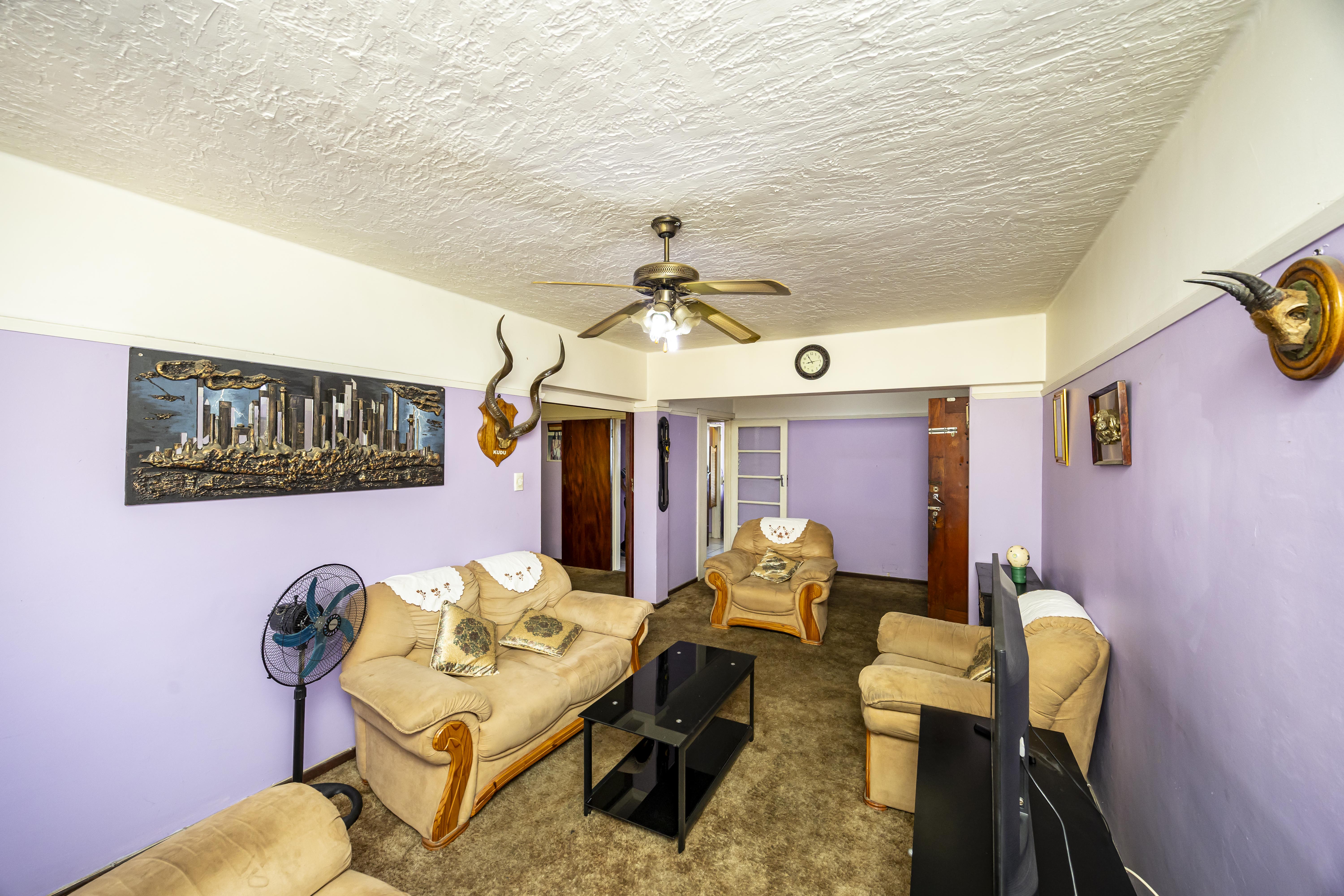 The flat boasts three well-proportioned bedrooms, all fitted with built-in cupboards, along with two neat bathrooms. The living areas are well laid out, featuring a comfortable lounge and a separate dining room. Adjacent to the dining area is an open room that can easily be used as a study, home office, or reading nook — ideal for modern living.