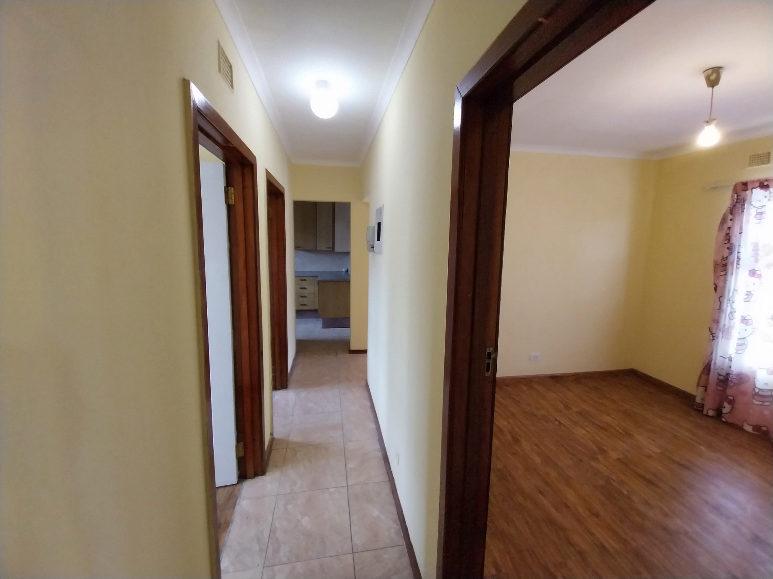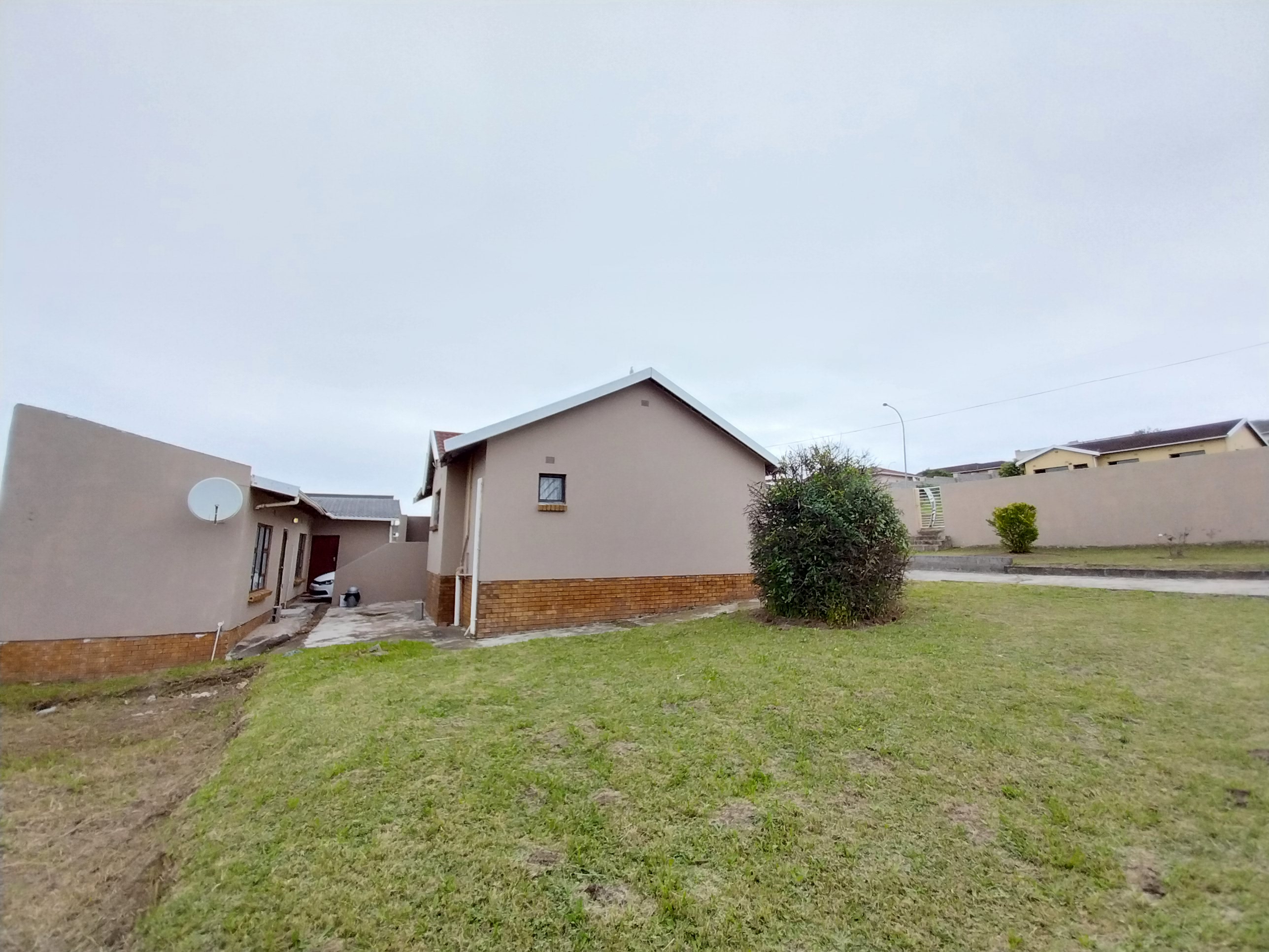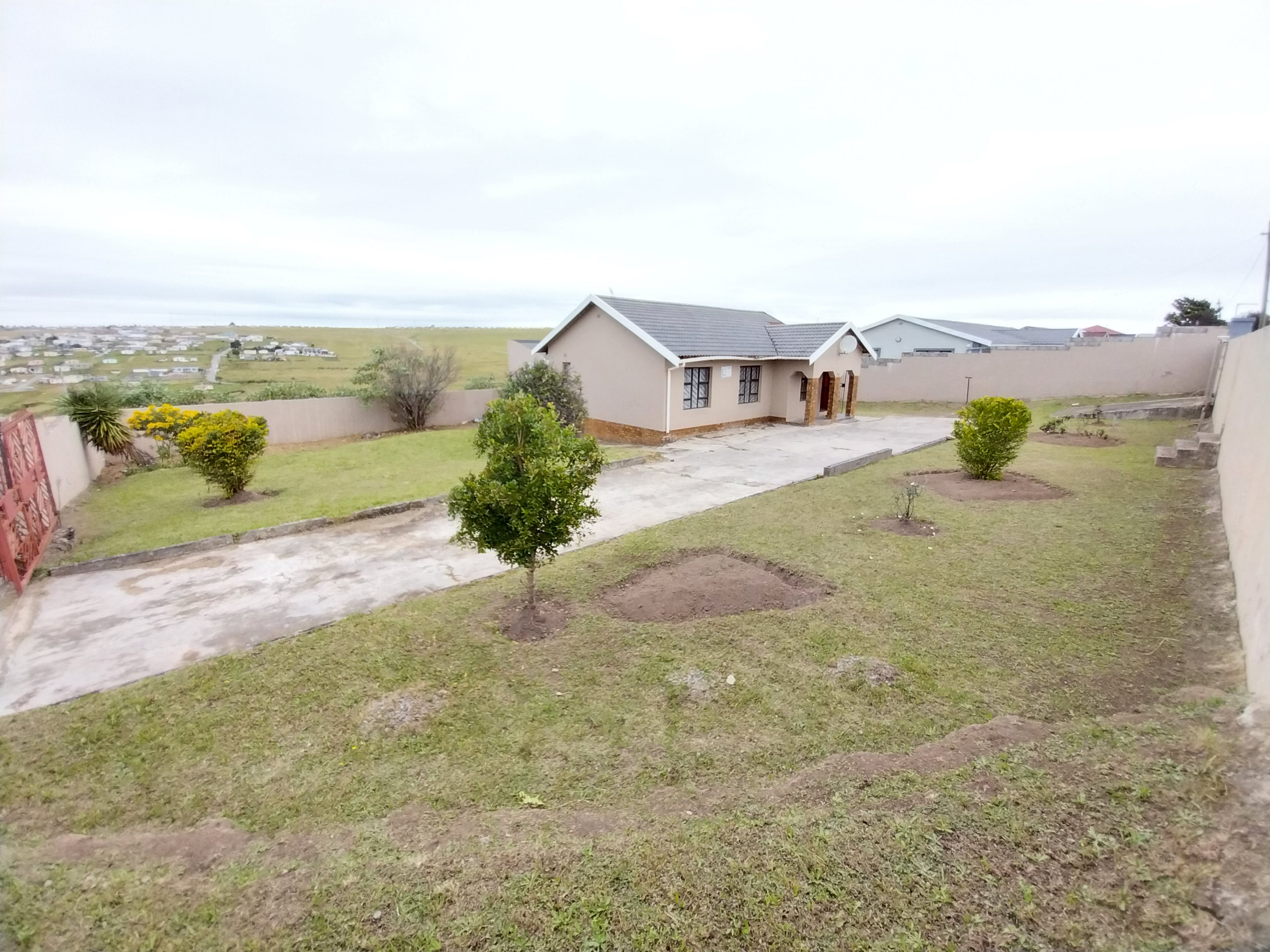 The yard is nice and tidy with a concrete pavement and a manicured garden. It's secured with a wall allaround the peremeter, two sliding gates and burglar bars on all aopening doors and windows.